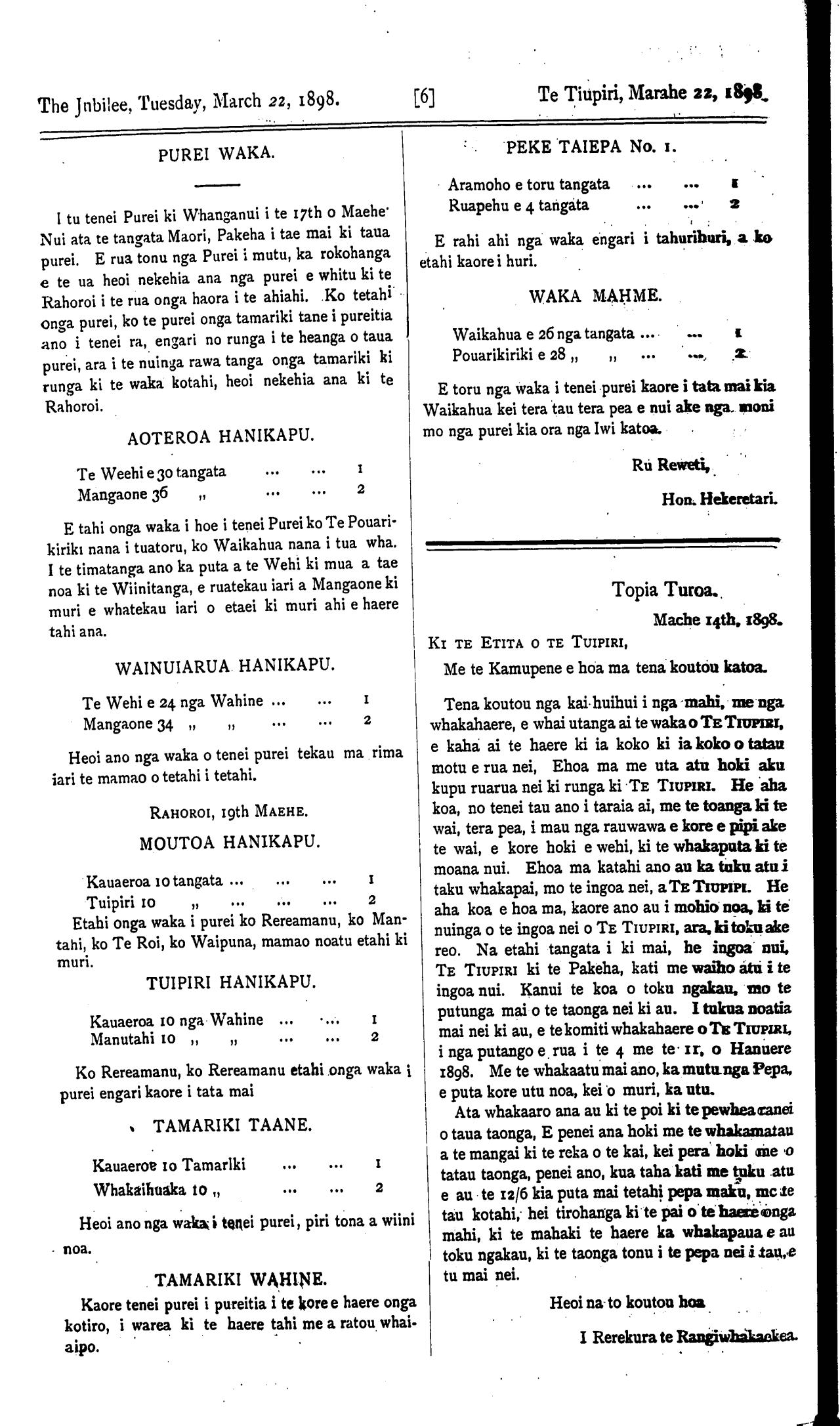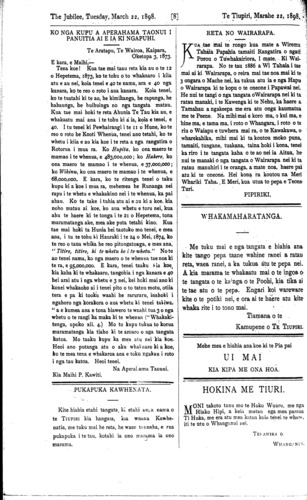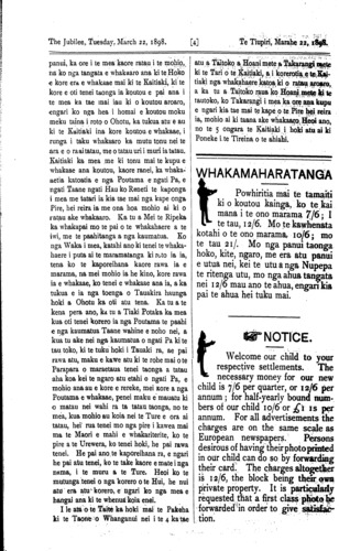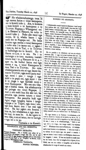 The Jubilee, Tuesday, March 22, 1898. [2] Te Tiupiri, Marahe 22/1898.