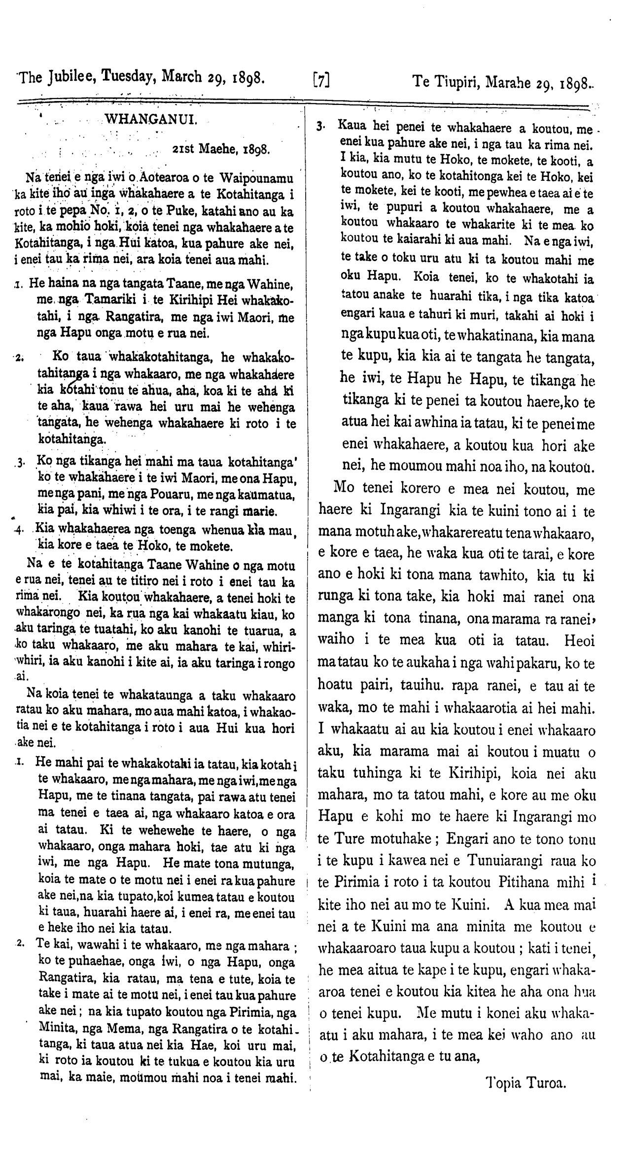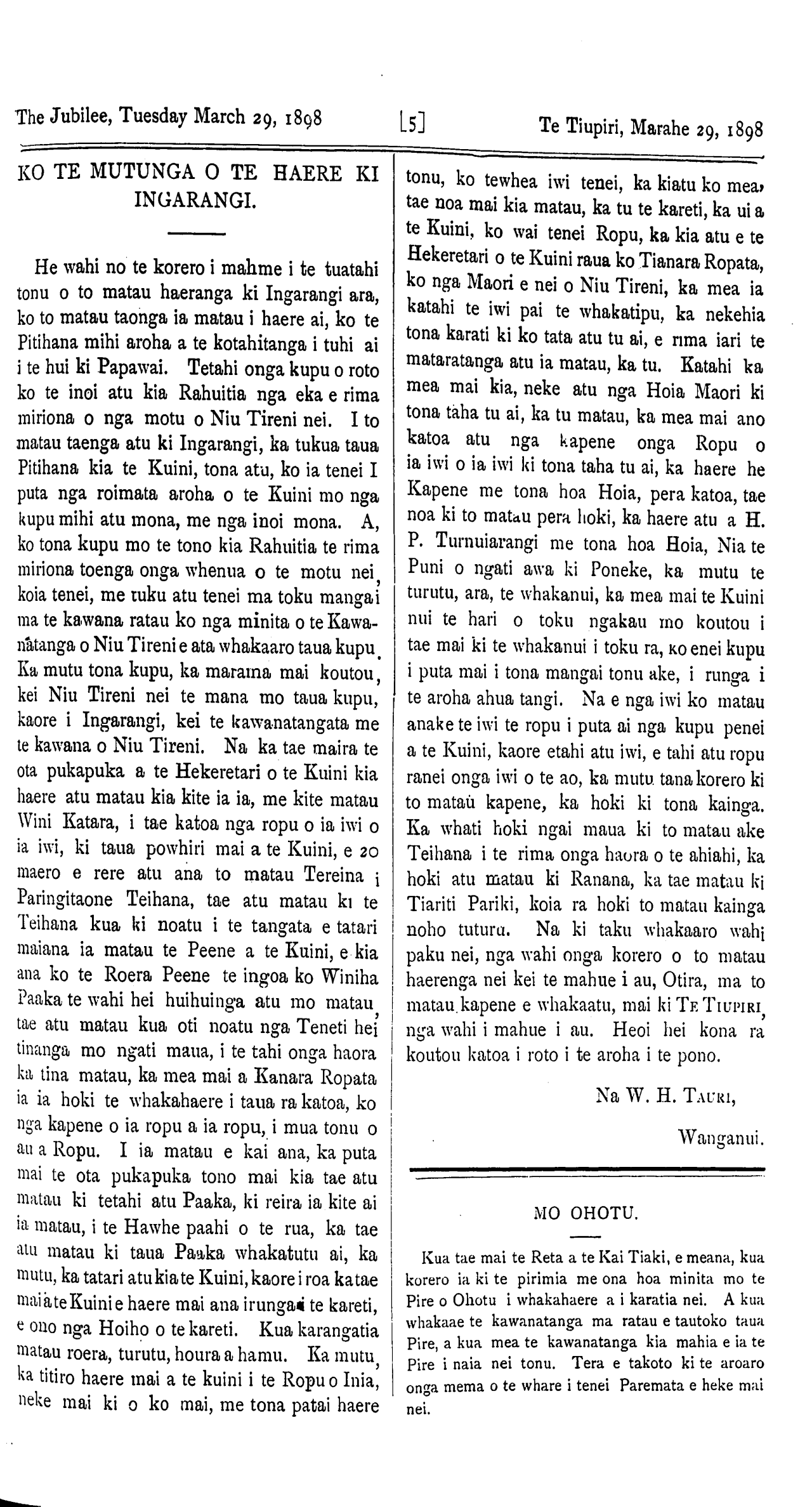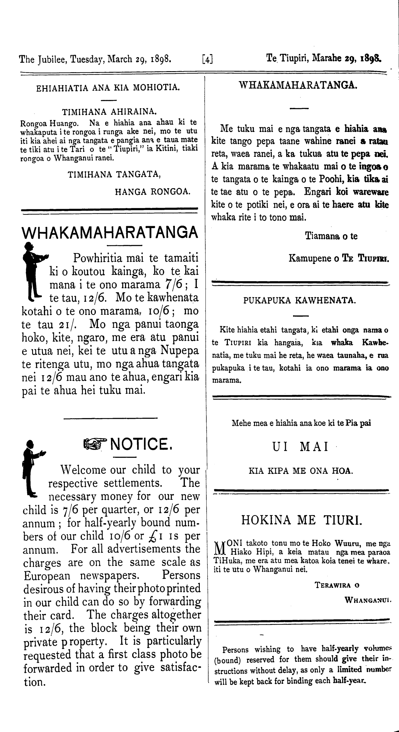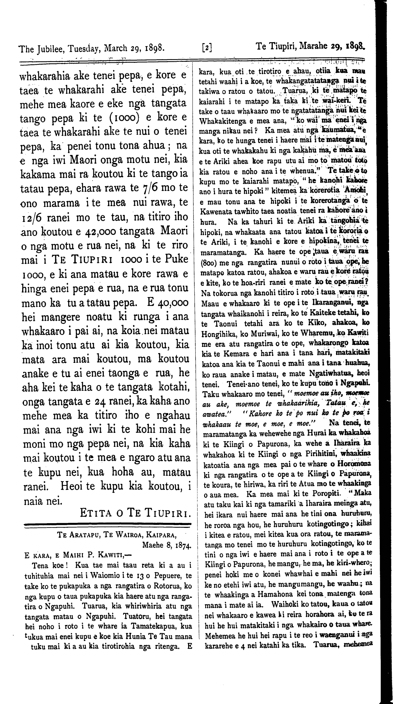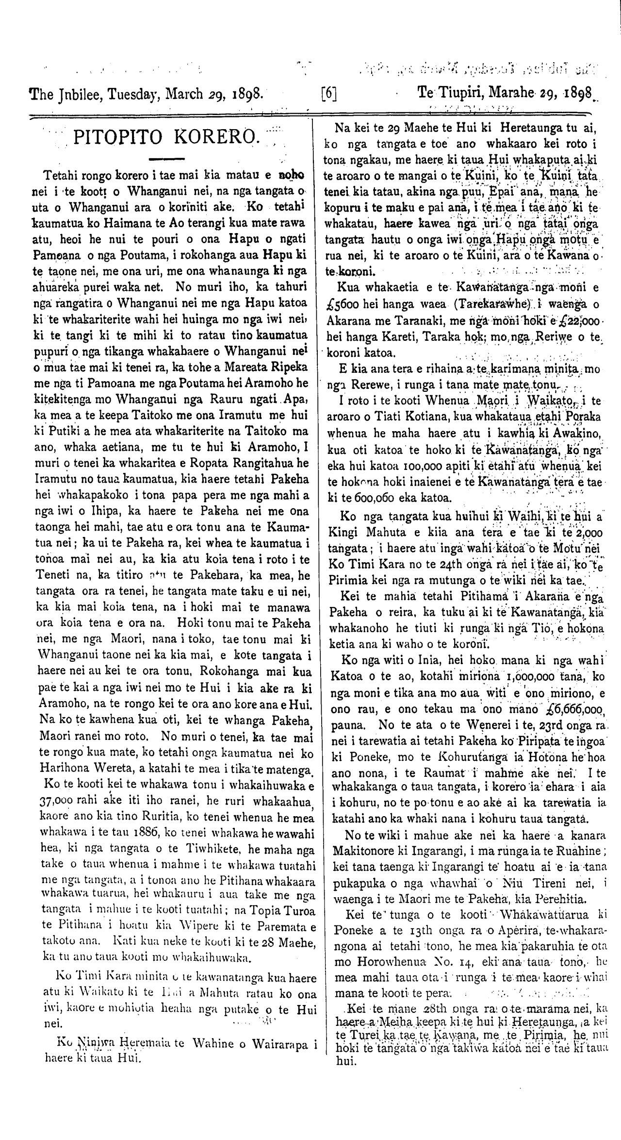 The Jubilee, Tuesday, March 29, 1898. [2] Te Tiupiri, Marahe 29, 1898.