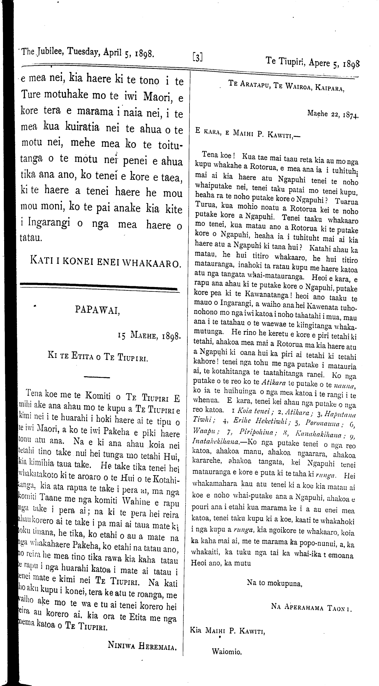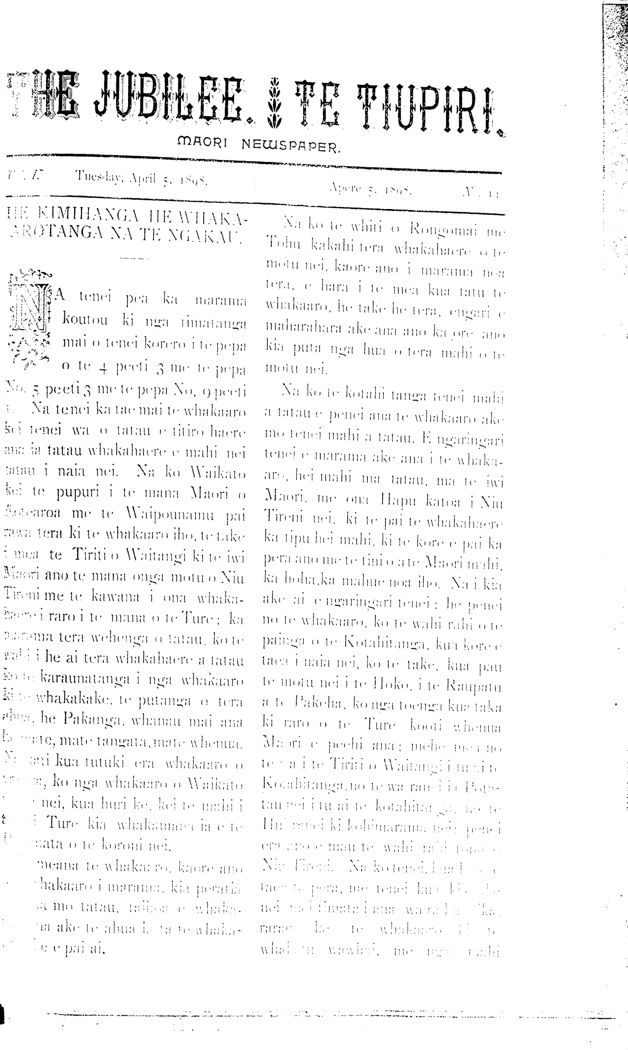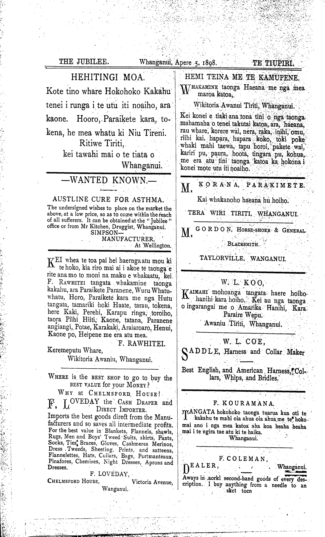 THE JUBILEE. Whanganui, Apere 5, 1898. TE TIUPIRI,