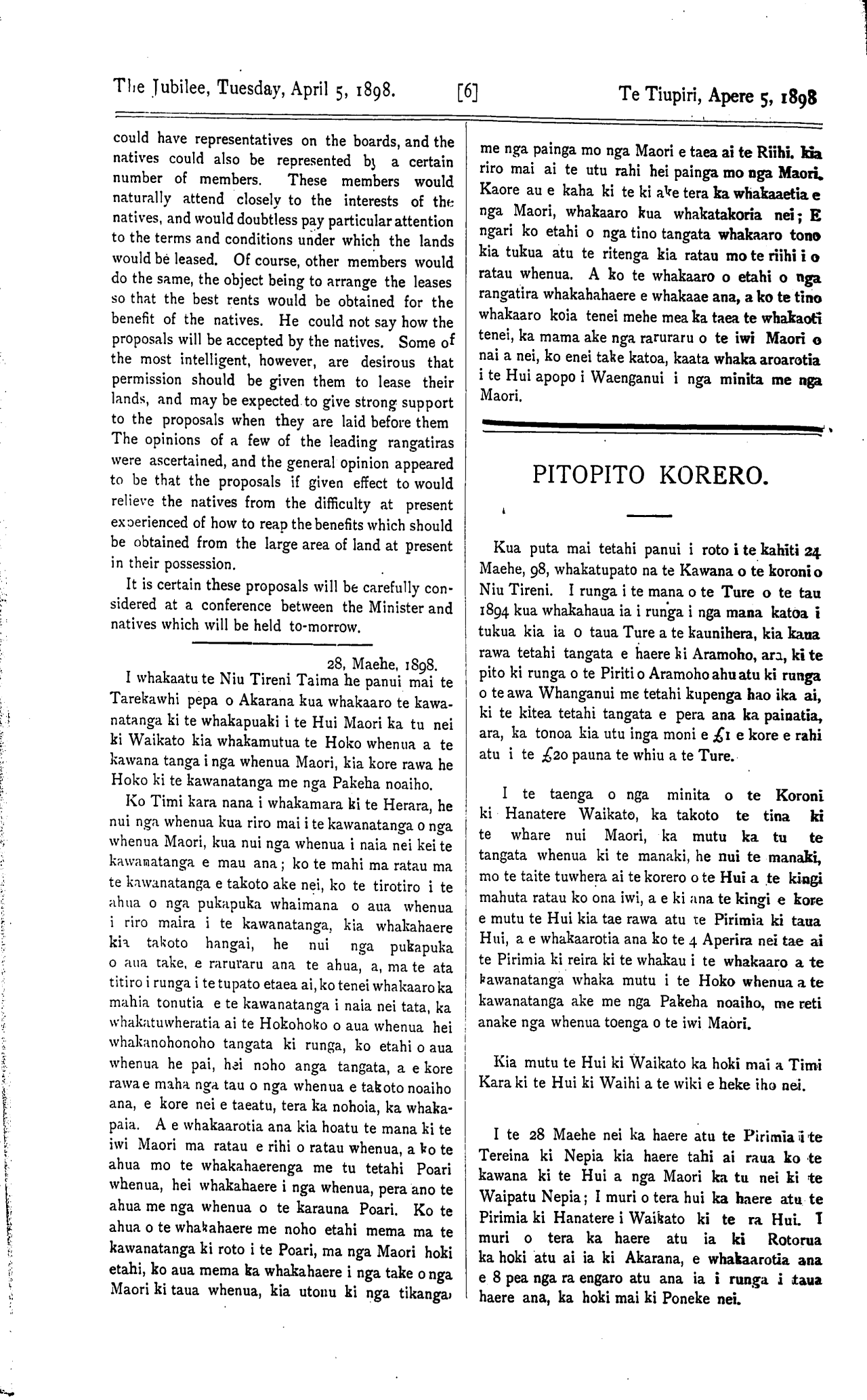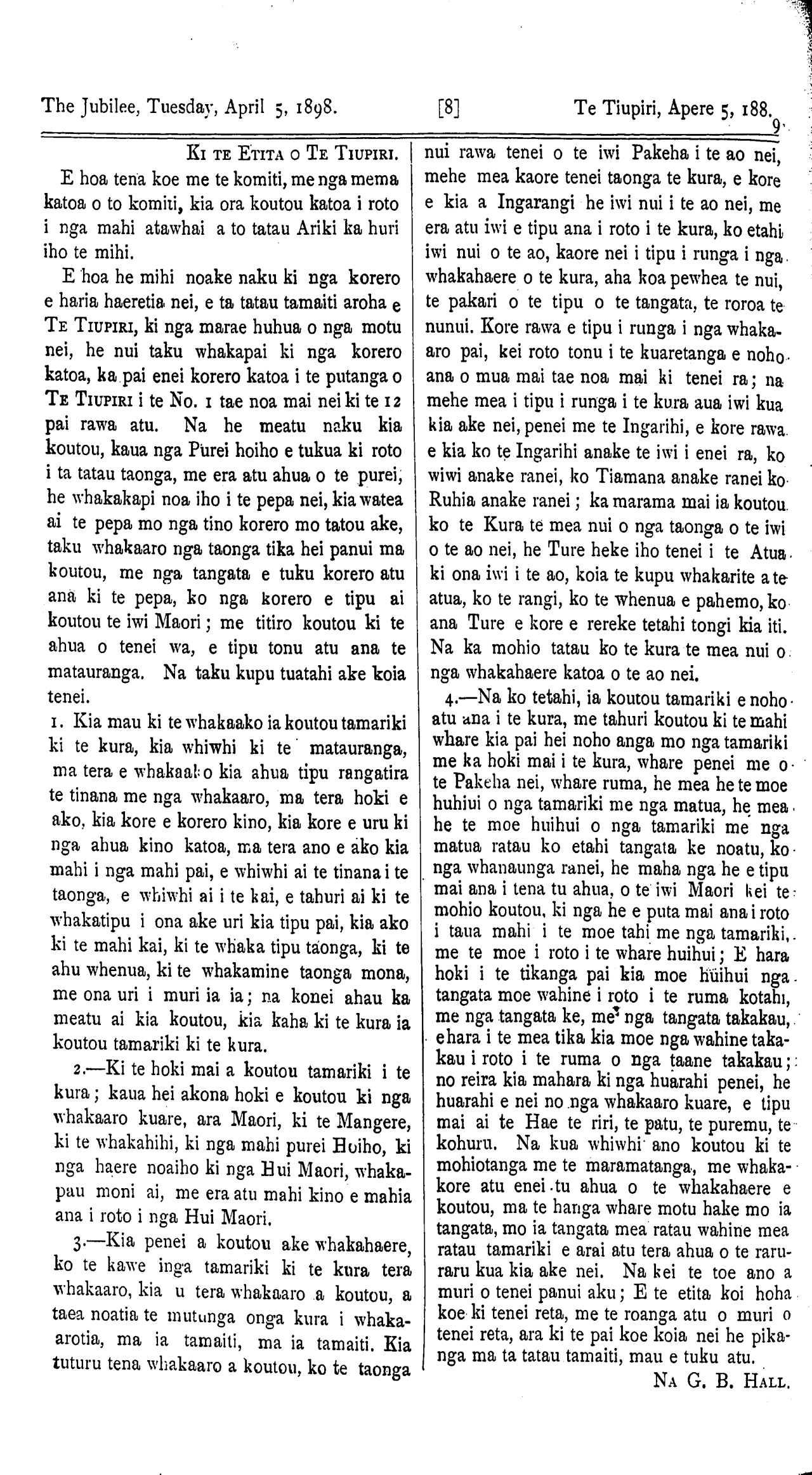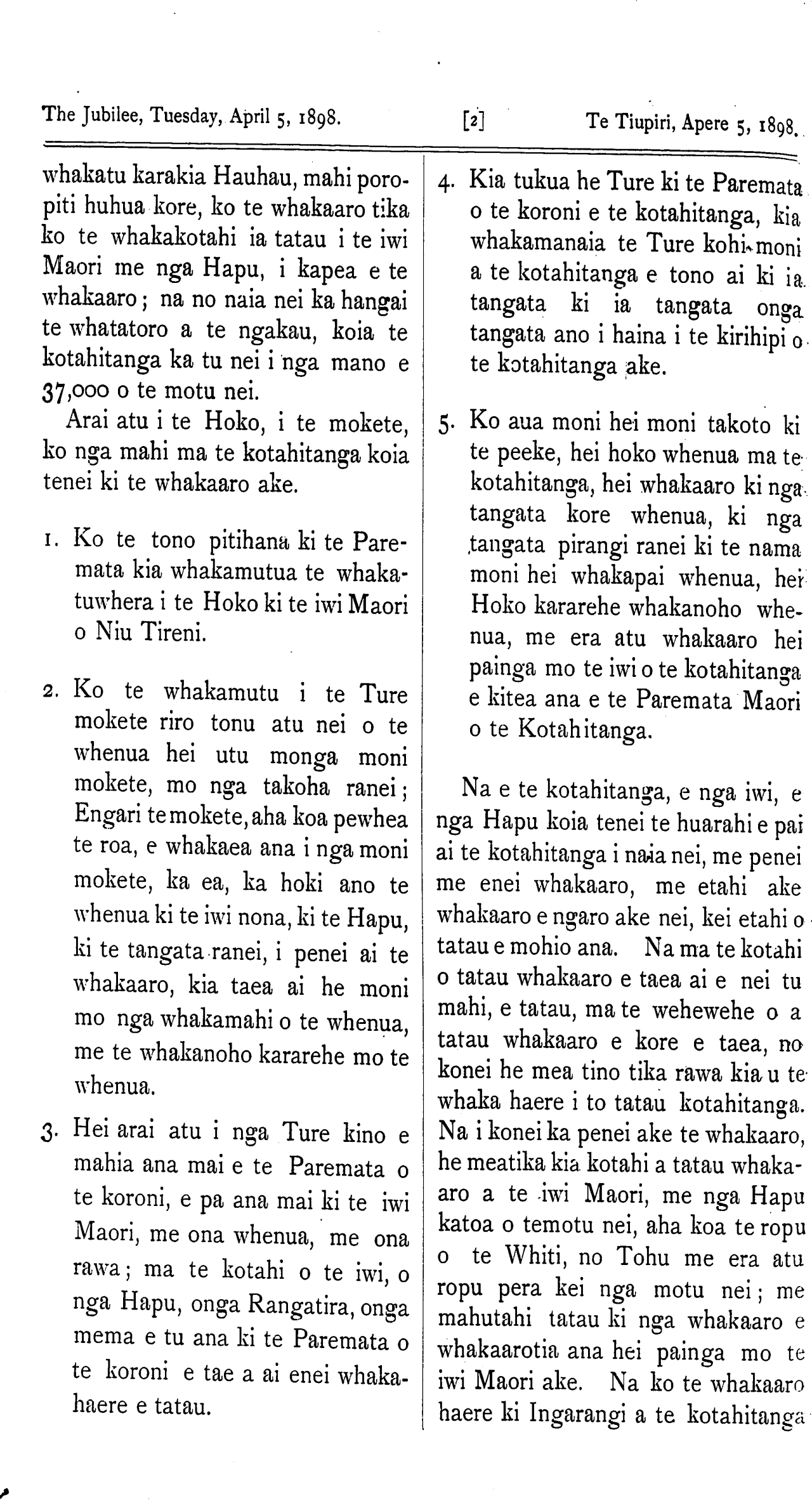 THE JUBILEE. Whanganui, Apere 5, 1898. TE TIUPIRI,