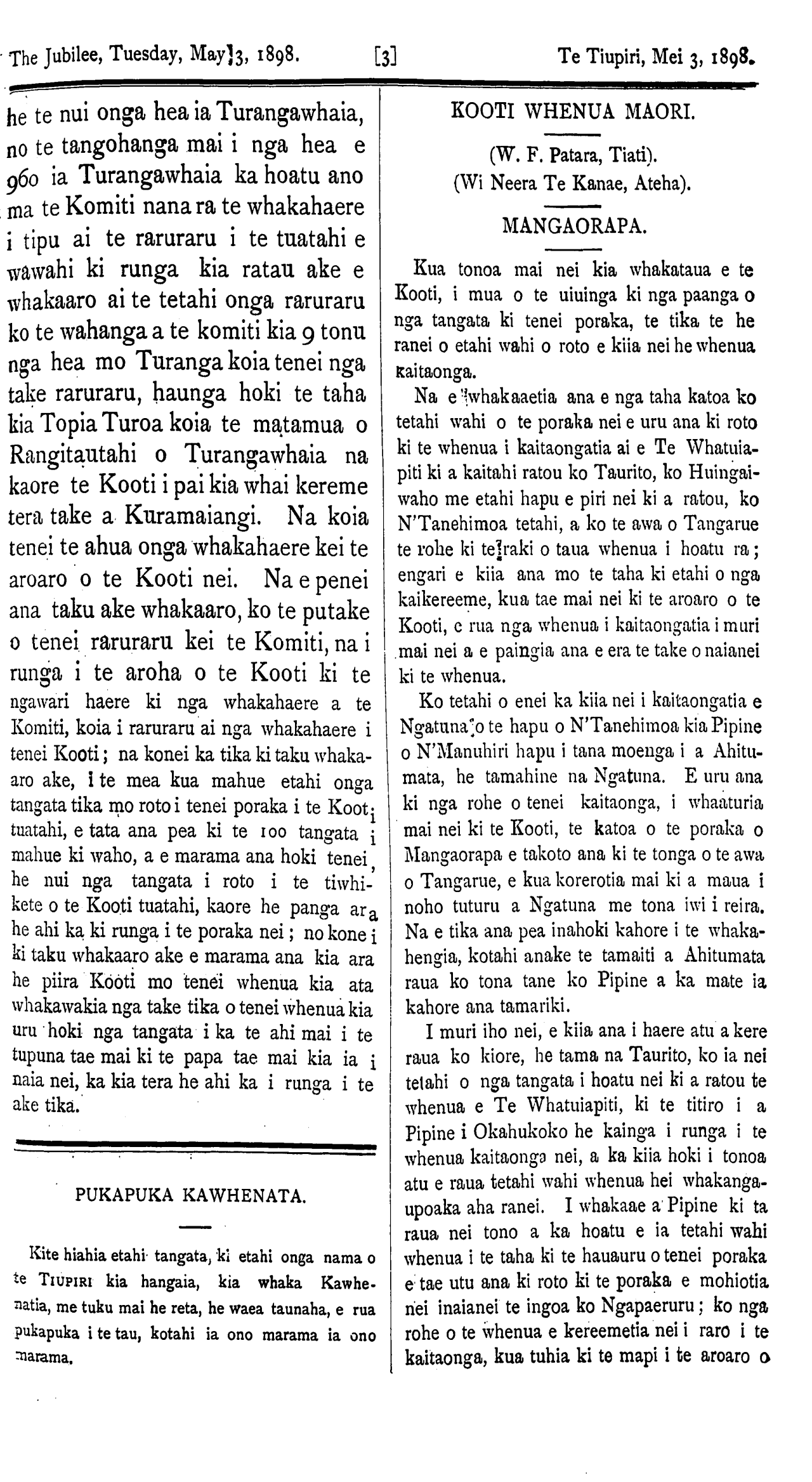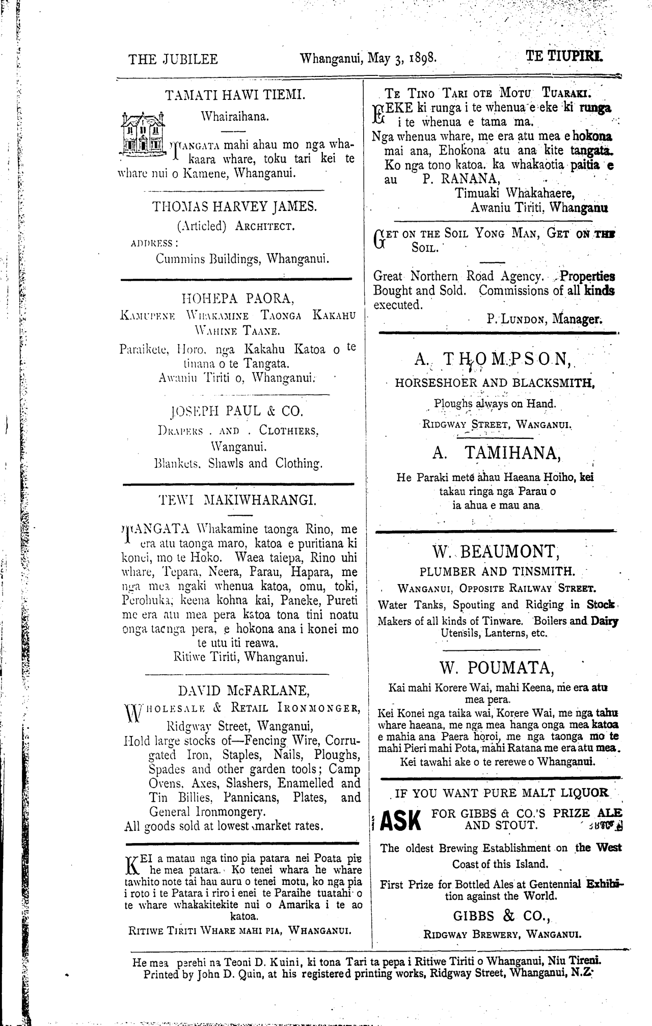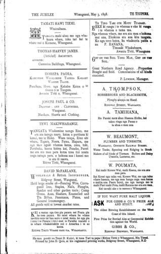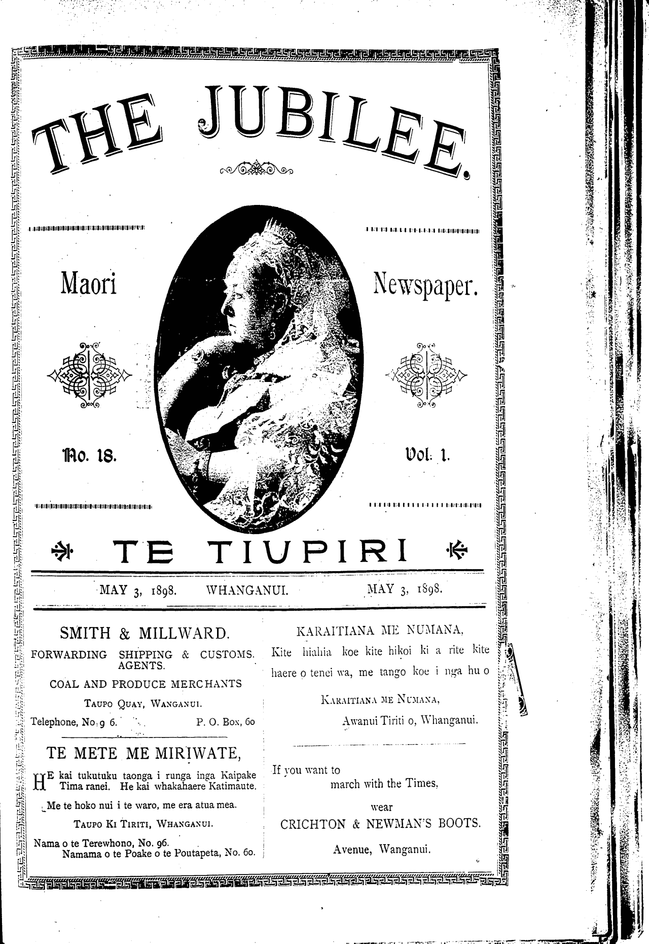 THE JUBILEE. Whanganui, May 3 1898. TE TIUPIRI.