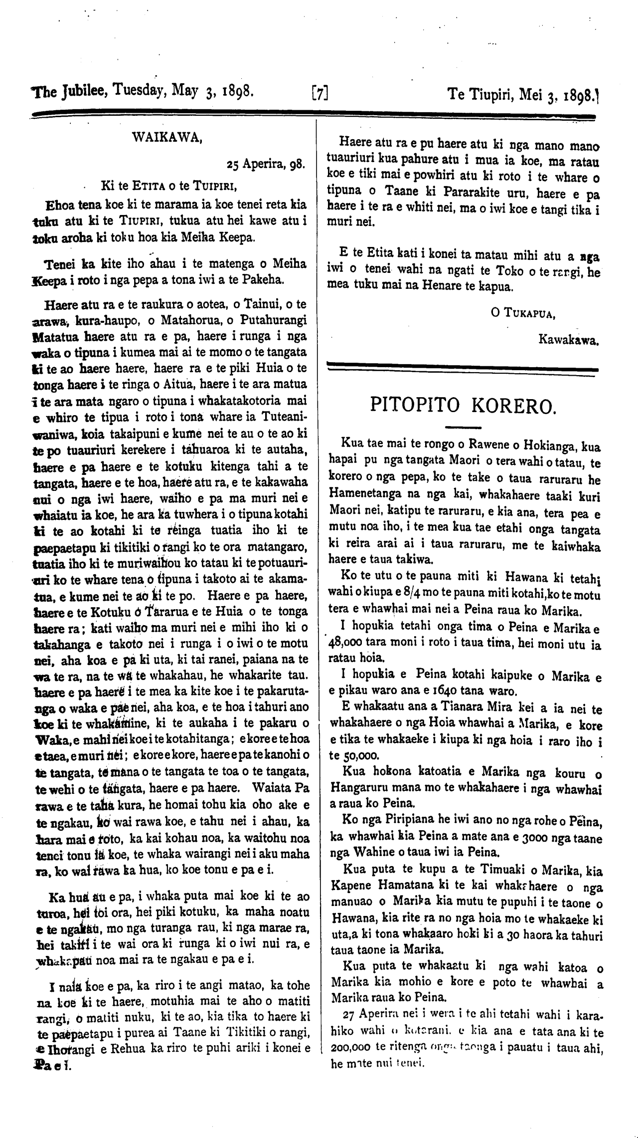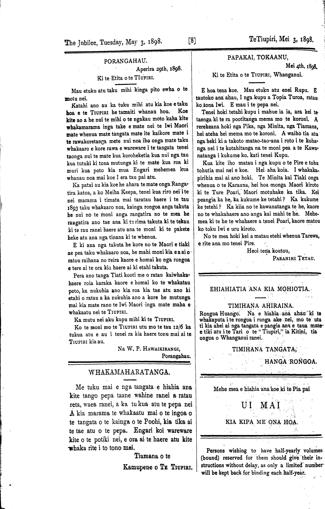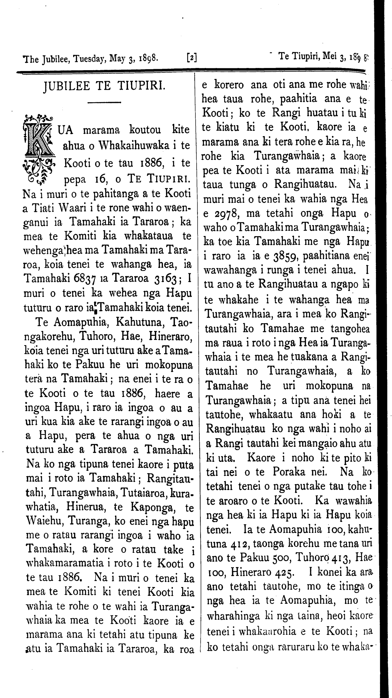 The Jubilee, Tuesday, May 3, 1898. [8] Te Tiupiri, Mei 3, 1898.