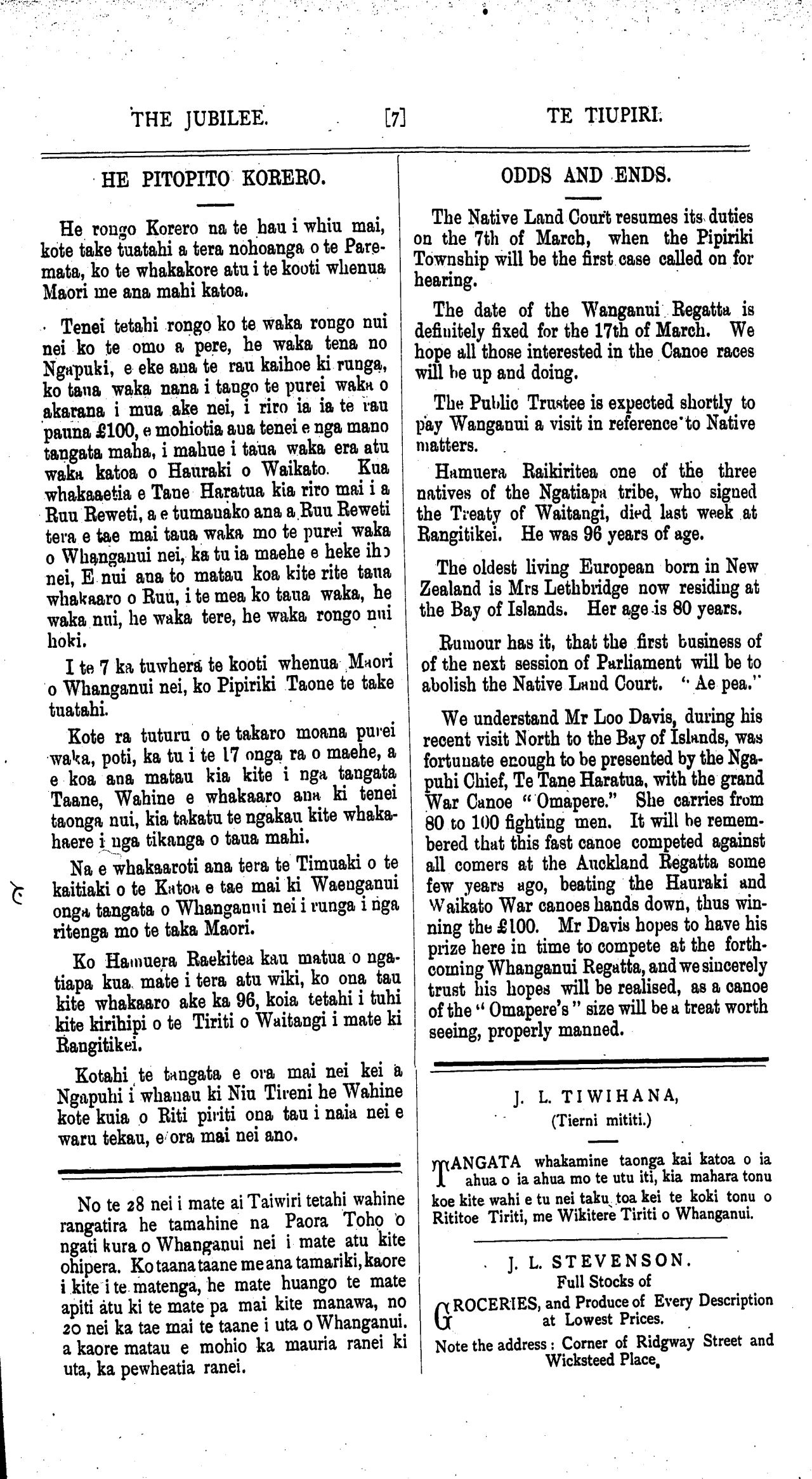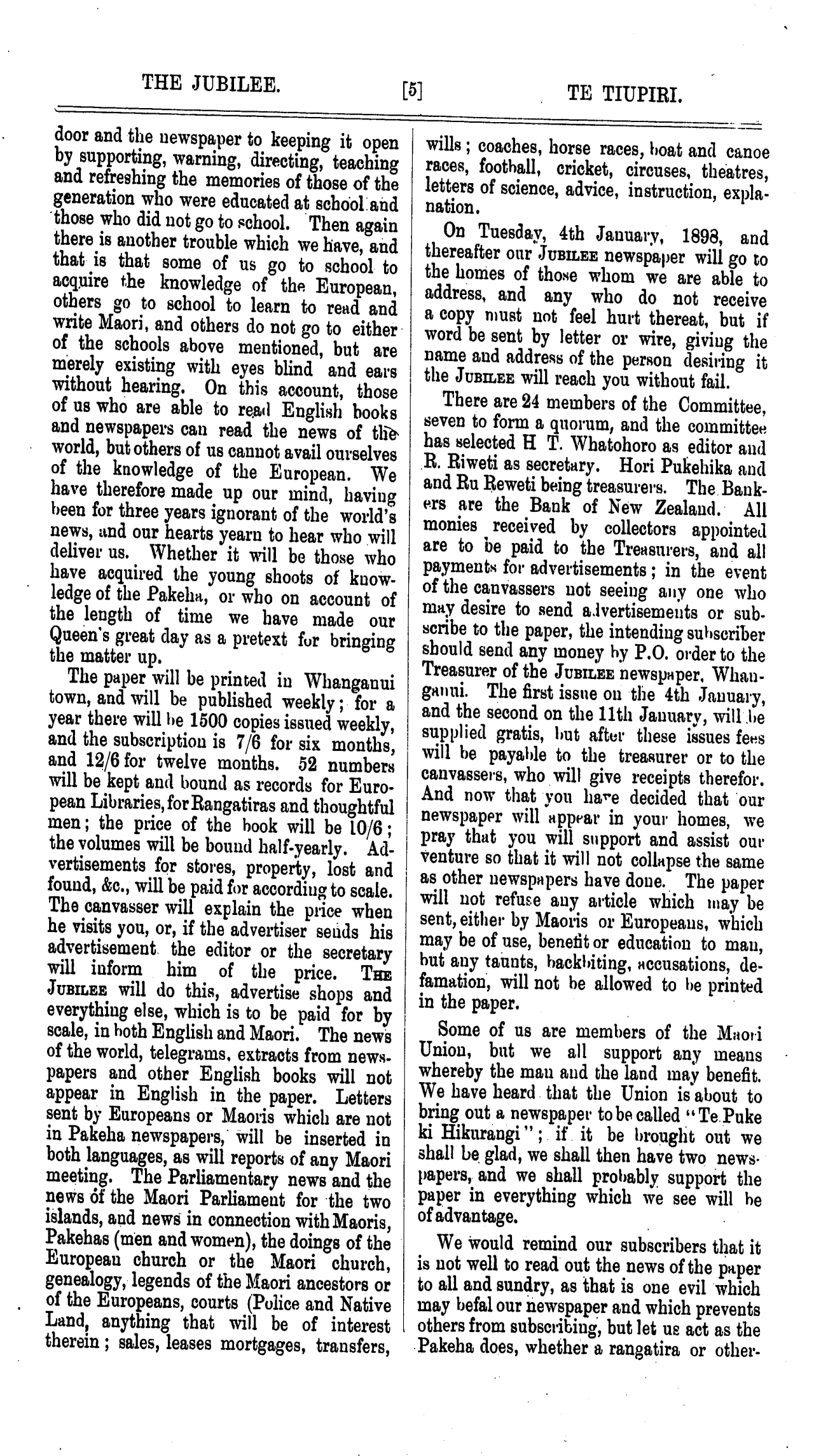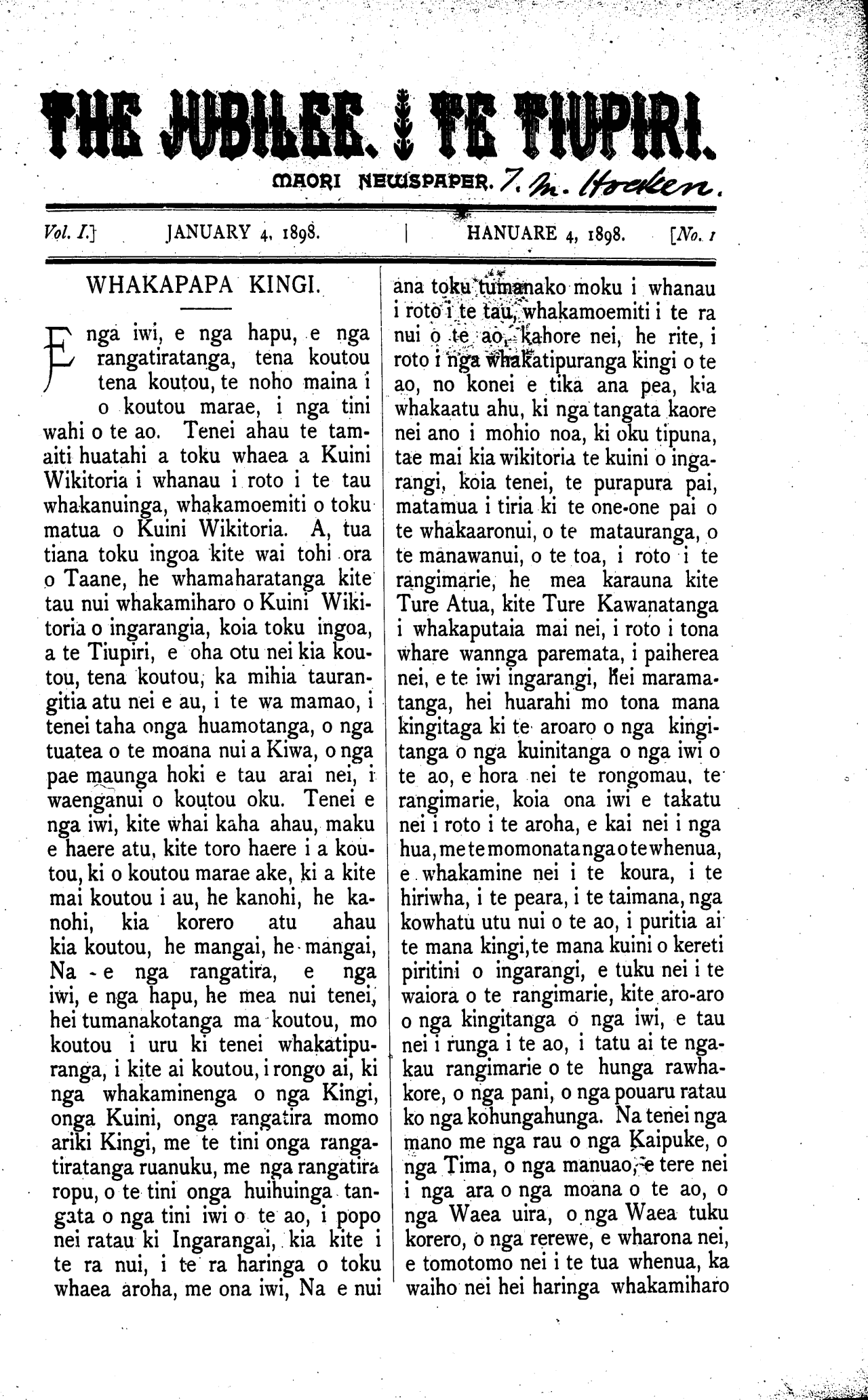 Te Tiupiri 1898-1900: Volume 1, Number 1. 04 January 1898 |
