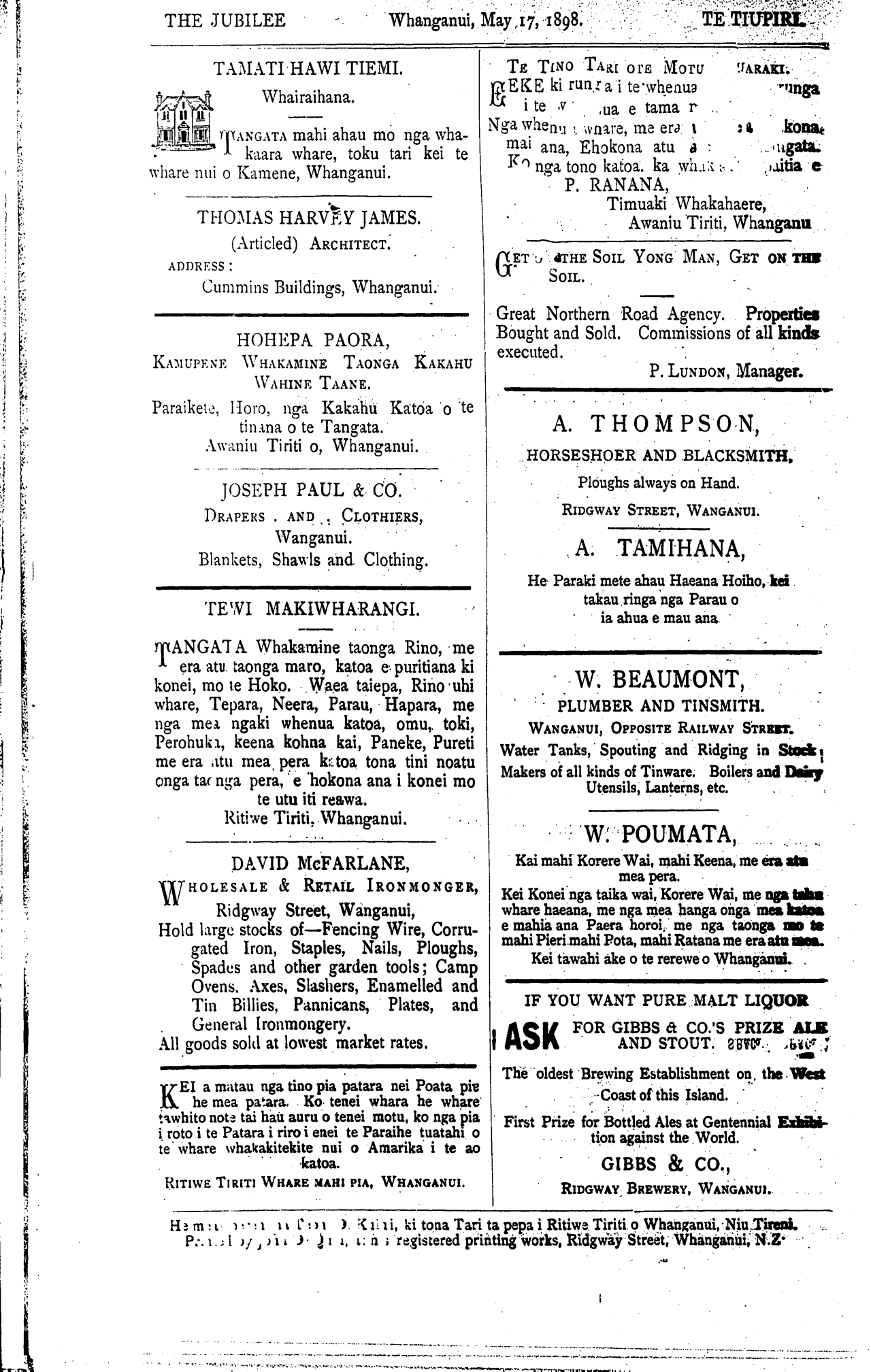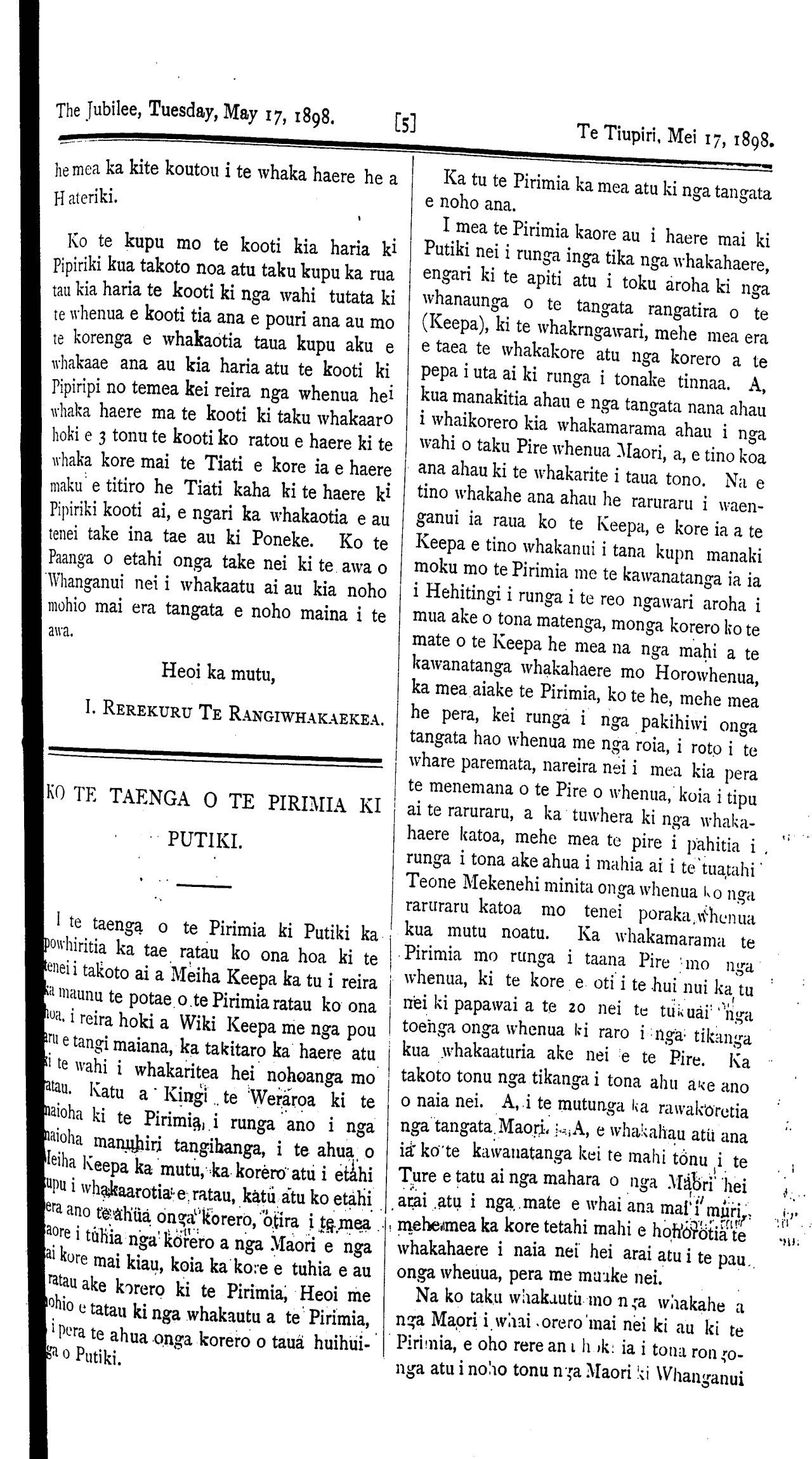 The Jubilee, Tuesday, May 17, 1898. [4] Te Tiupiri, Mei 17, 1898.