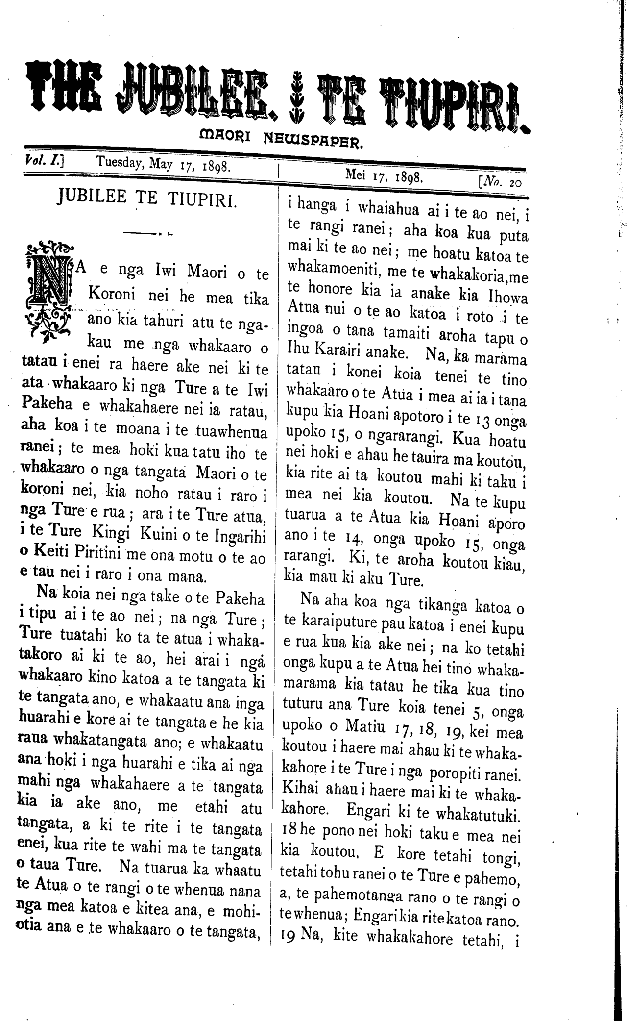 Te Tiupiri 1898-1900: Volume 1, Number 20. 17 May 1898 |
