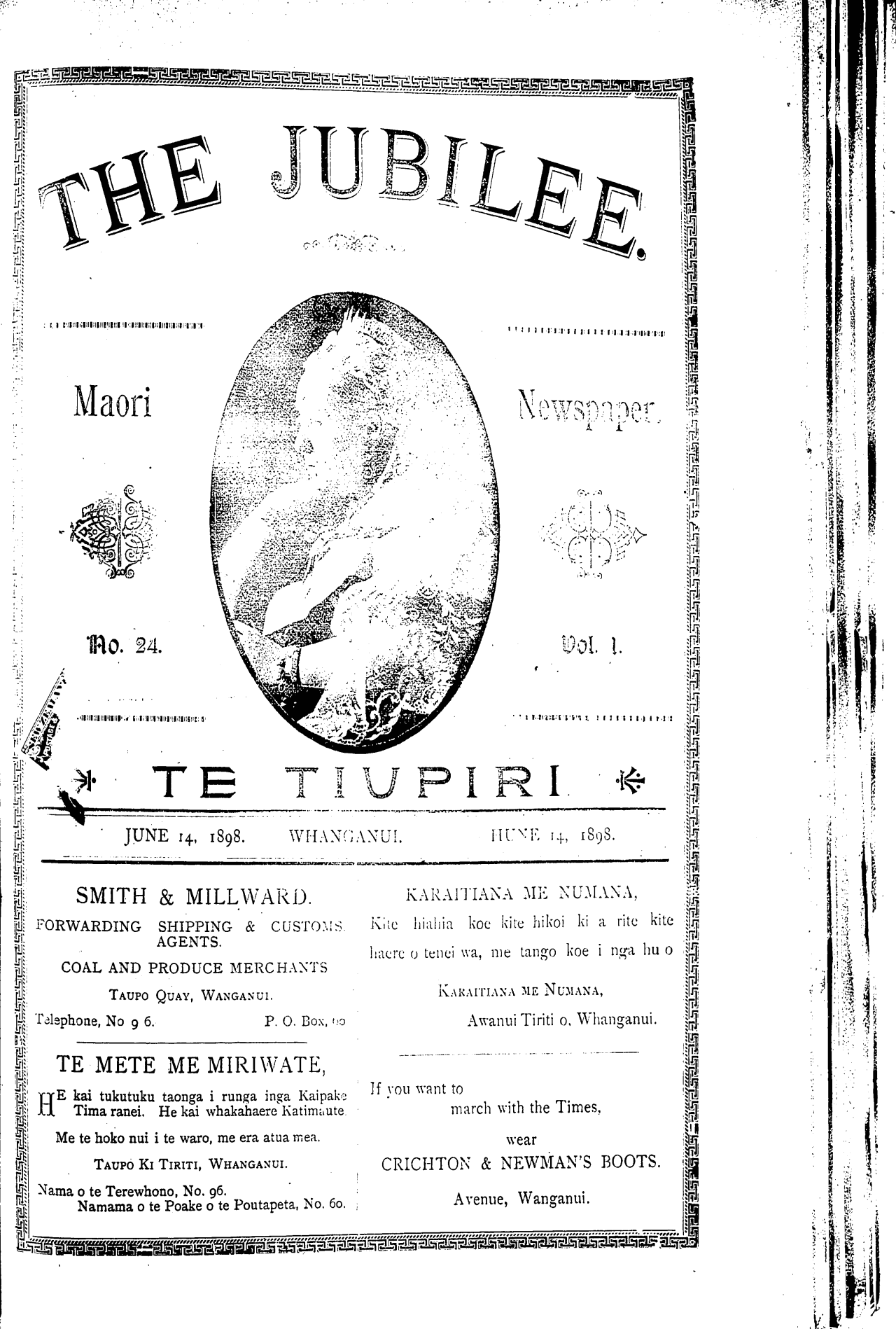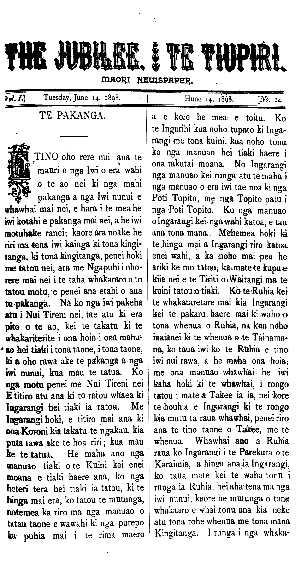 Te Tiupiri 1898-1900: Volume 1, Number 24. 14 June 1898 |