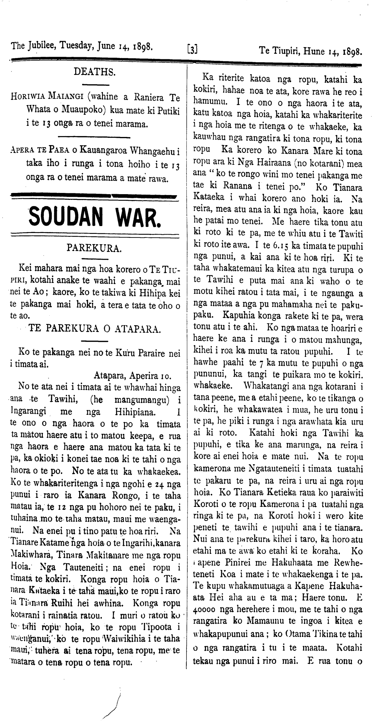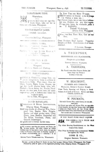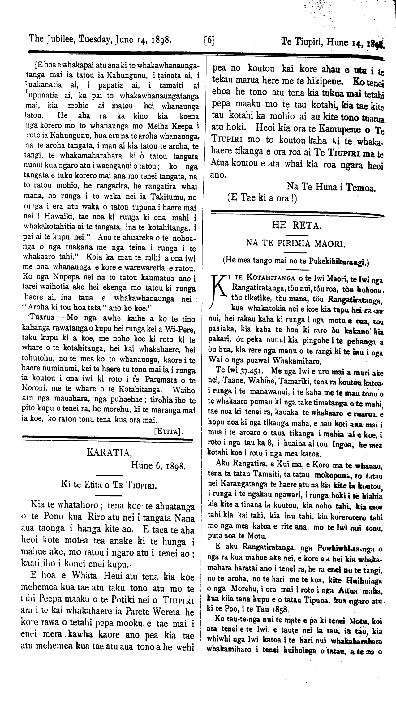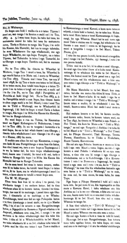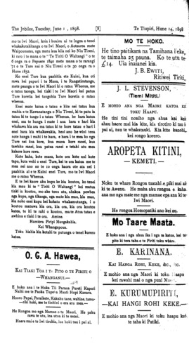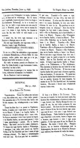 The Jubilee, Tuesday, June 1, 1898. [8] Te Tiupiri, Hune 14, 1898