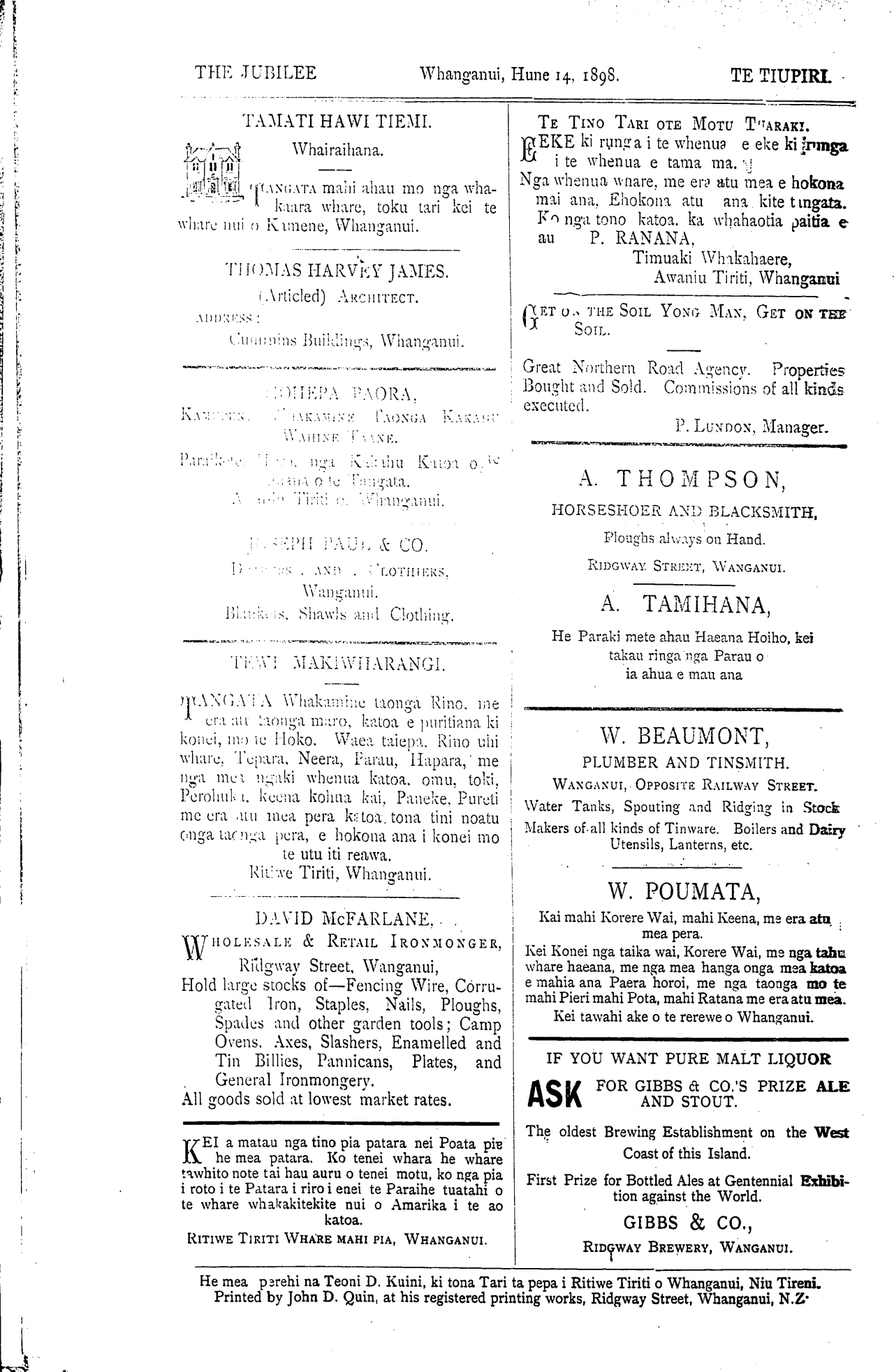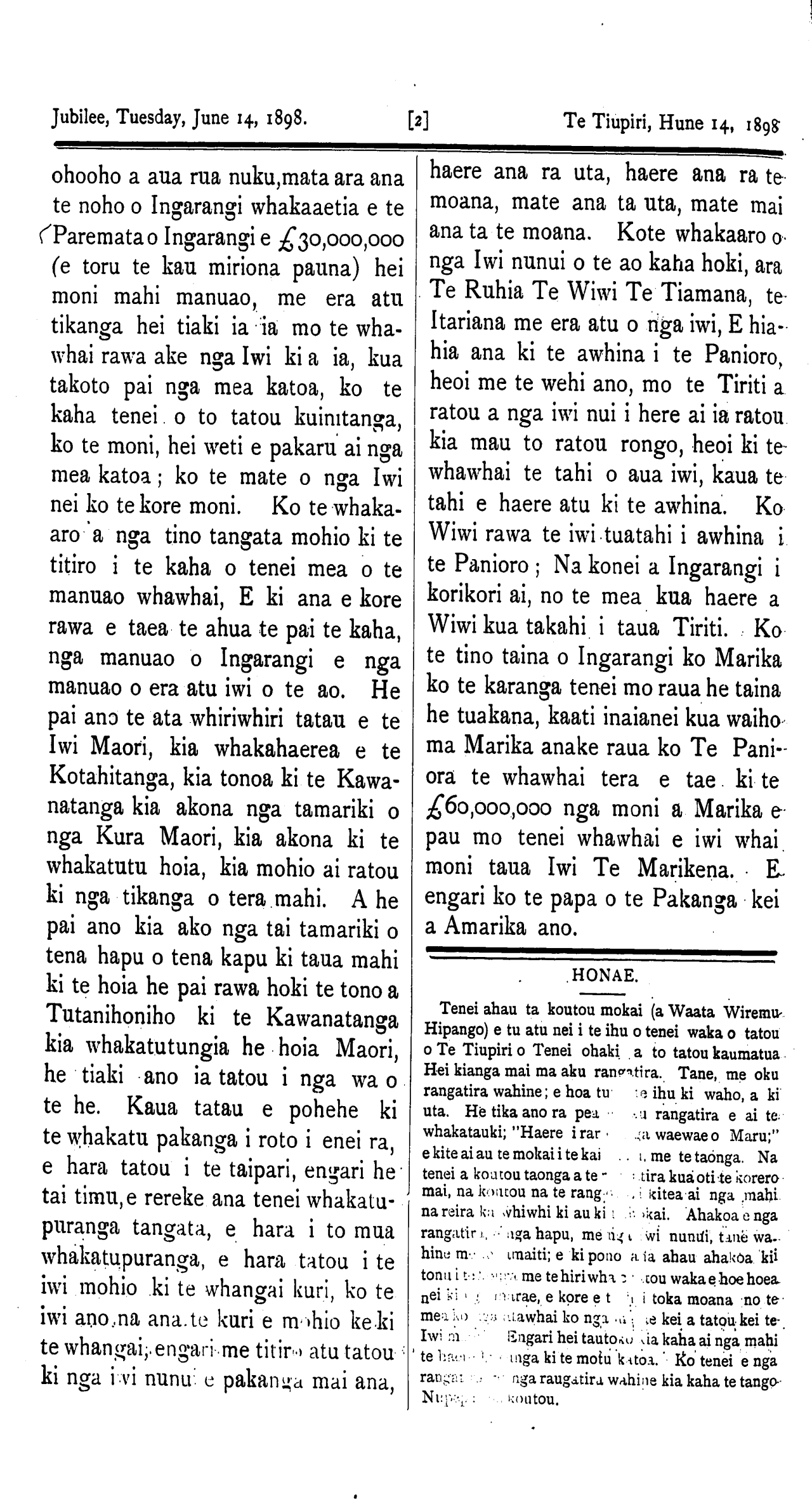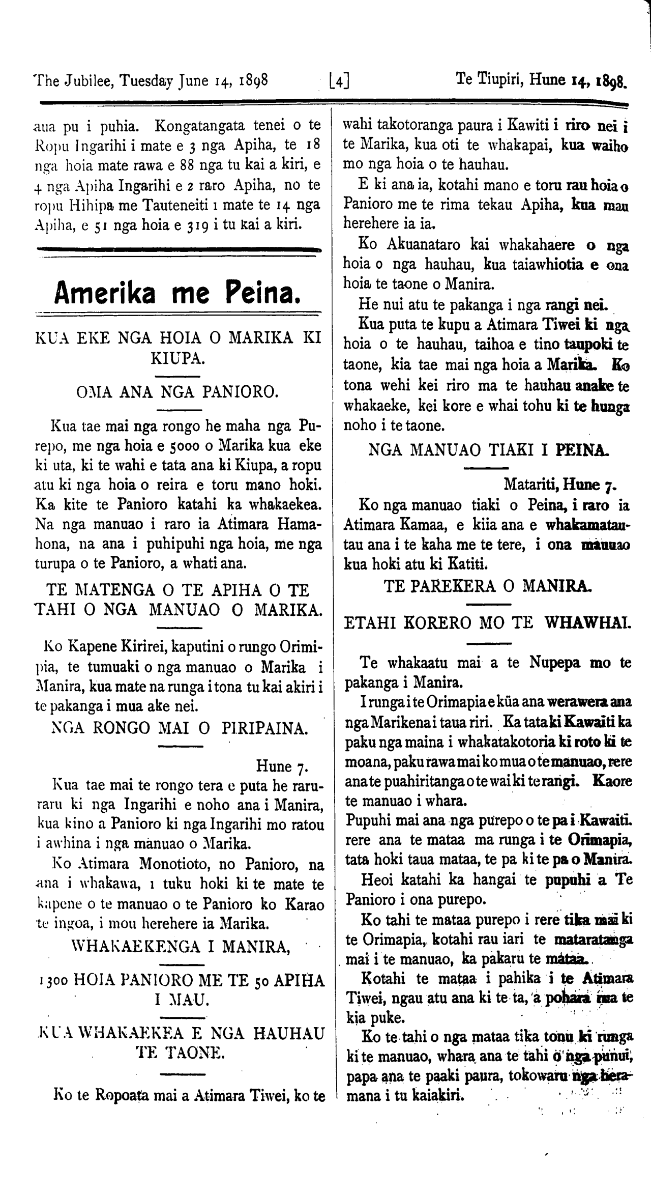 The Jubilee, Tuesday, June 1, 1898. [8] Te Tiupiri, Hune 14, 1898