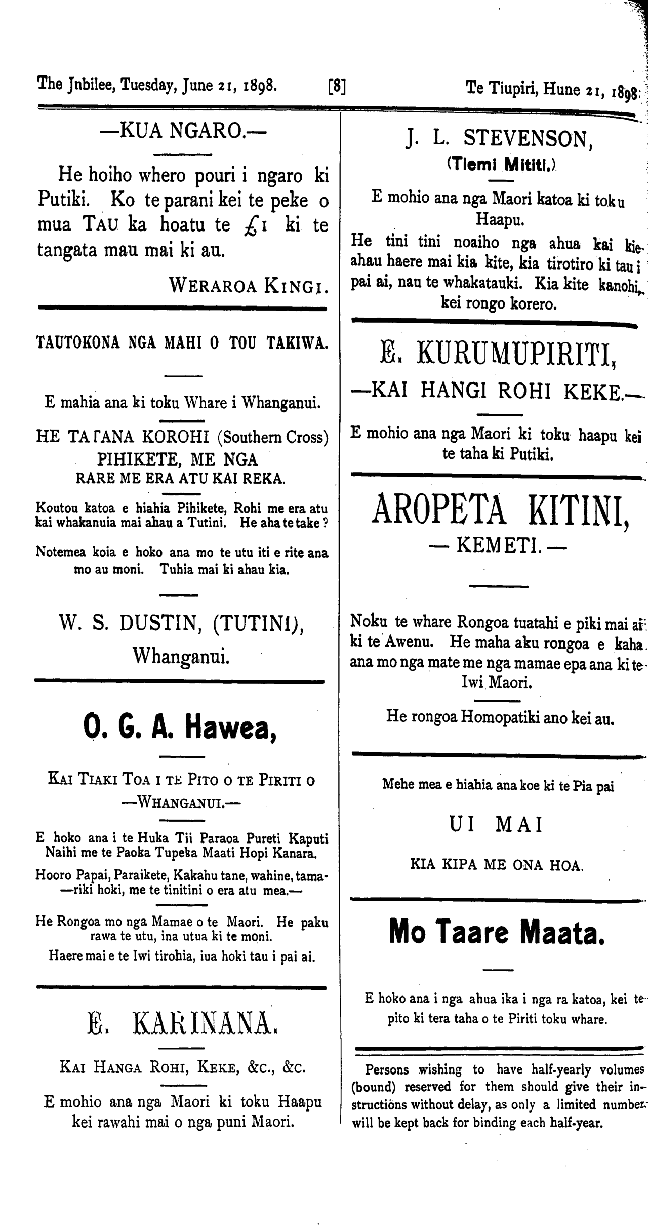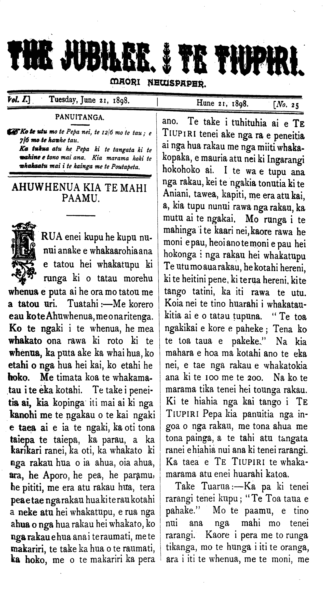Te Tiupiri 1898-1900: Volume 1, Number 25. 21 June 1898 |