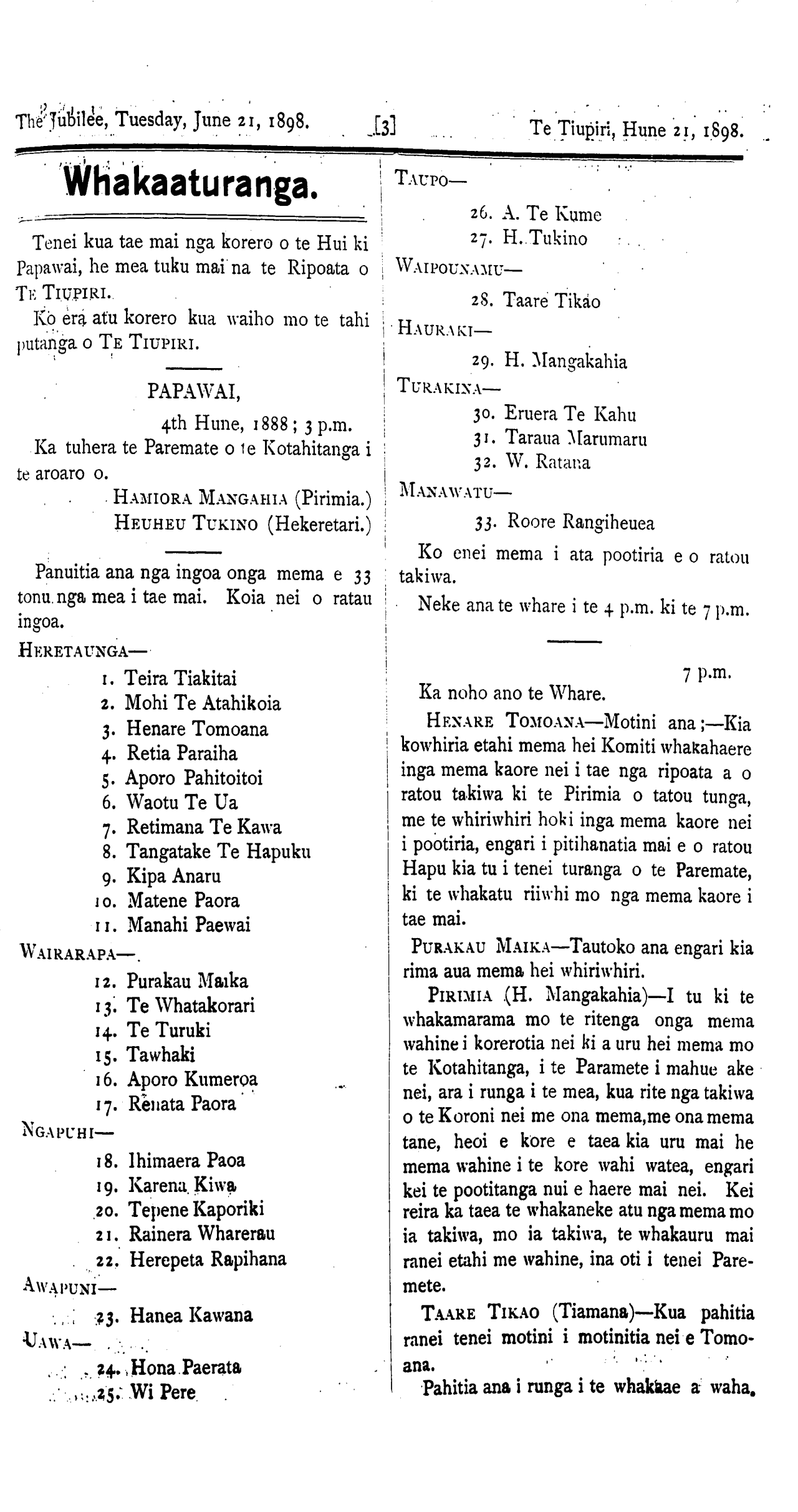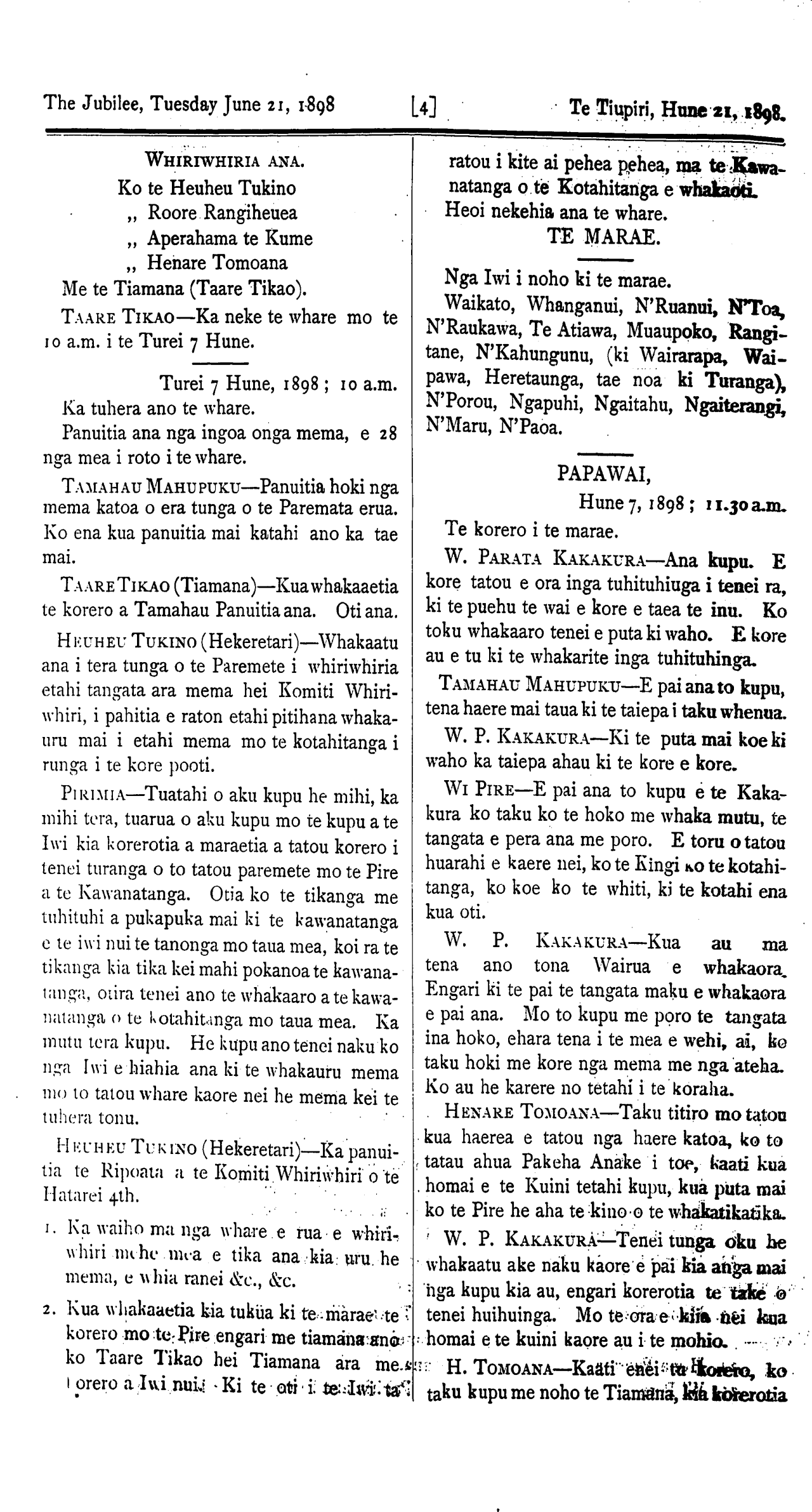 The Jubilee, Tuesday, June 21, 1898. [8] Te Tiupiri, Hune 21, 1898: