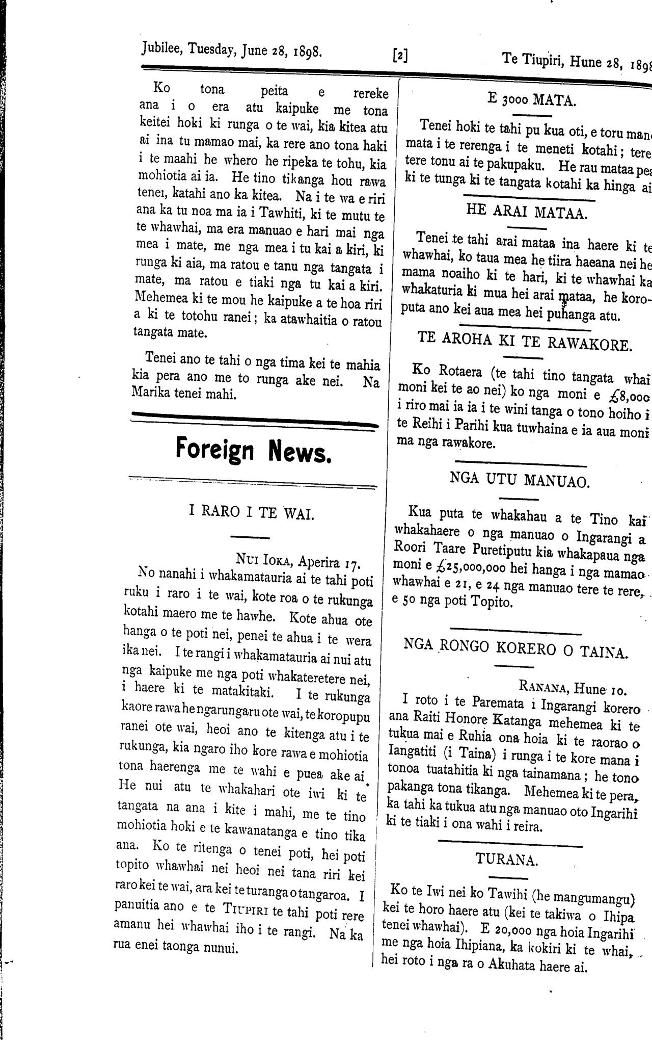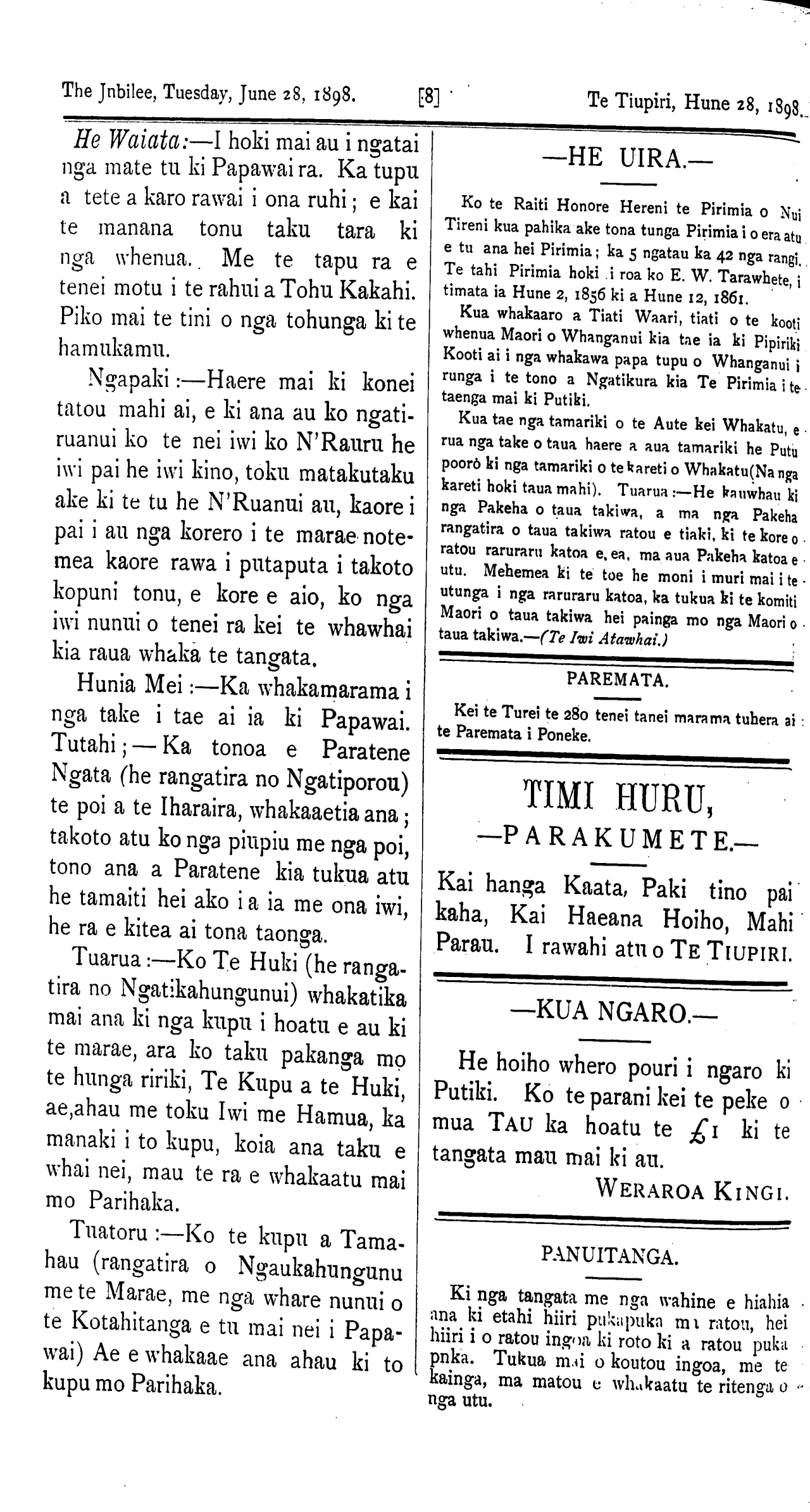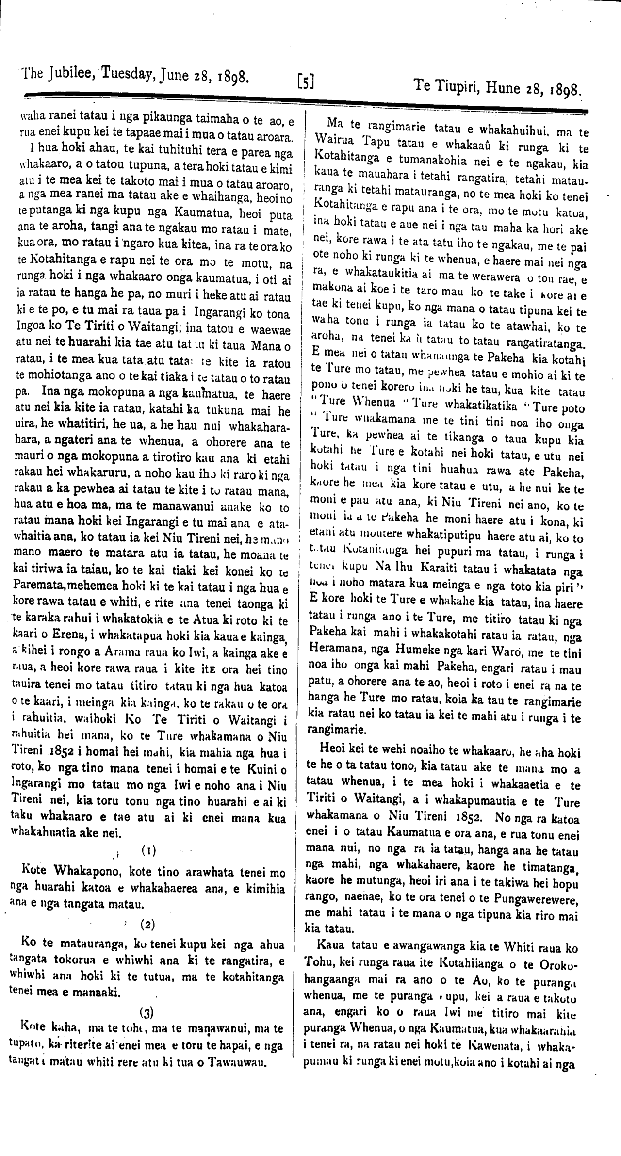 The Jubilee, Tuesday, June 28, 1898. [8] Te Tiupiri, Hune 28, 1898,