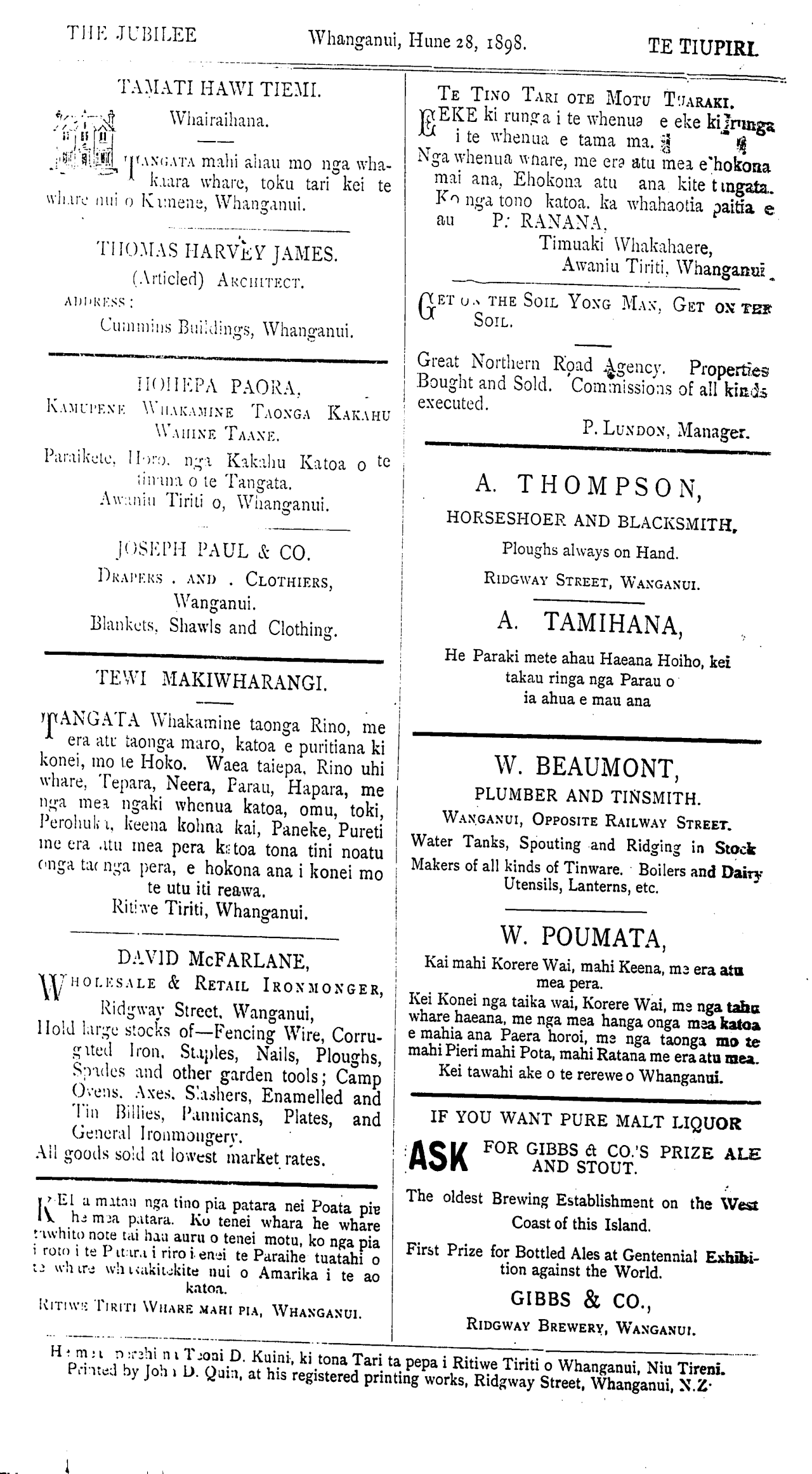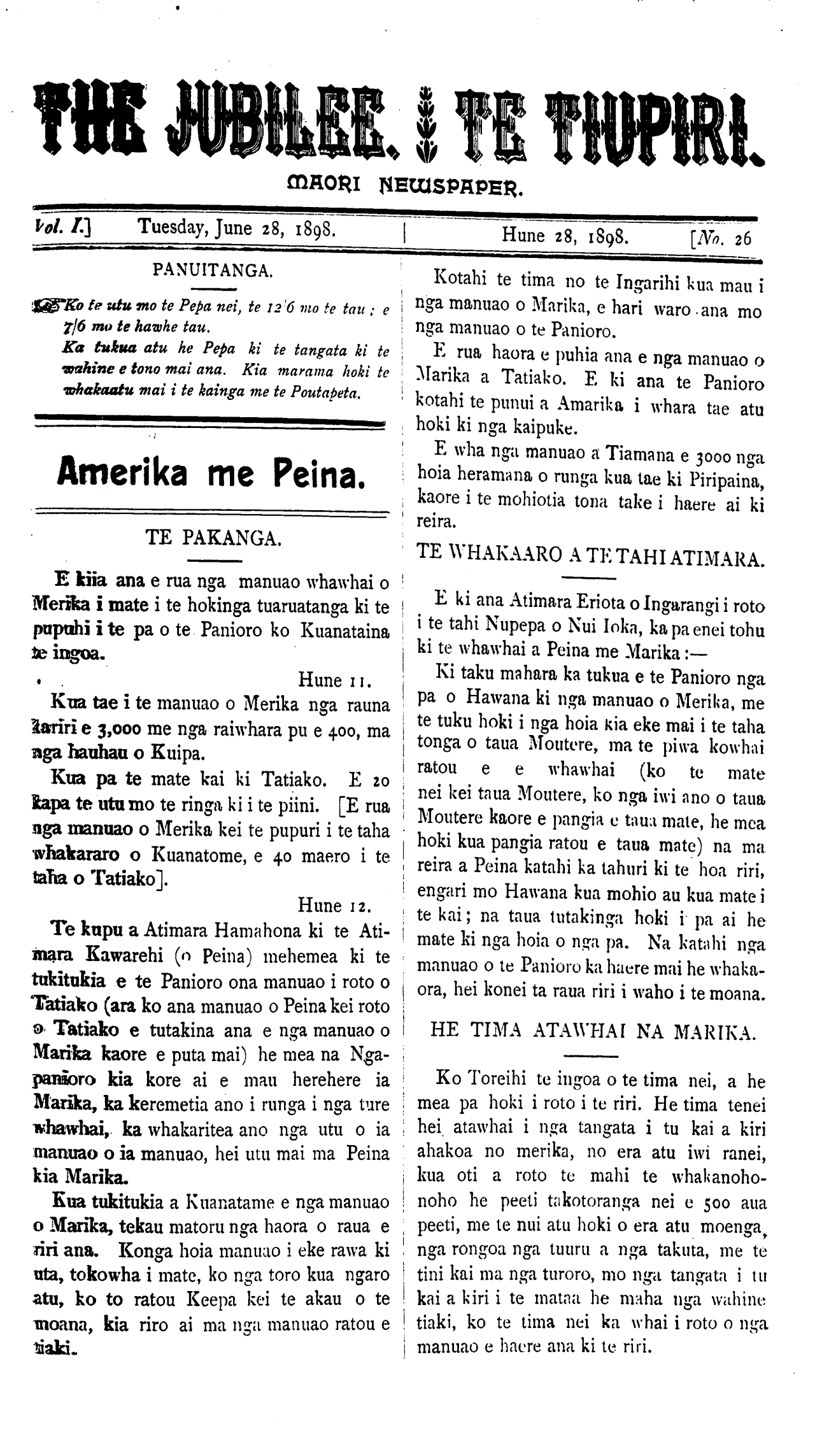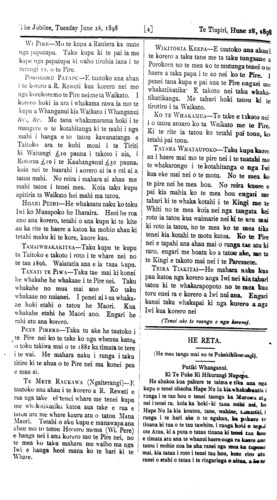 Te Tiupiri 1898-1900: Volume 1, Number 26. 28 June 1898 |