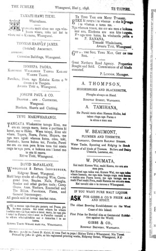 The Jubilee, Tuesday, July 5, 1898. [8] Te Tiupiri, Huri 5, 1898.