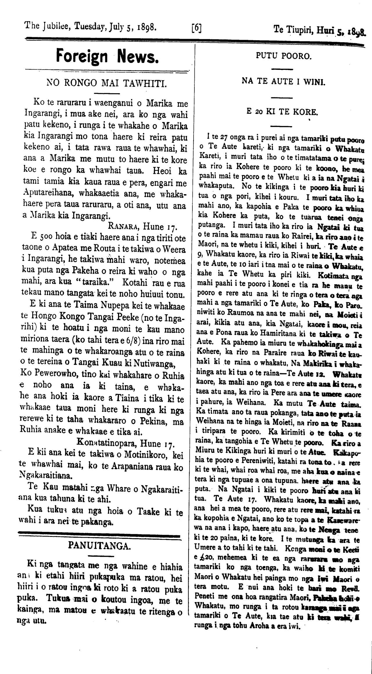 JULY 5, 1898 WHANGANUI. HURI 5, 1898.