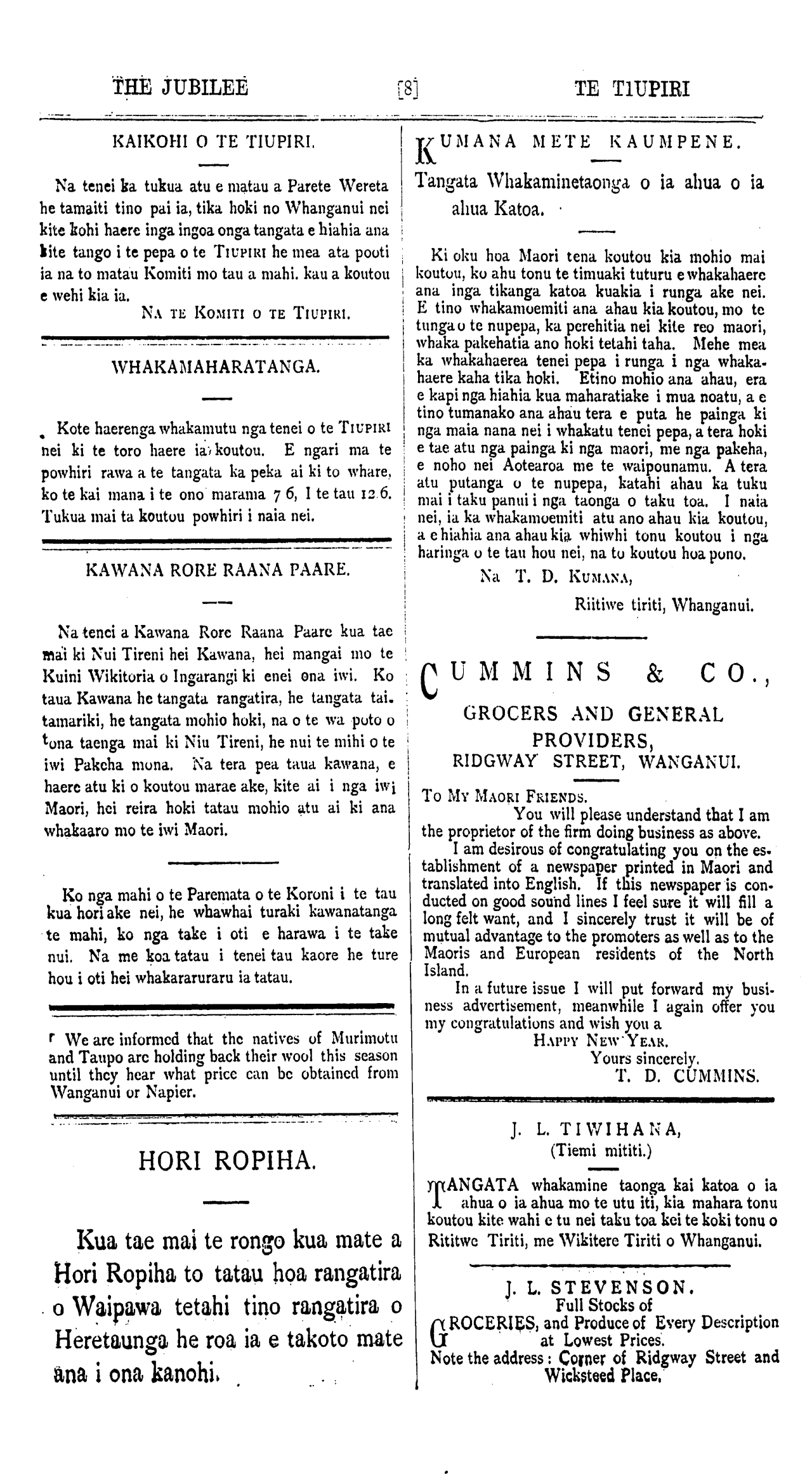 Te Tiupiri 1898-1900: Volume 1, Number 2. 11 January 1898 |