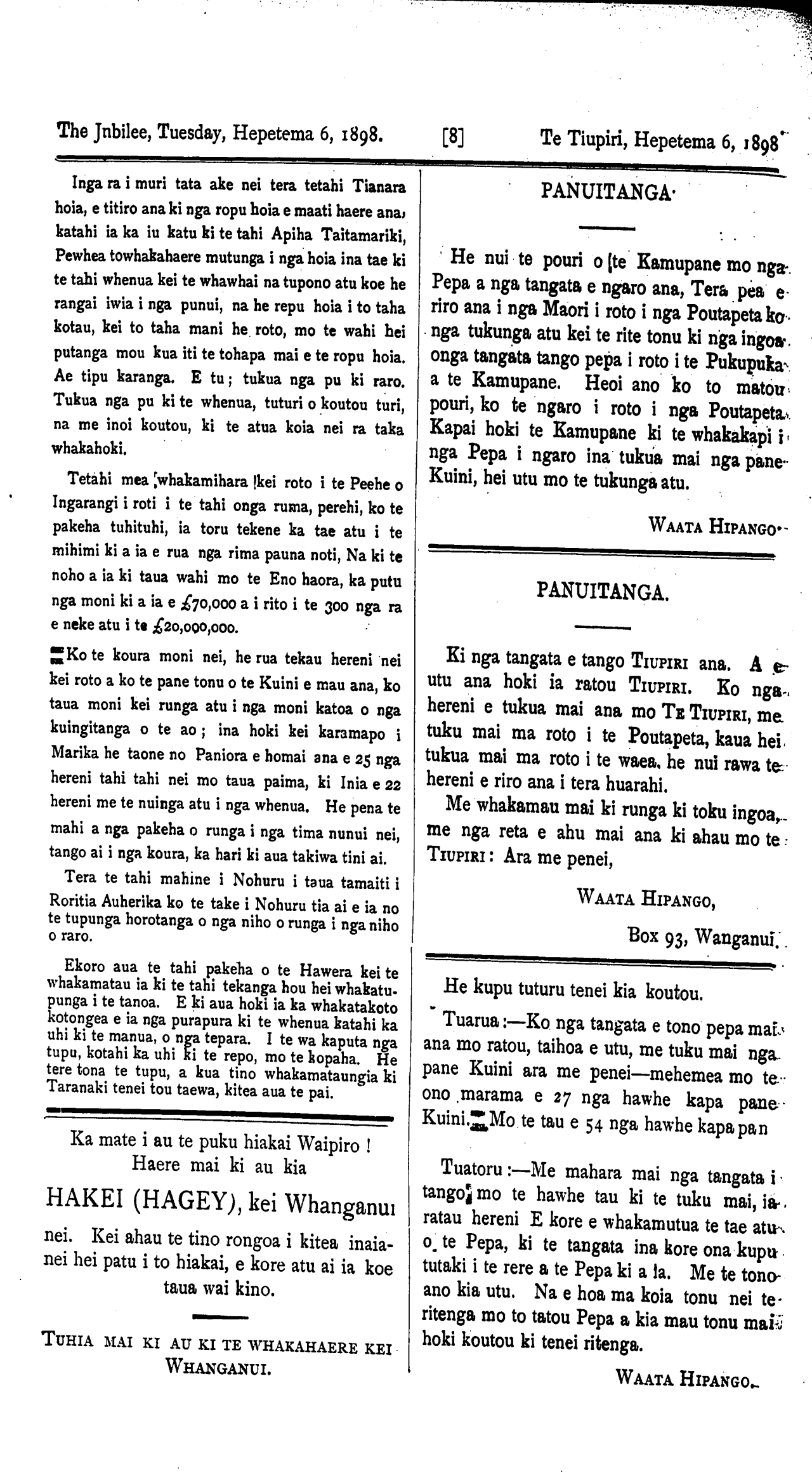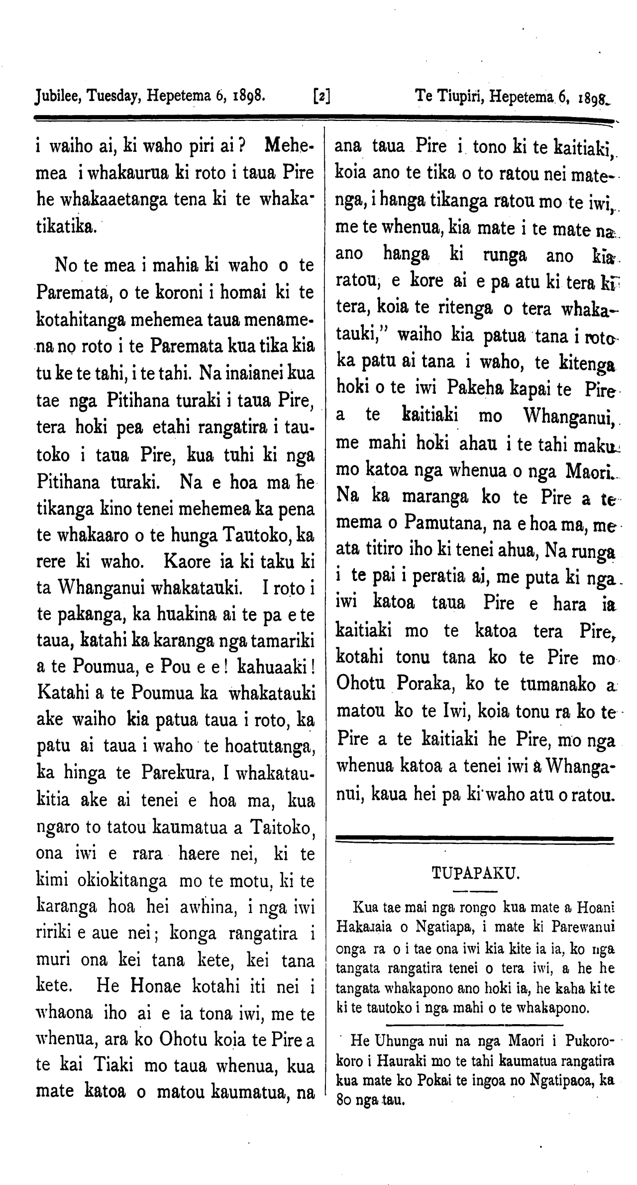 Jubilee, Tuesday, Hepetema 6, 1898. [2] Te Tiupiri, Hepetema 6, 1898