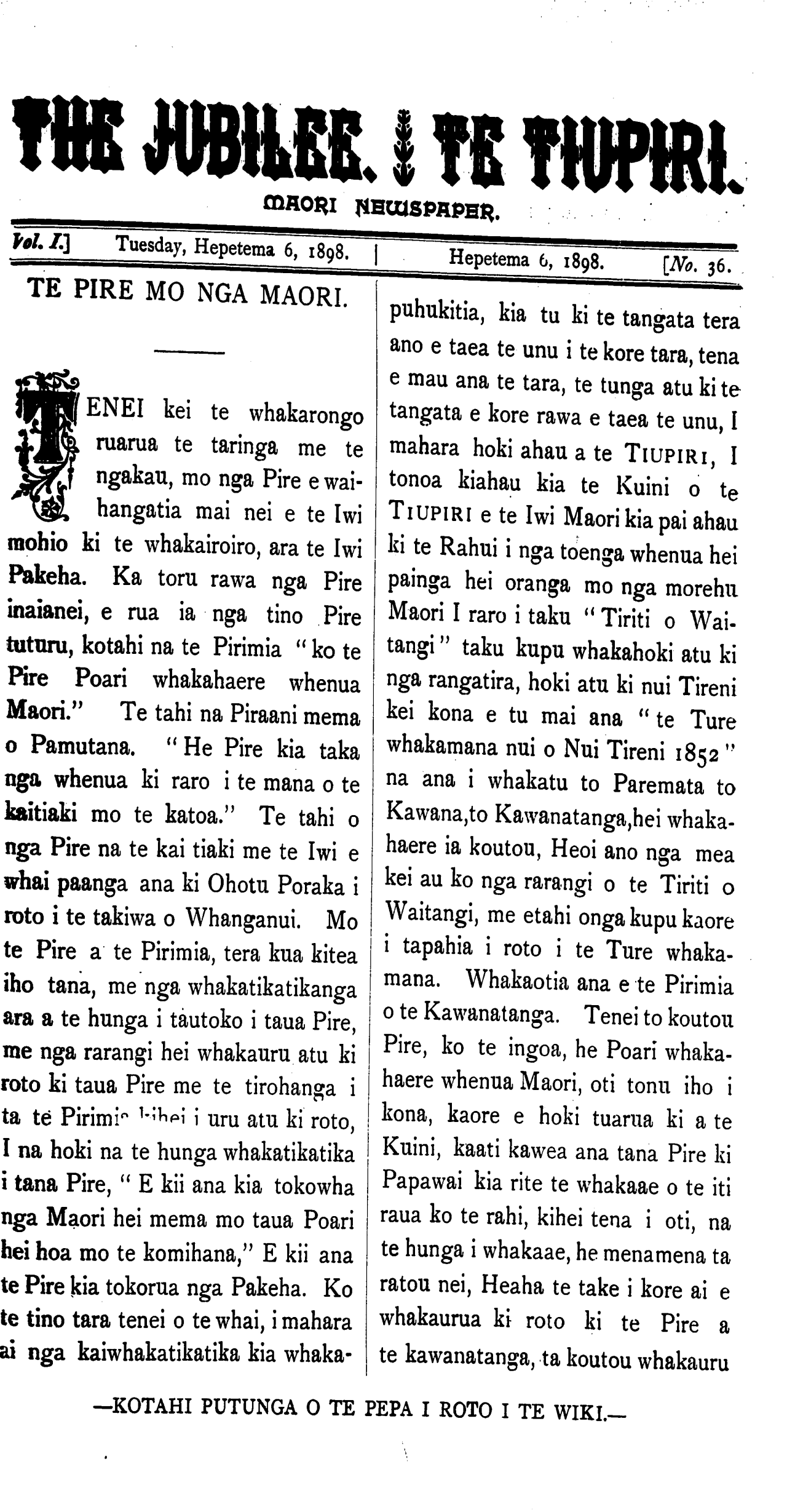 Te Tiupiri 1898-1900: Volume 1, Number 36. 06 September 1898 |