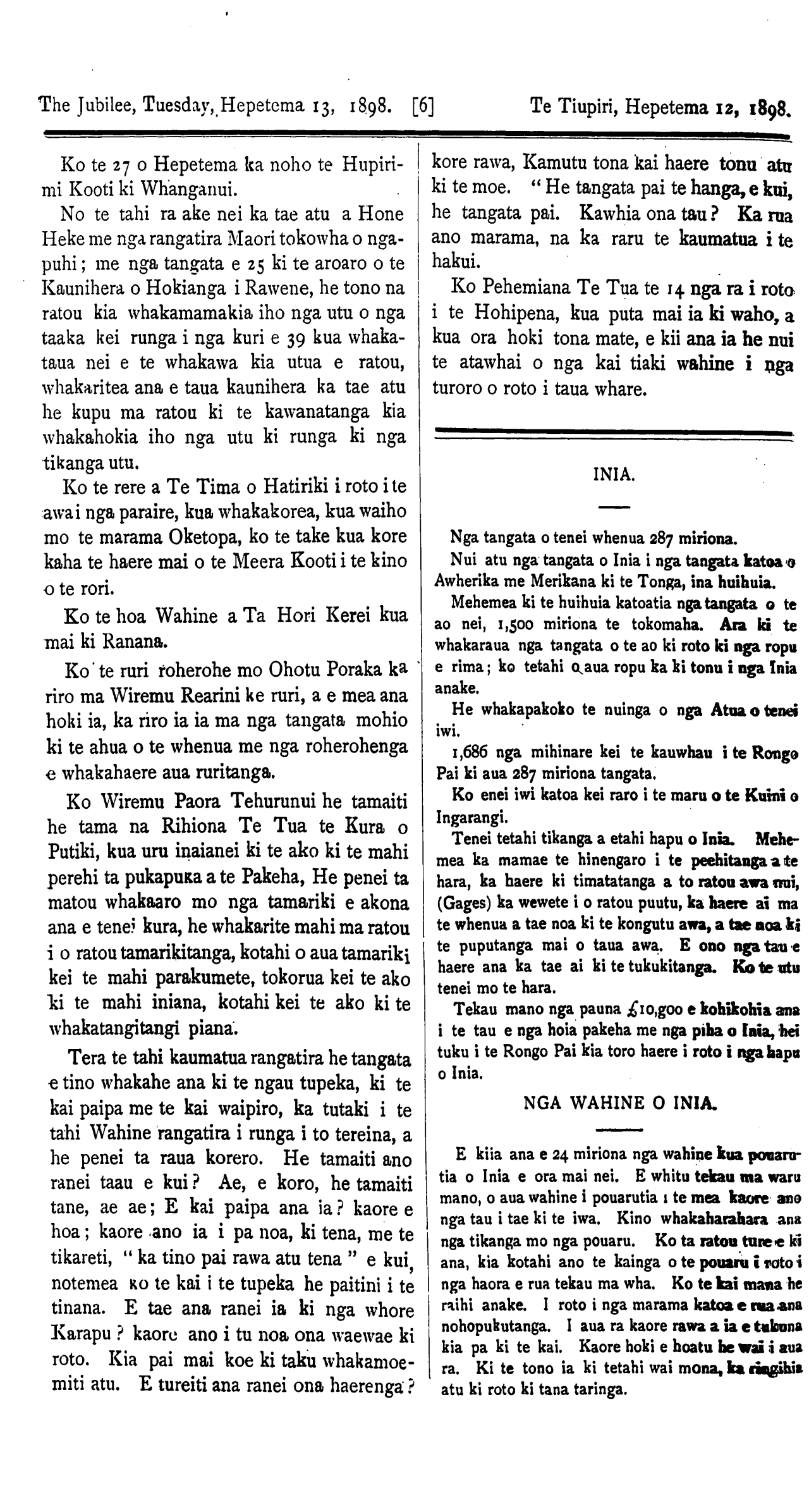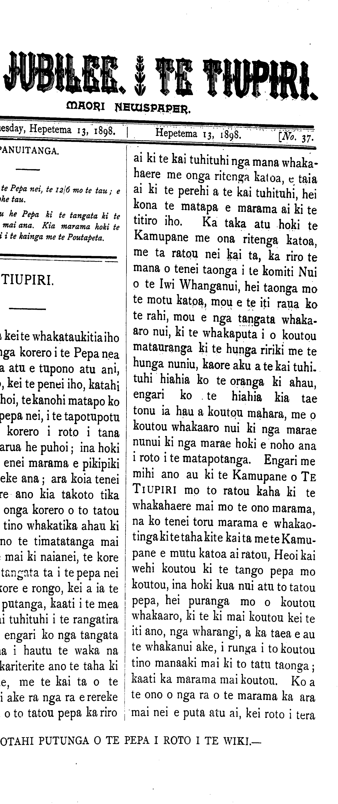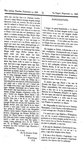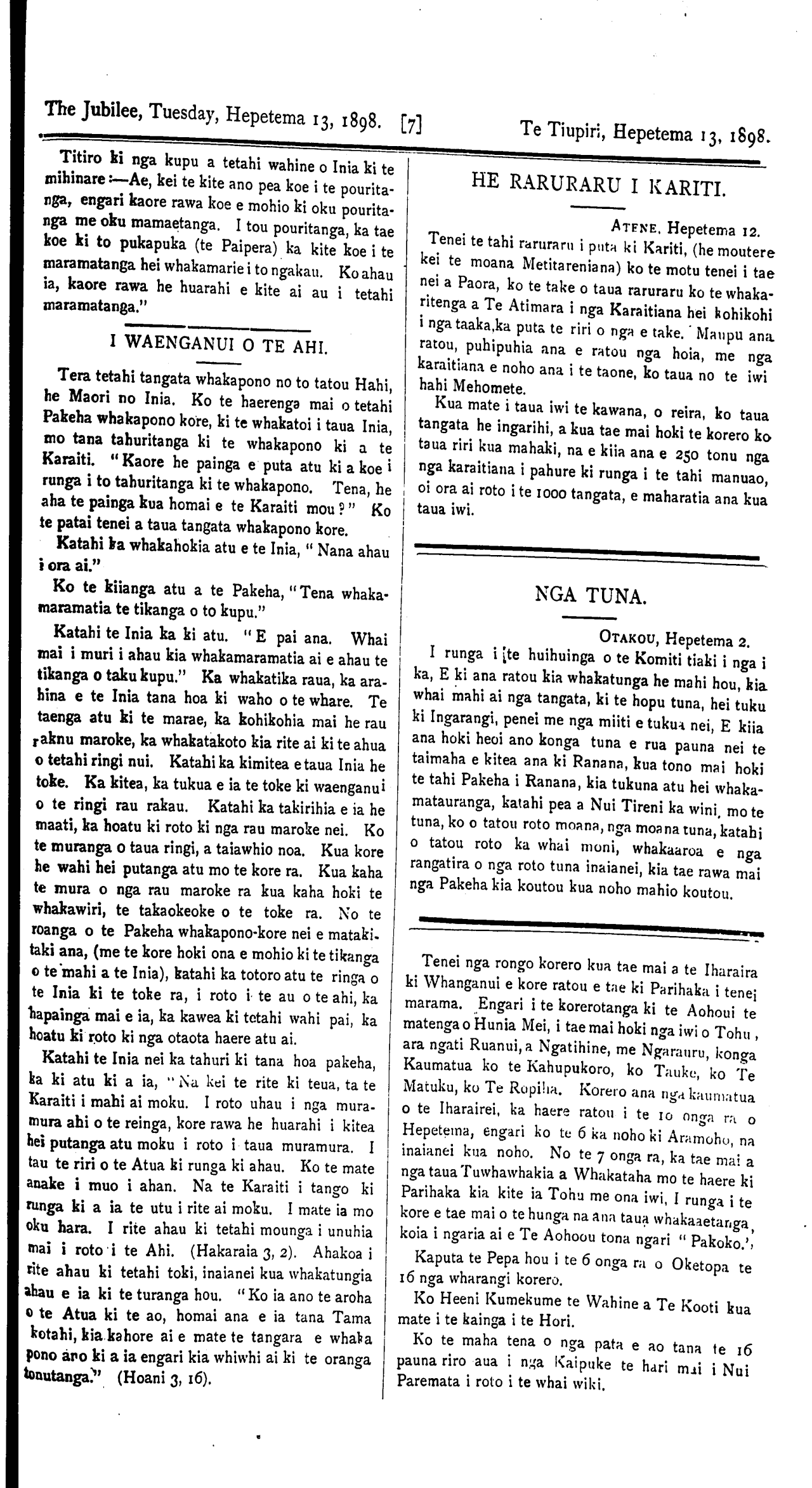 Jubilee, Tuesday, Hepetema 13, 1898. [2] Te Tiupiri, Hepetema 13, 1898.
