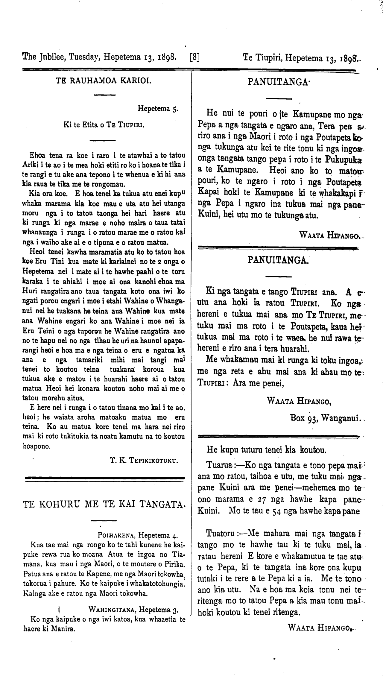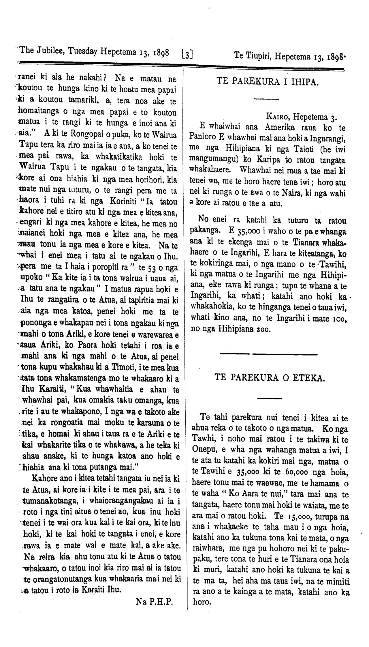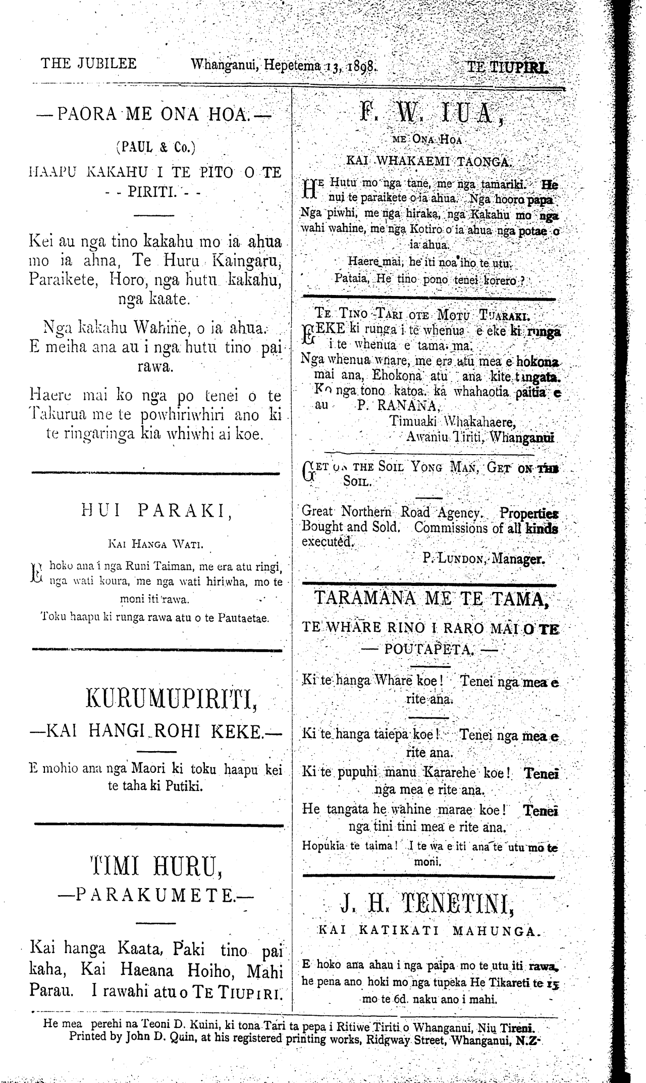 Jubilee, Tuesday, Hepetema 13, 1898. [2] Te Tiupiri, Hepetema 13, 1898.