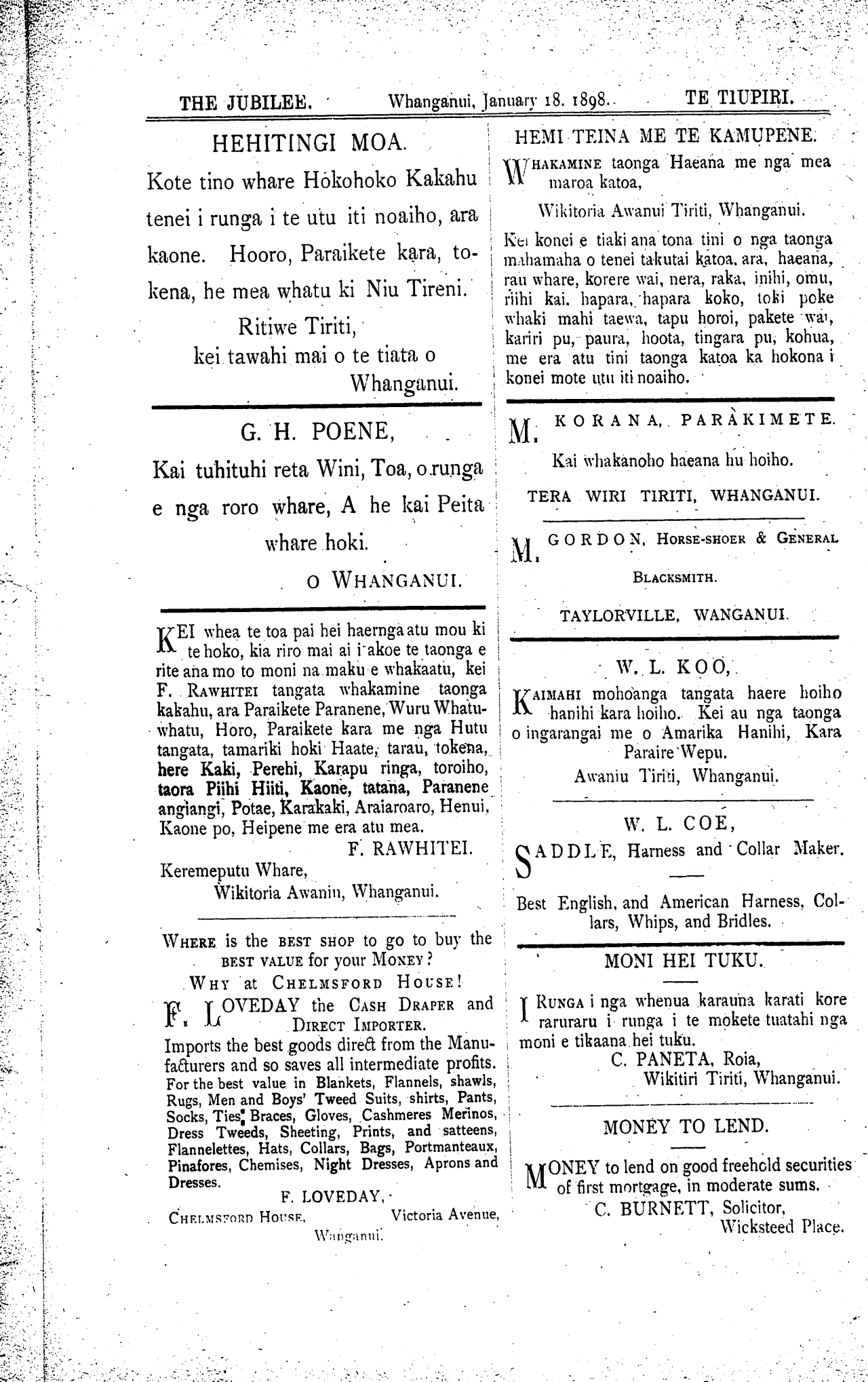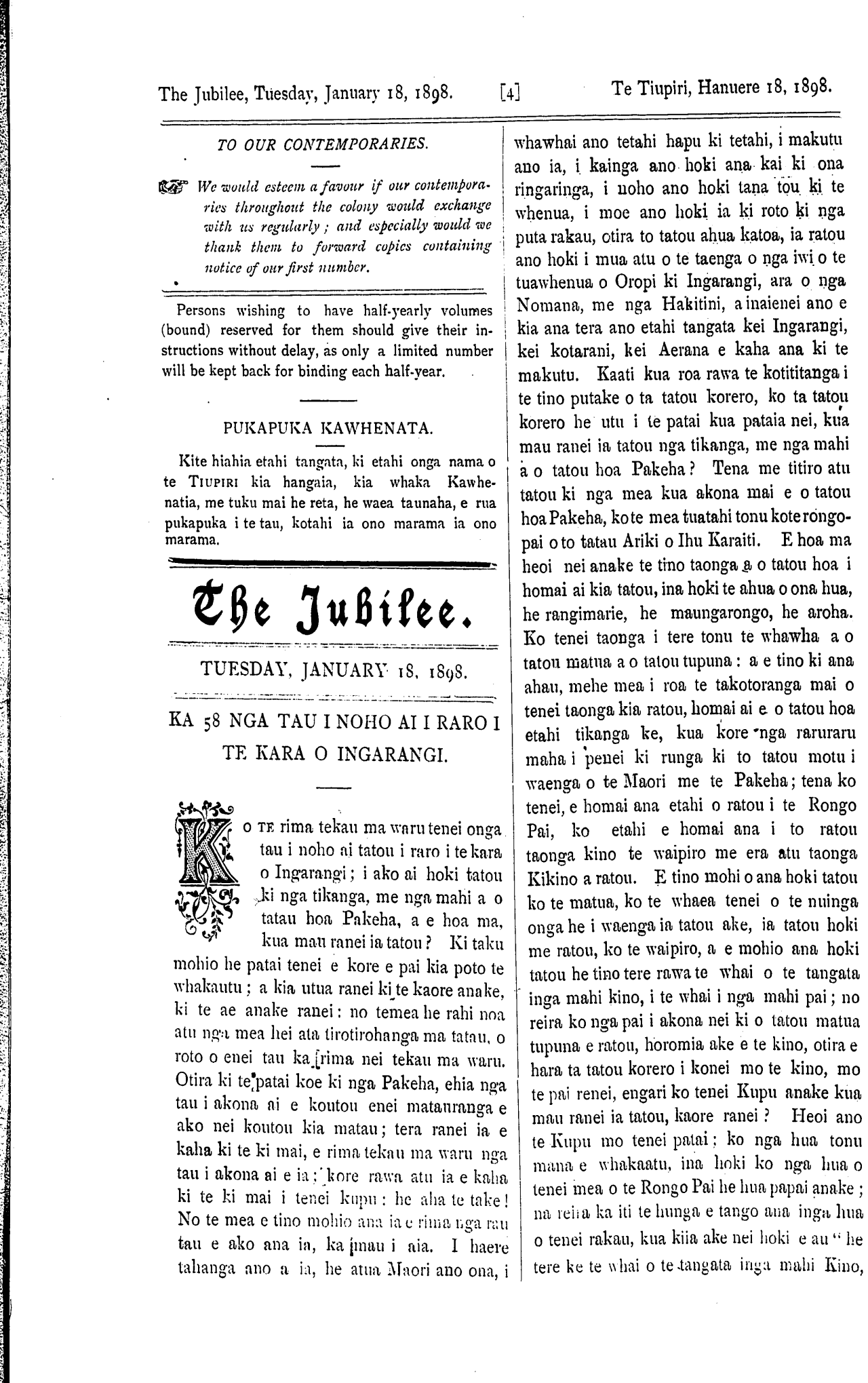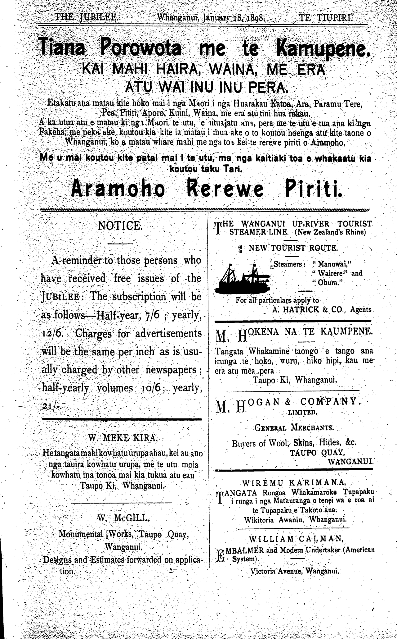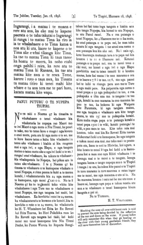 THE JUBILEE. Whanganui, January 18. 1898. TE TIUPIRI.