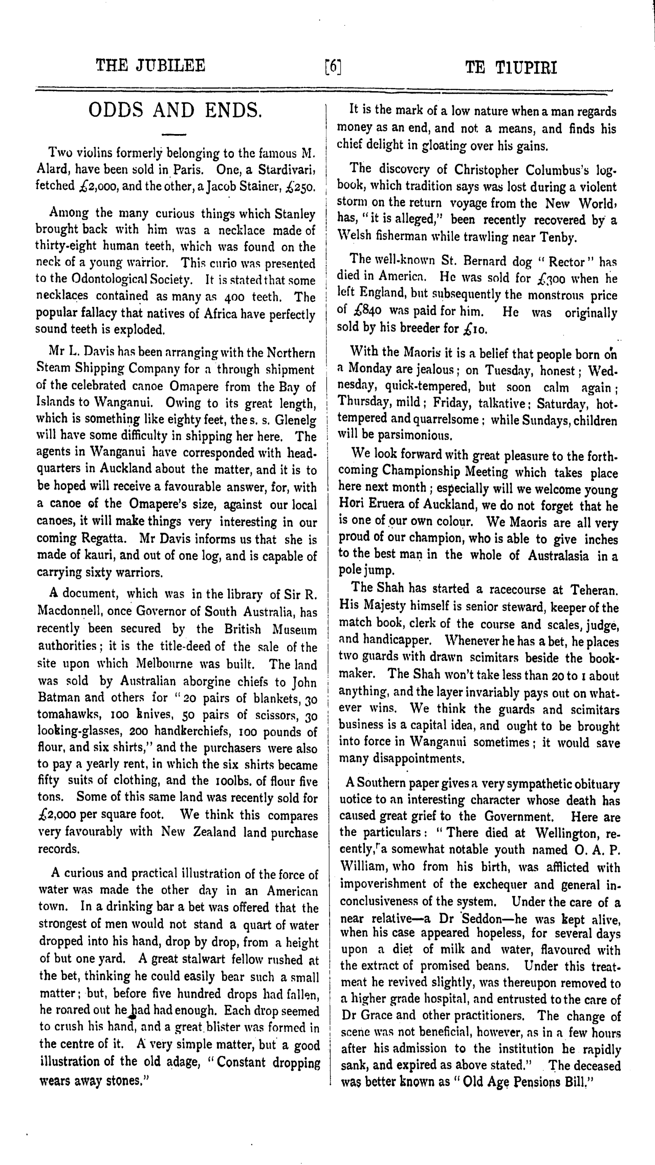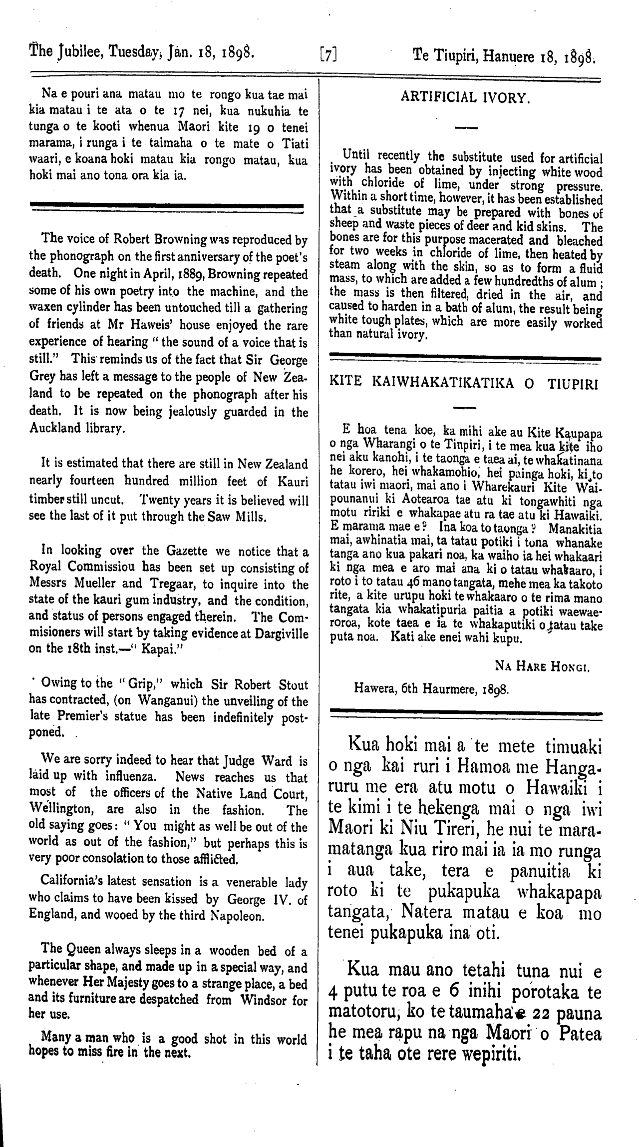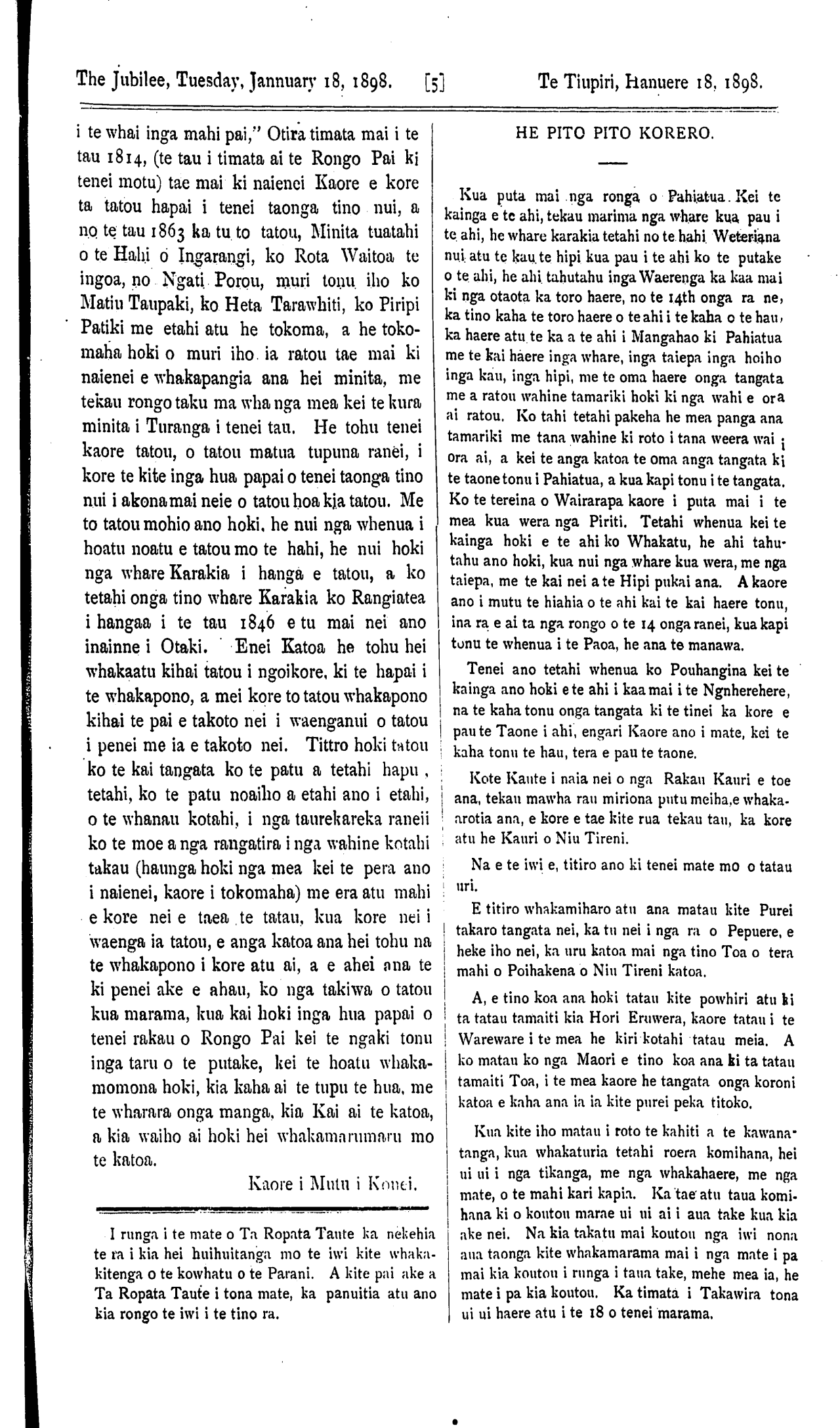 THE JUBILEE. Whanganui, January 18. 1898. TE TIUPIRI.