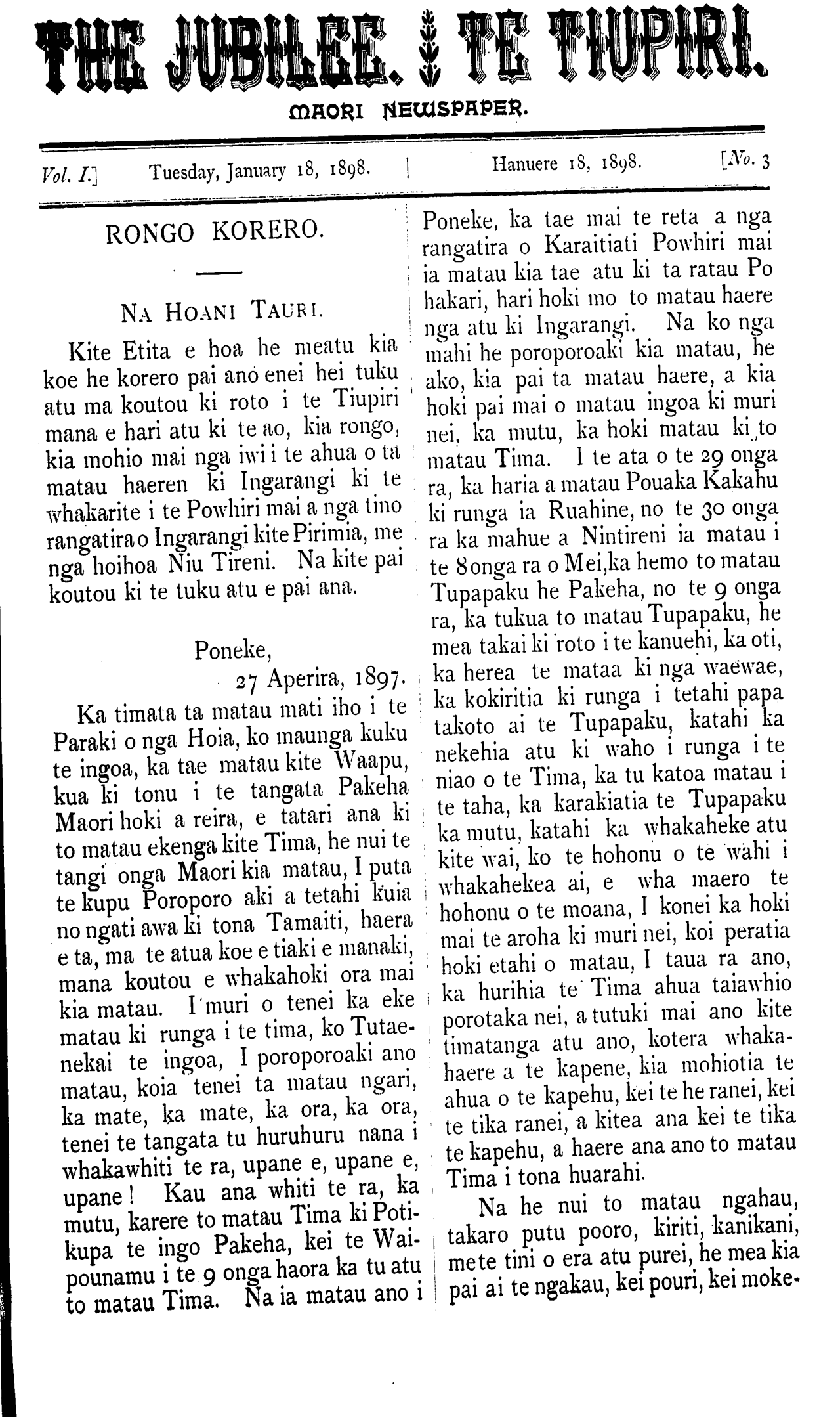 Te Tiupiri 1898-1900: Volume 1, Number 3. 18 January 1898 |