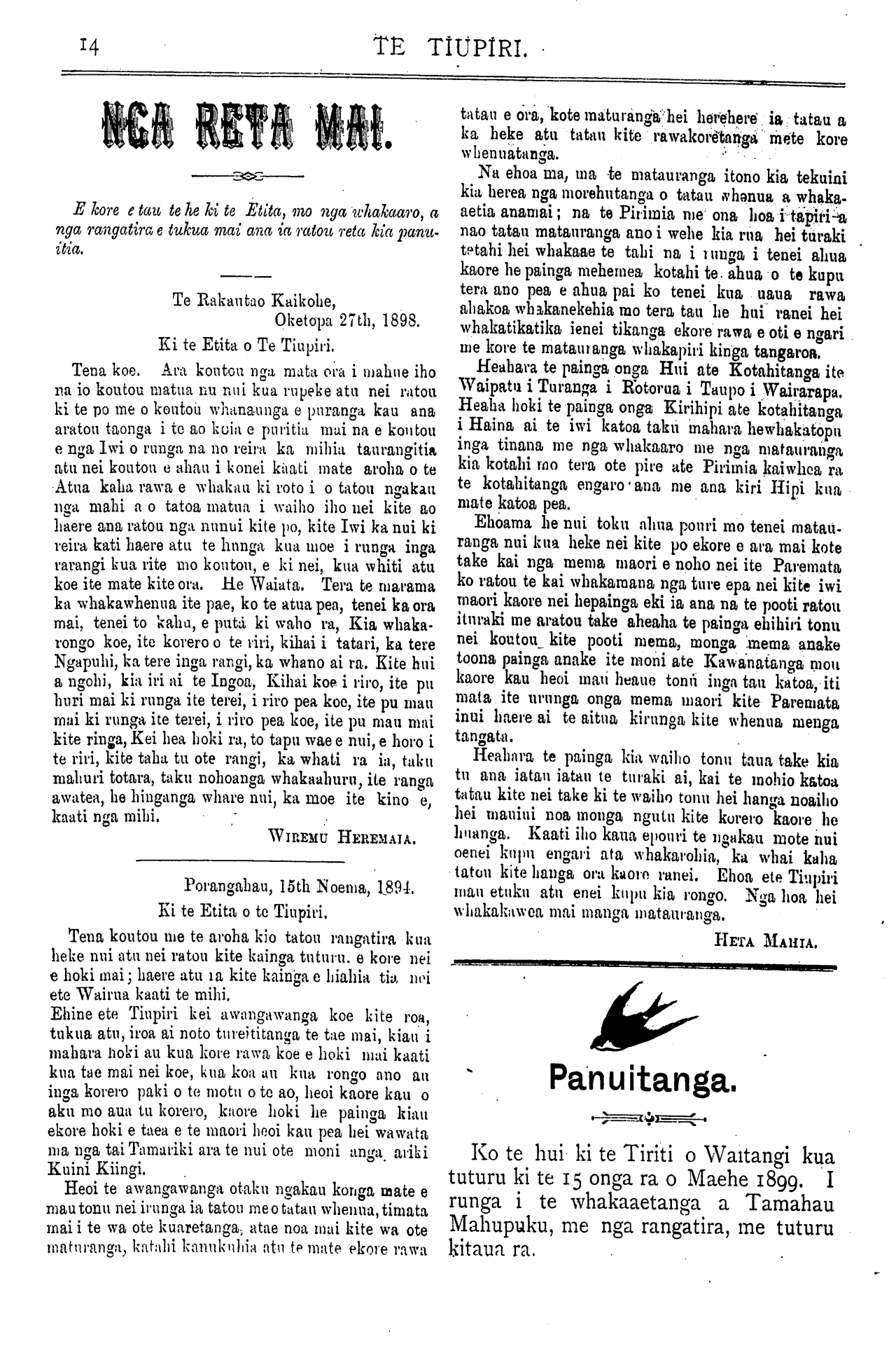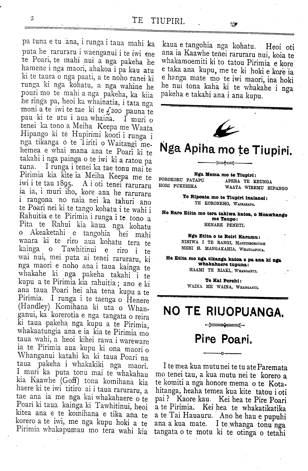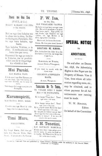 Te Tiupiri 1898-1900: Volume 1, Number 44. 08 December 1898 |
