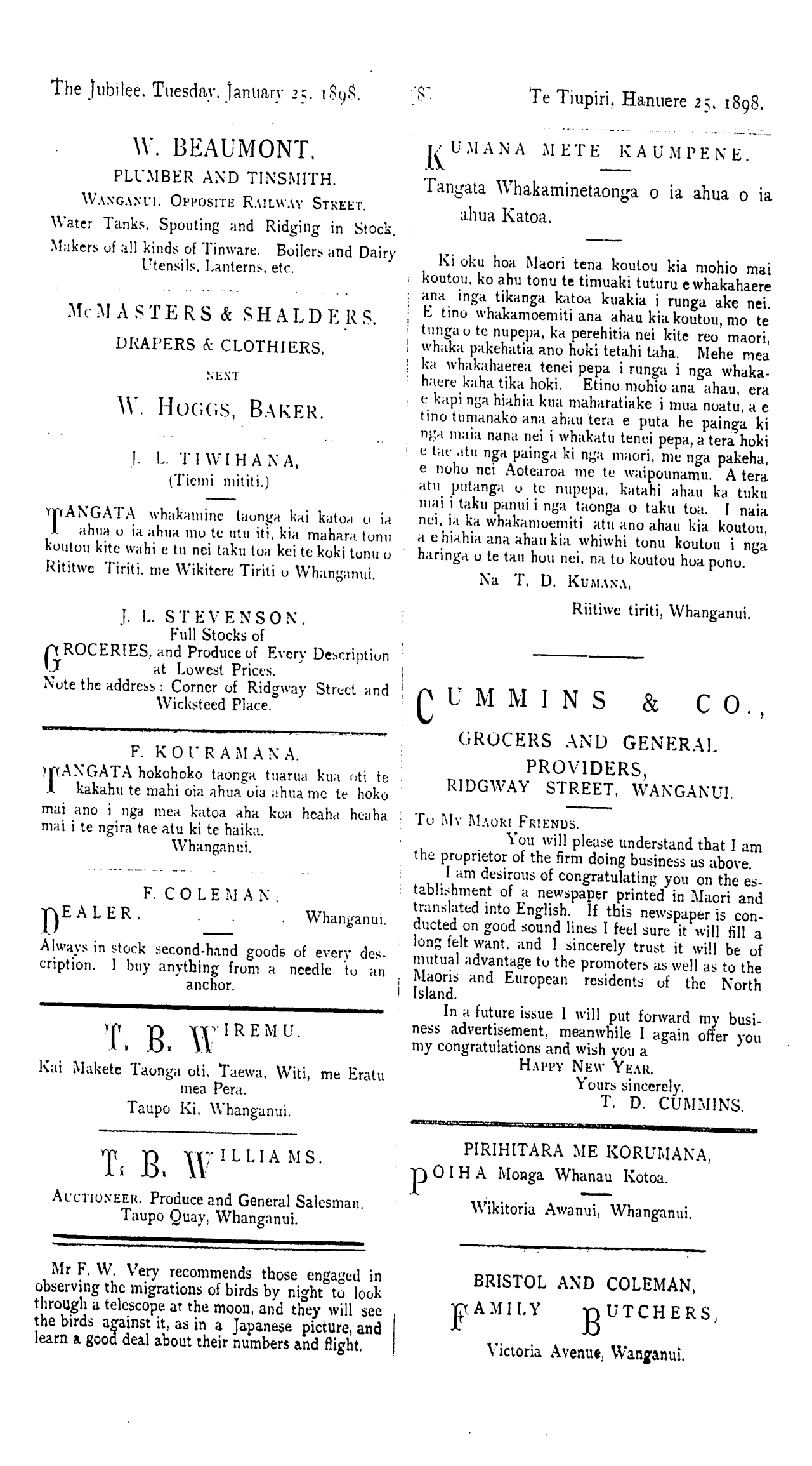 JANUARY 25 1898. WHANGANUI. HANUARE 25, 1898.