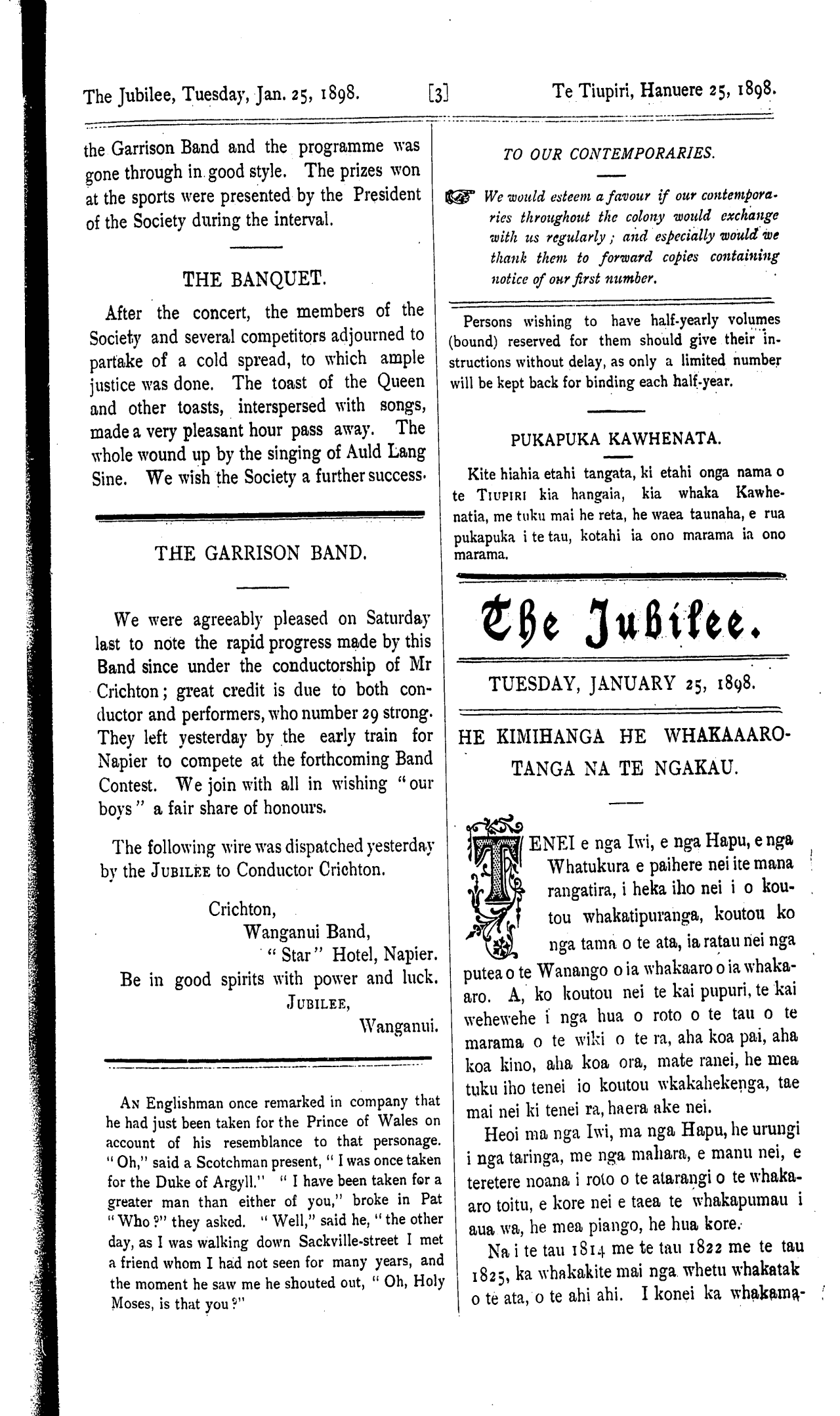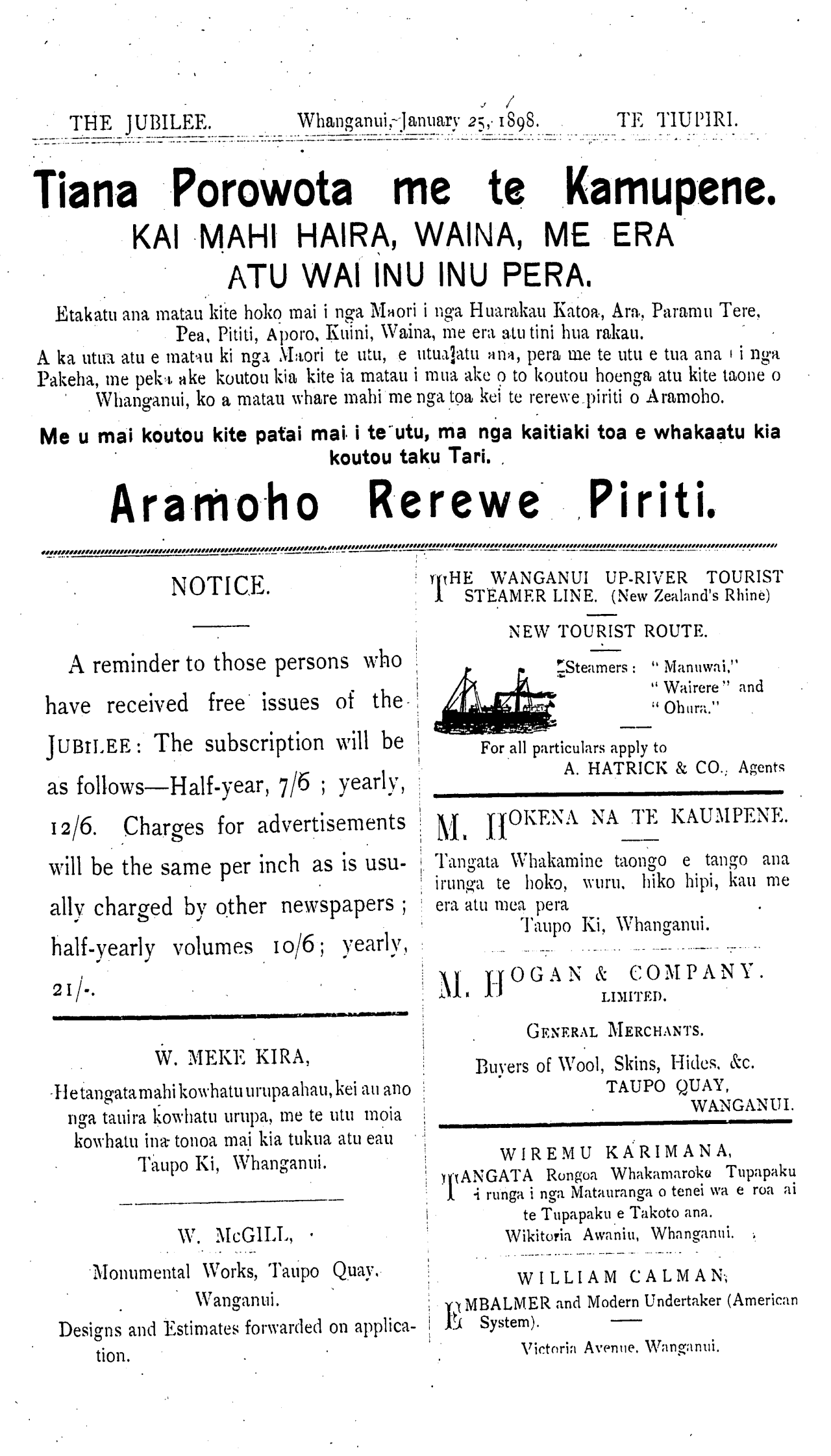 THE JUBILEE. Whanganui, January 25 1898, TE TIUPIRI.