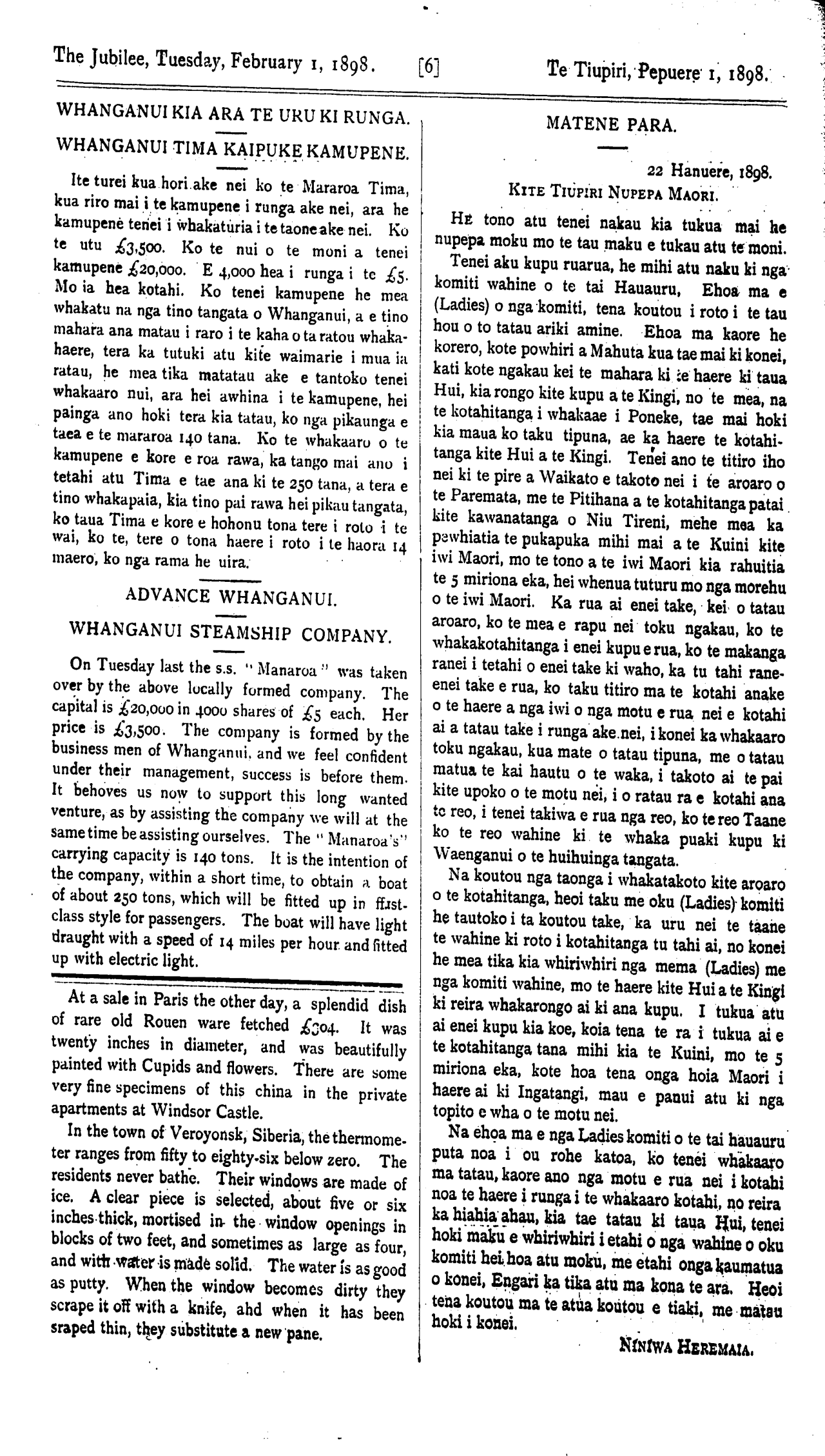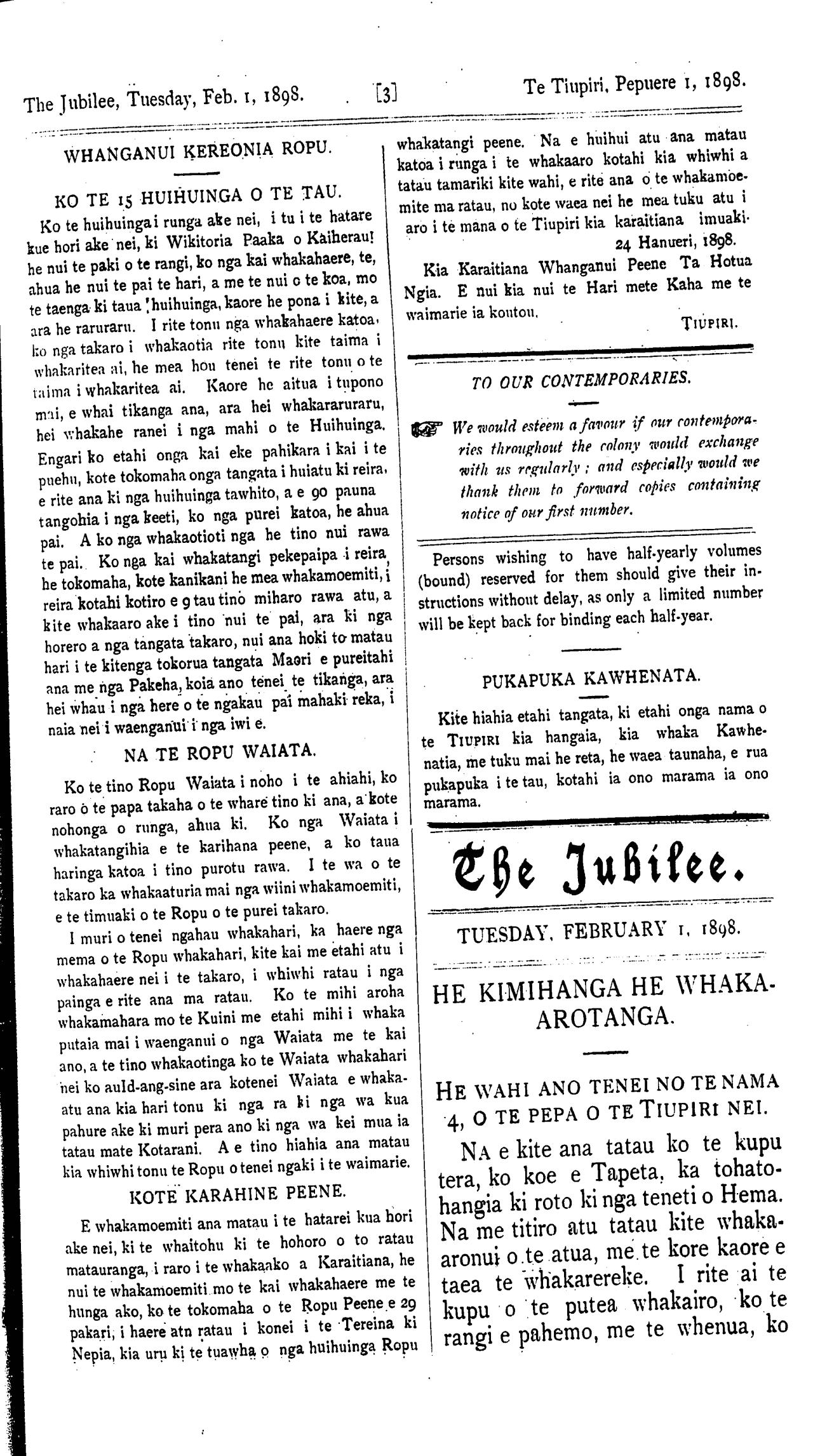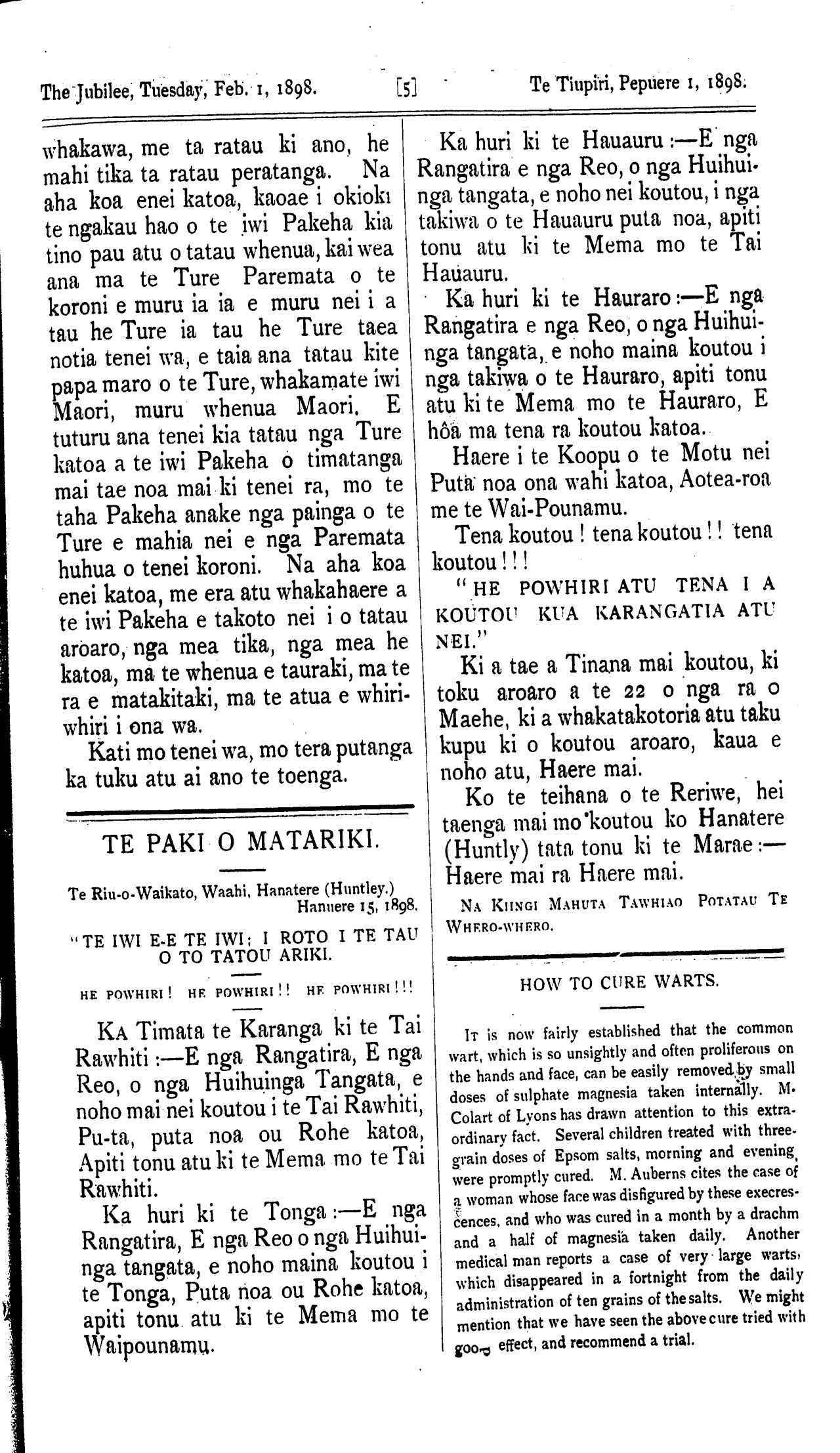 Vol. 1 ] Tuesday, February 1, 1898 Pepuere 1, 1898. [No. 5