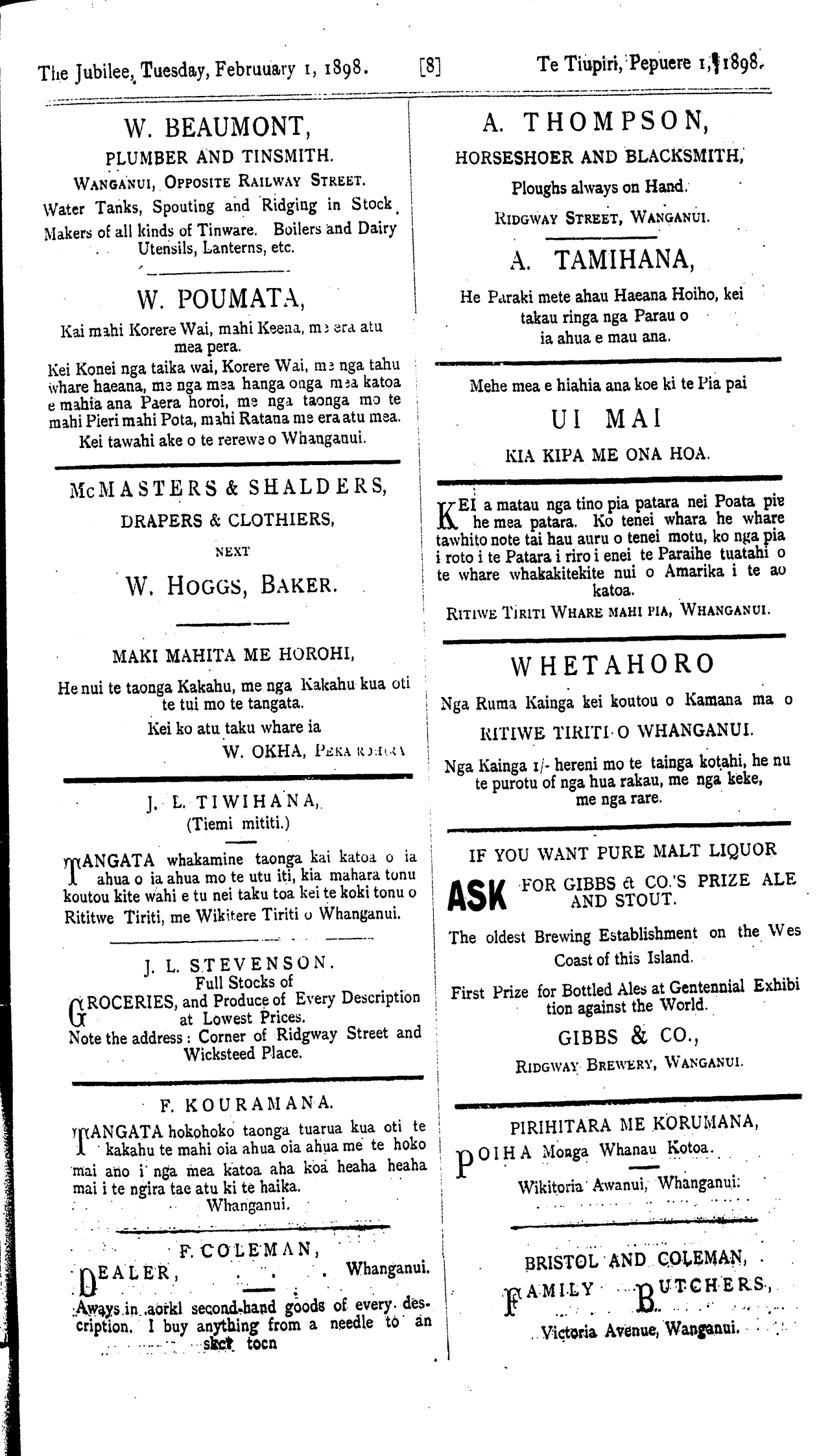 Te Tiupiri 1898-1900: Volume 1, Number 5. 01 February 1898 |