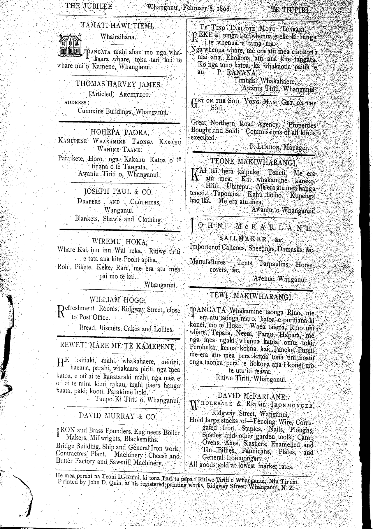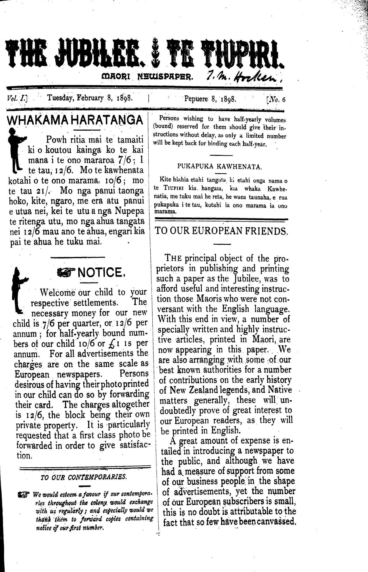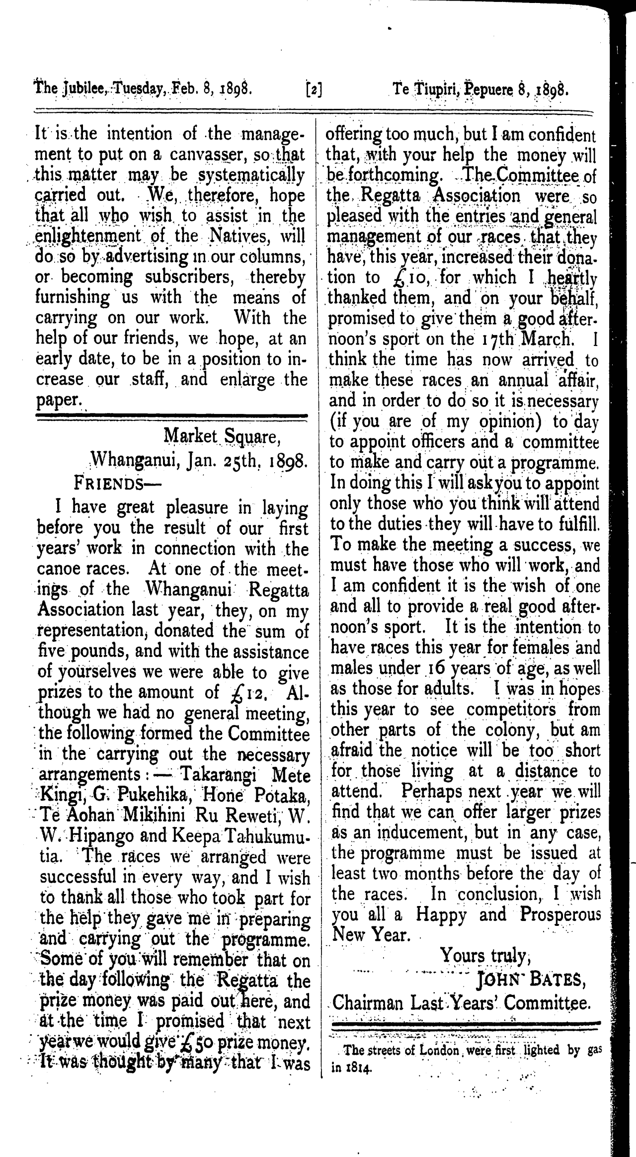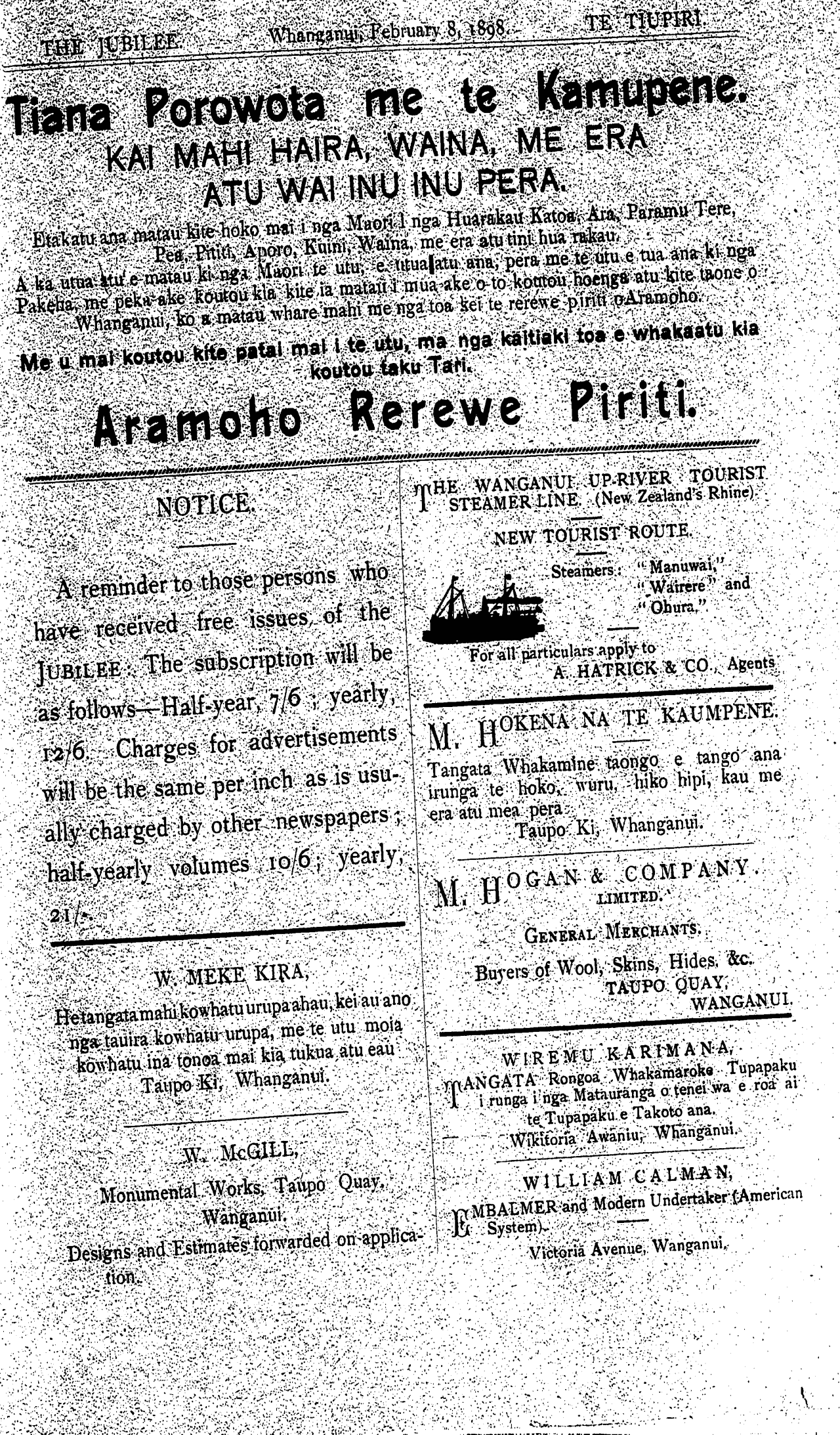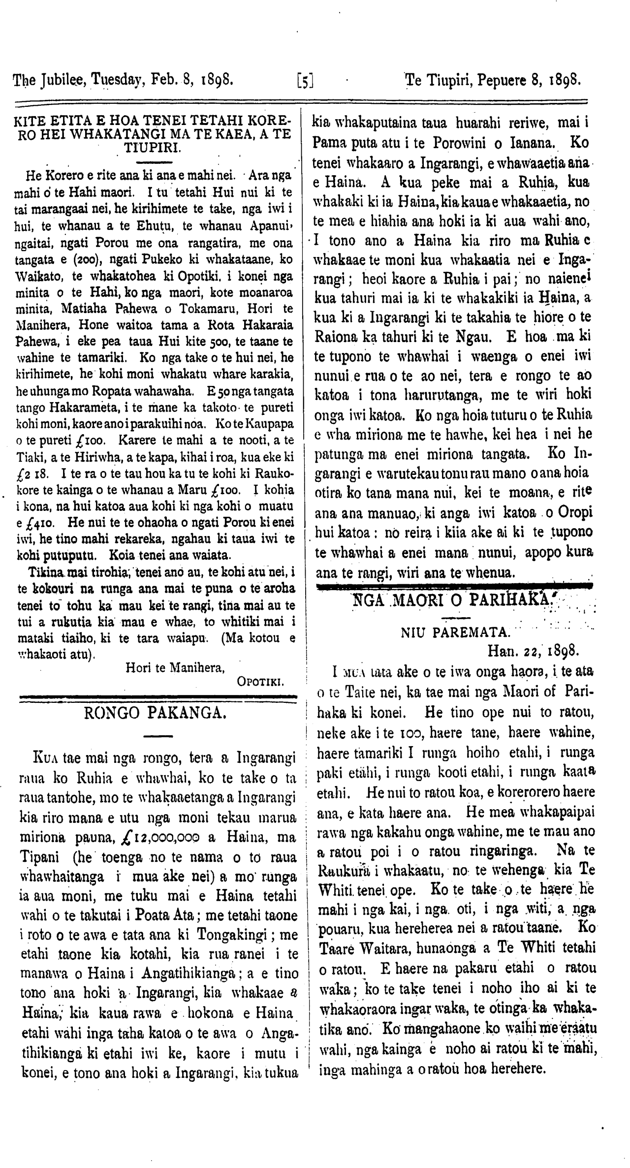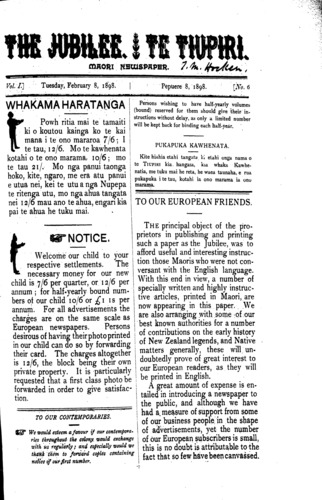 the Jubilee,: Tuesday, Feb. 8, 1898. [2] Te Tiupiri, Pepuere 8, 1898.