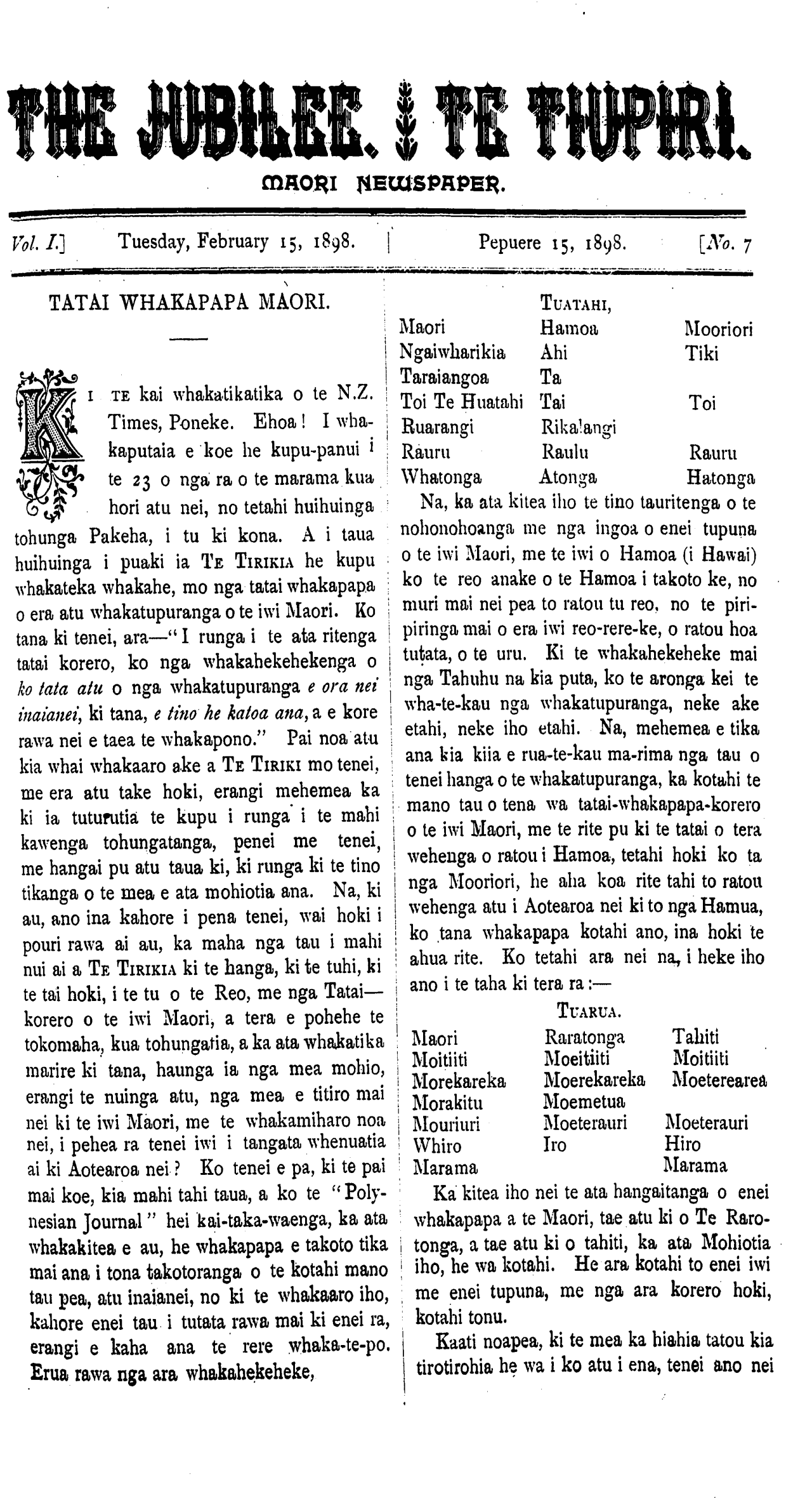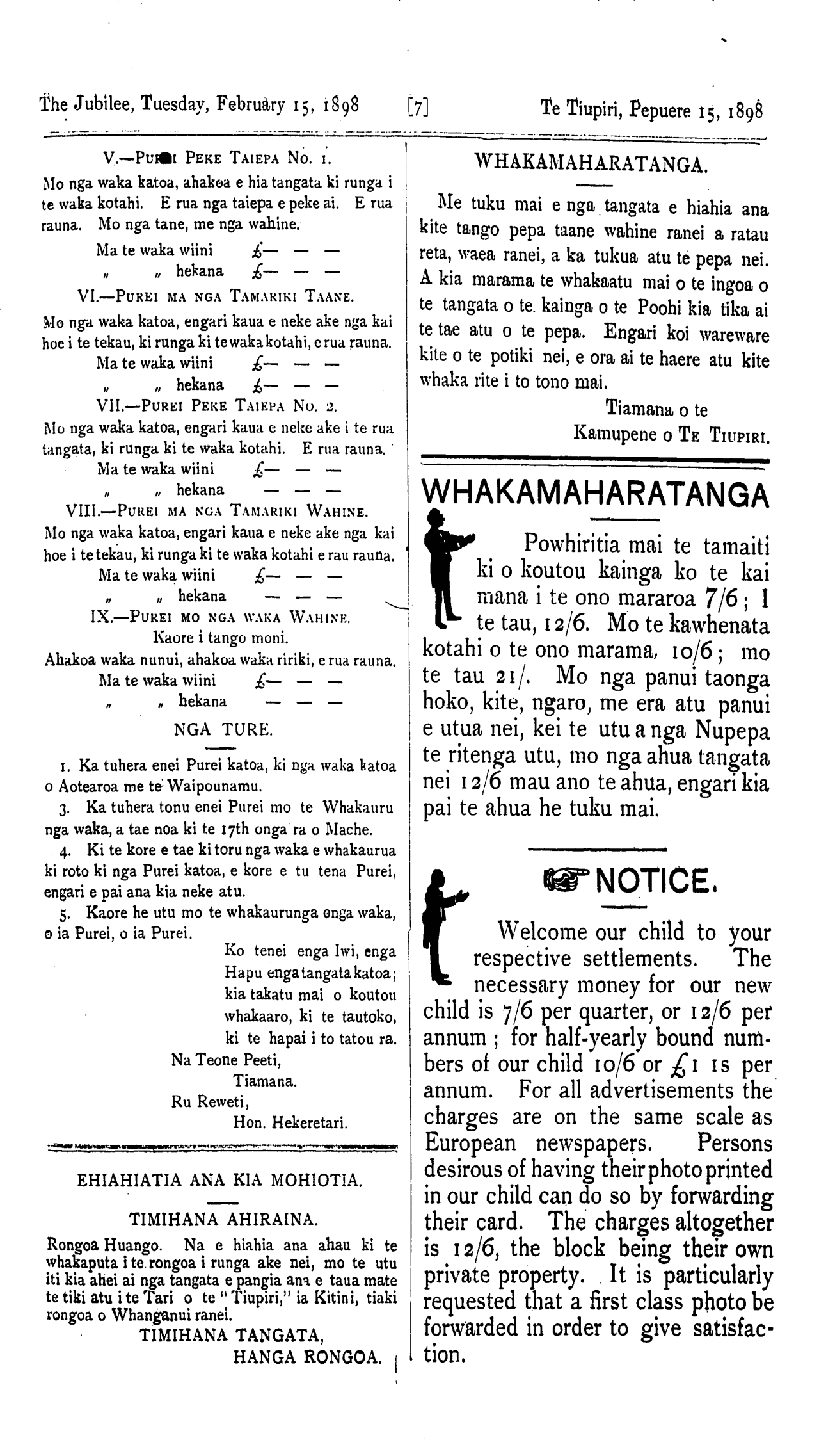 Te Tiupiri 1898-1900: Volume 1, Number 7. 15 February 1898 |