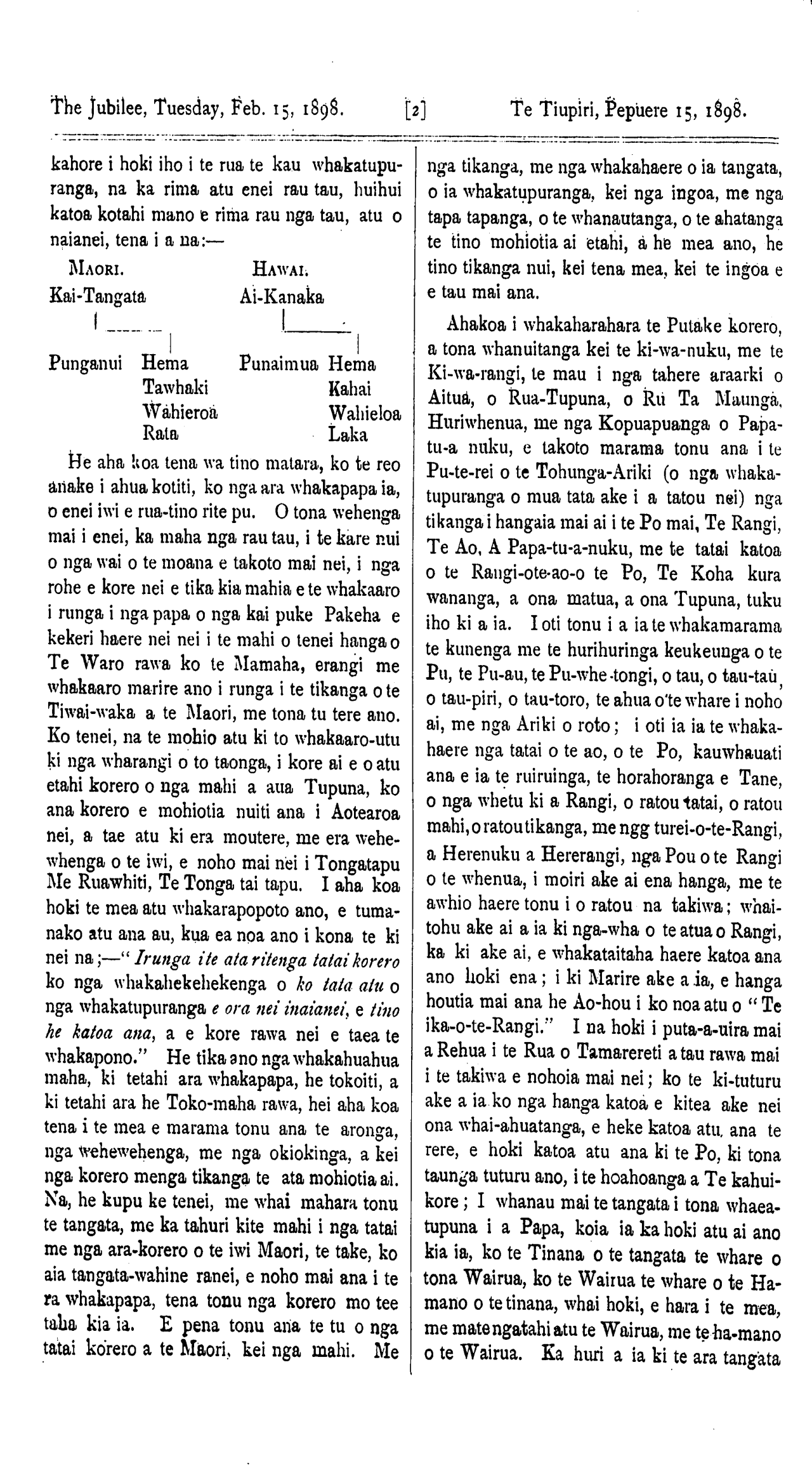 te tai hoki, i te tu o te Reo, me nga Tatai—
