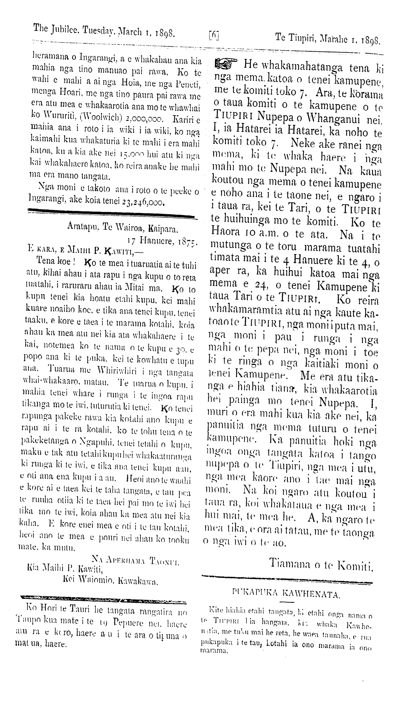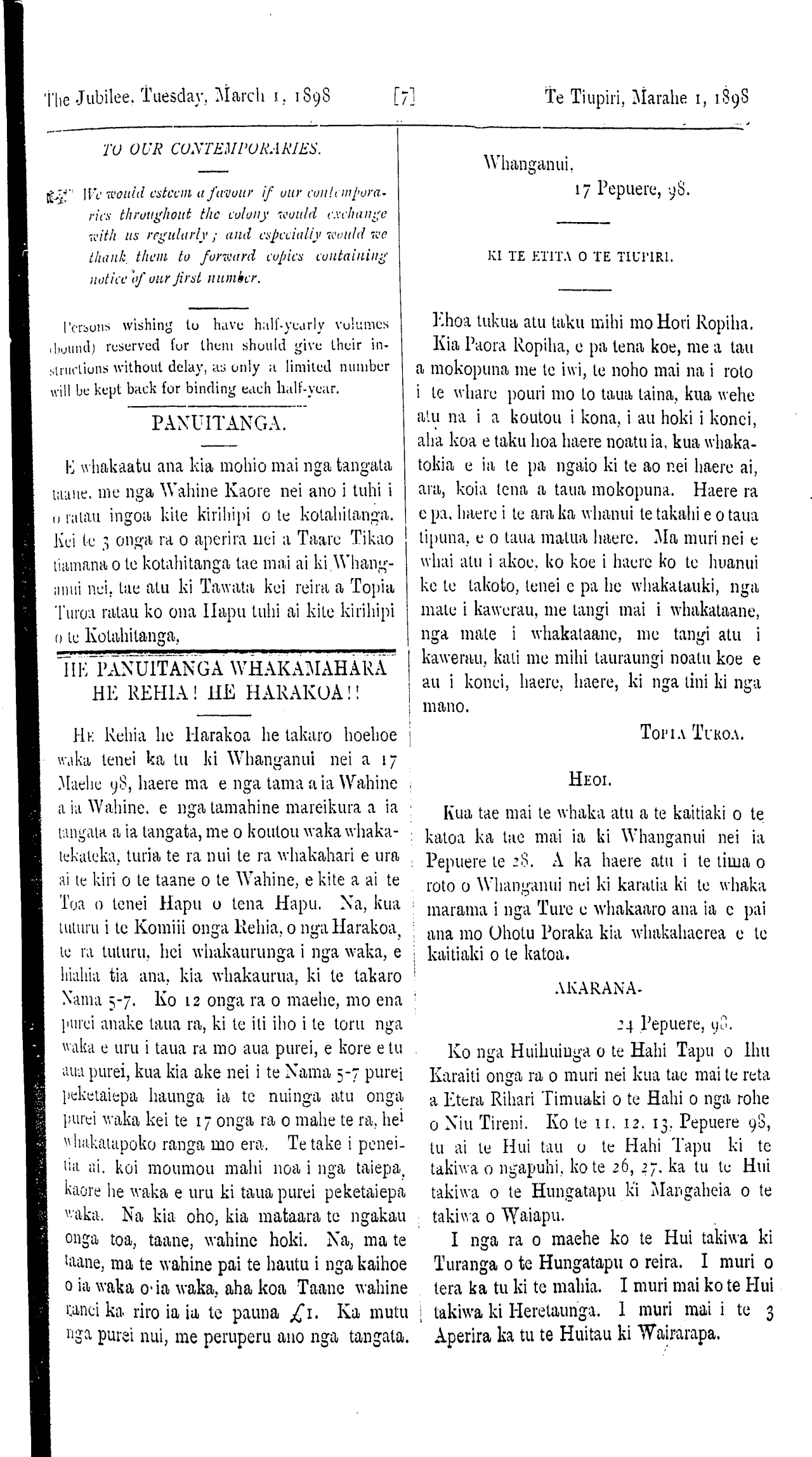 MARCH 1, 1898. WHANGANUI MAREHE 1. 1898.