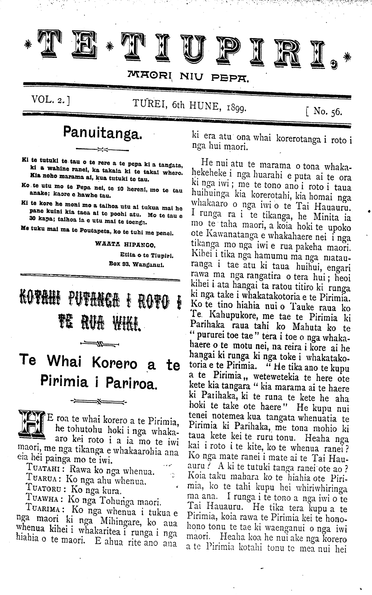 Te Tiupiri 1898-1900: Volume 2, Number 56. 06 June 1899 |
