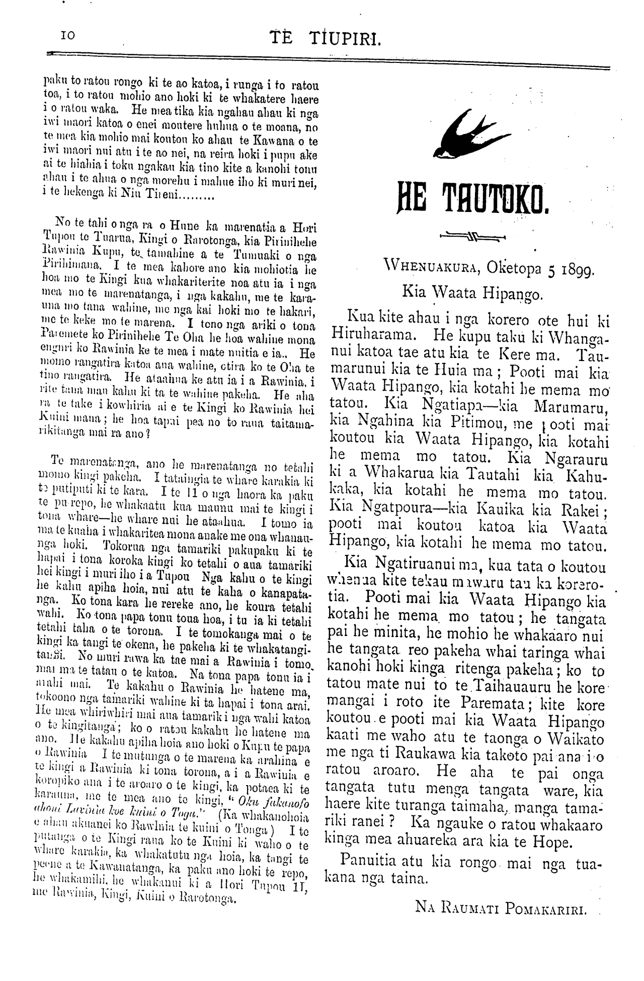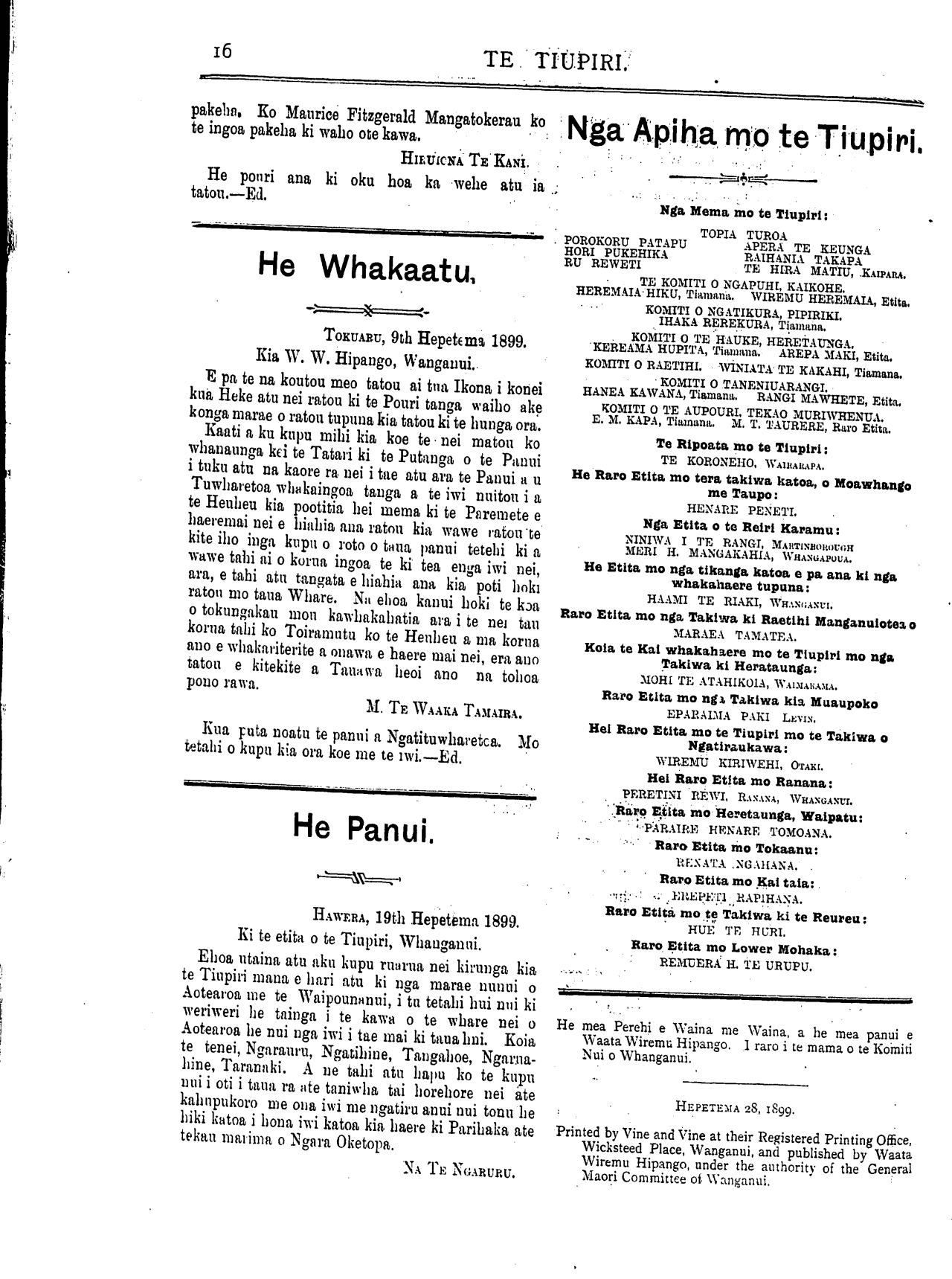 Te Tiupiri 1898-1900: Volume 2, Number 62. 28 September 1899 |