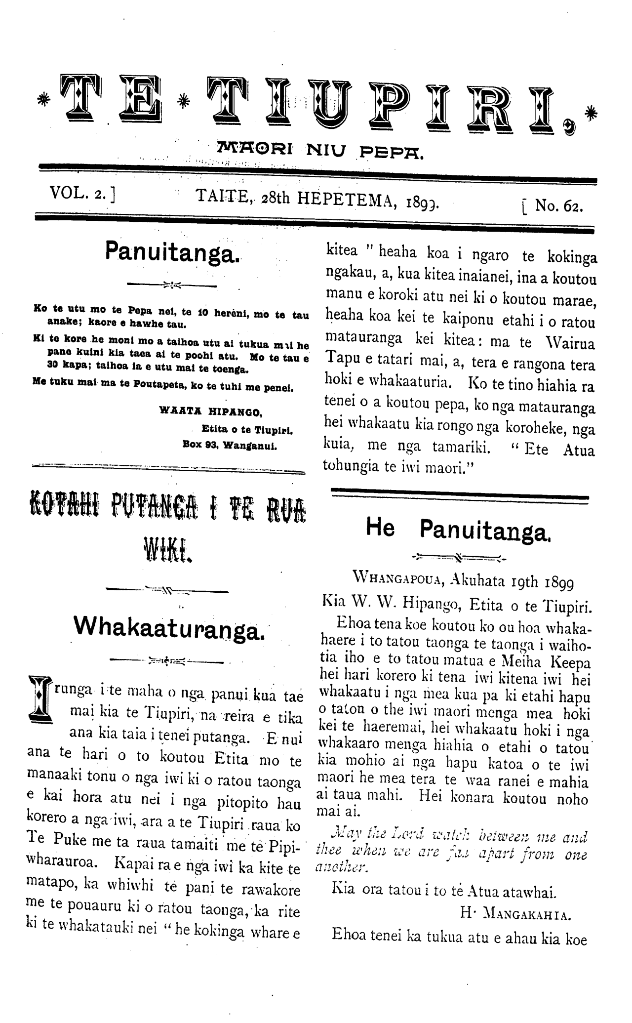 VOL. 2. ] TAITE, 28th HEPETEMA, 1893. [ No. 62.