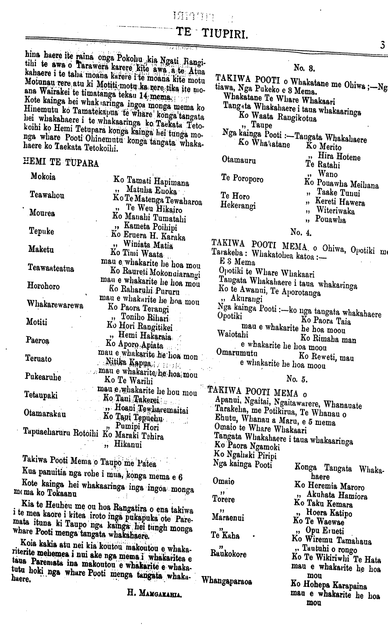 HEREMAIA HIKU, Tiamana. WIREMU HEREMAIA, Etita.
