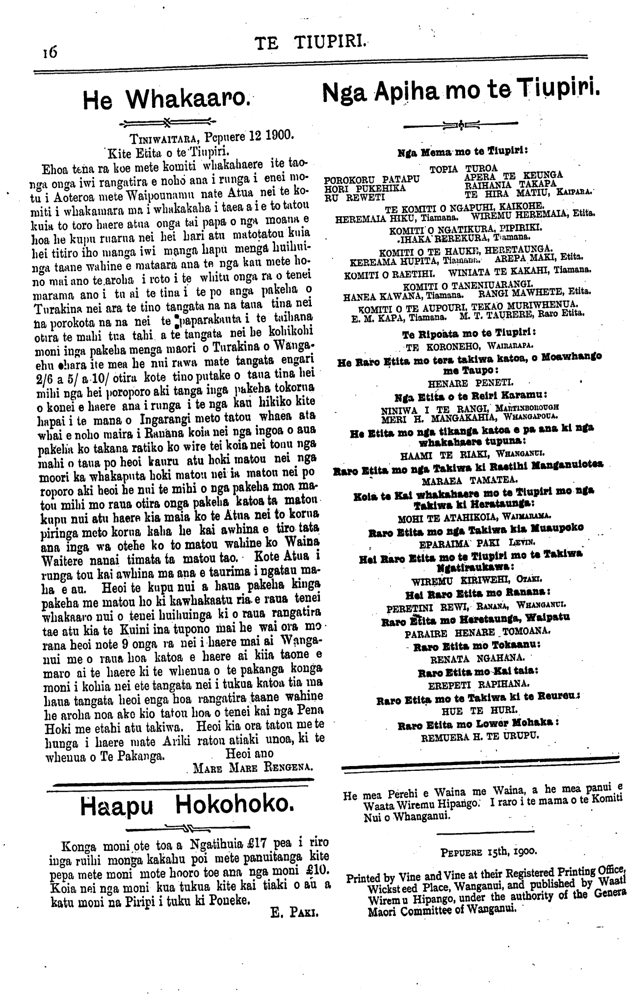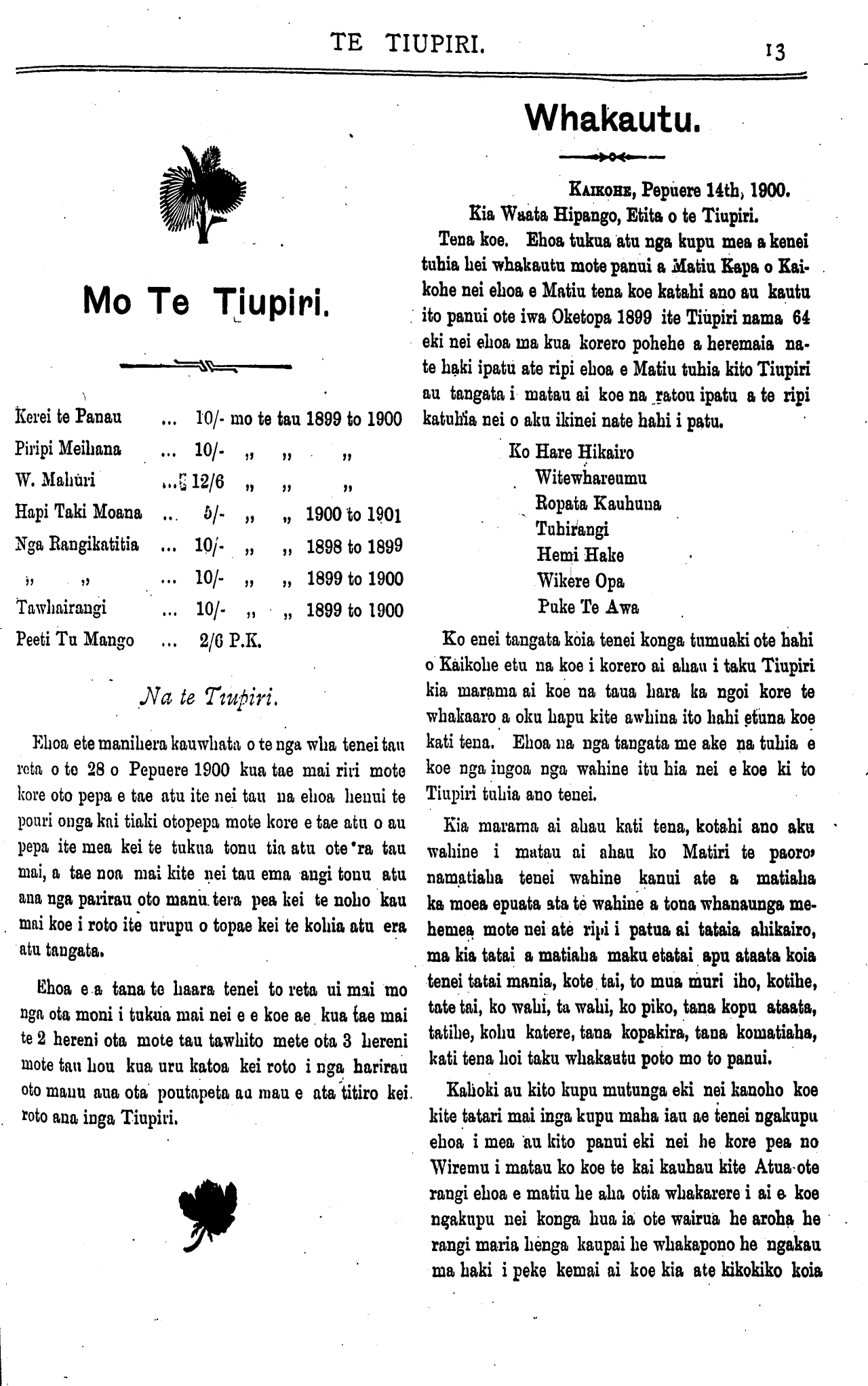 Te Tiupiri 1898-1900: Volume 3, Number 72. 16 February 1900 |