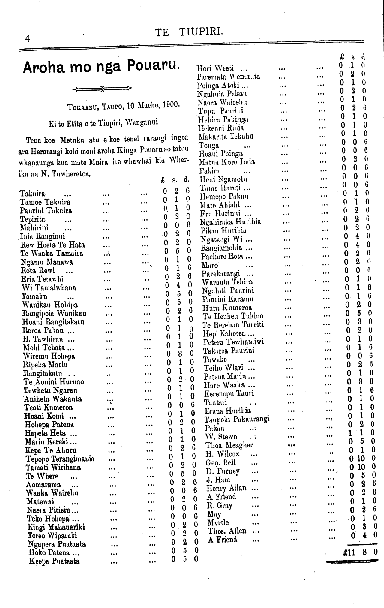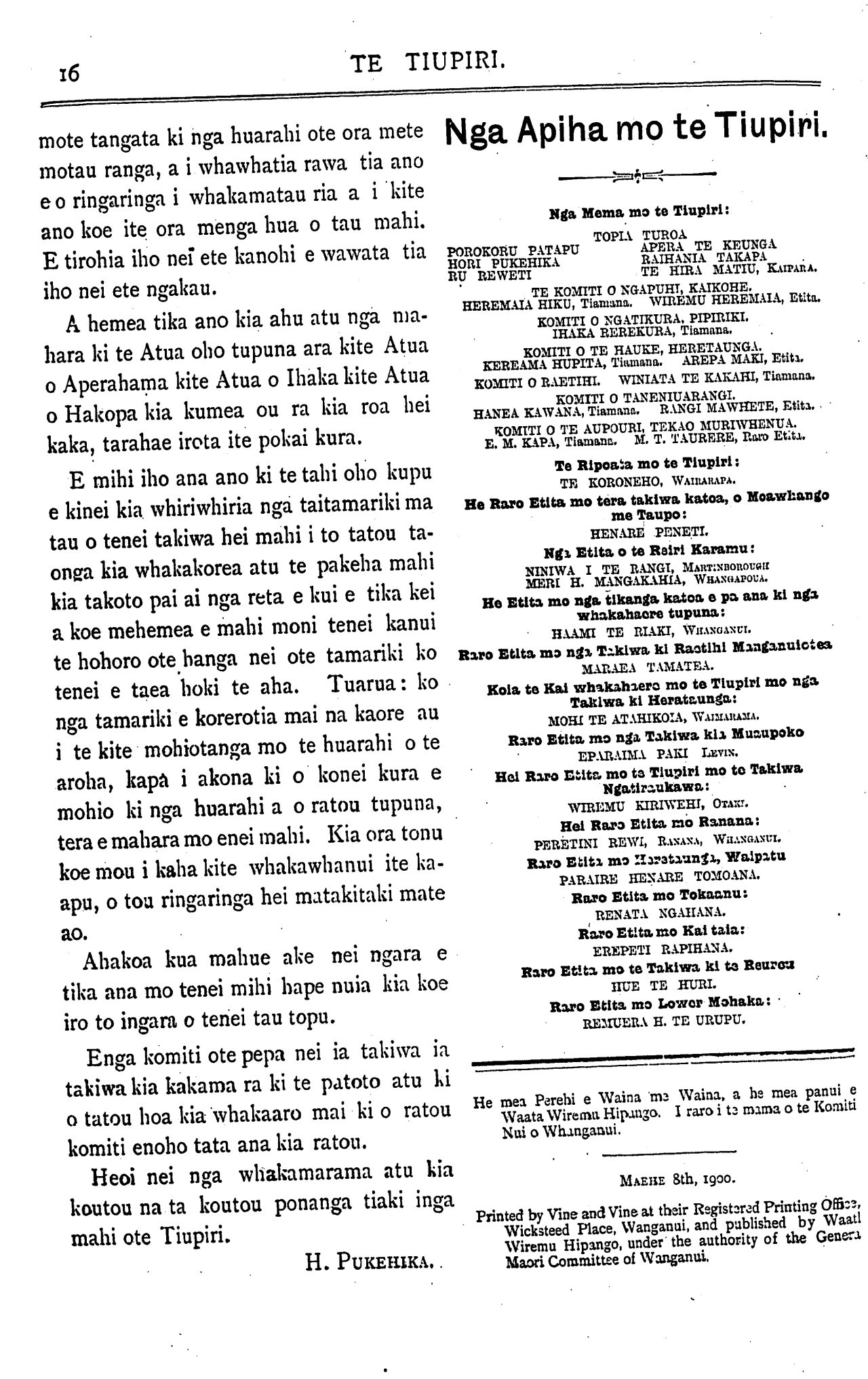 HEREMAIA HIKU, Tiamana. WIREMU HEREMAIA, Etita.