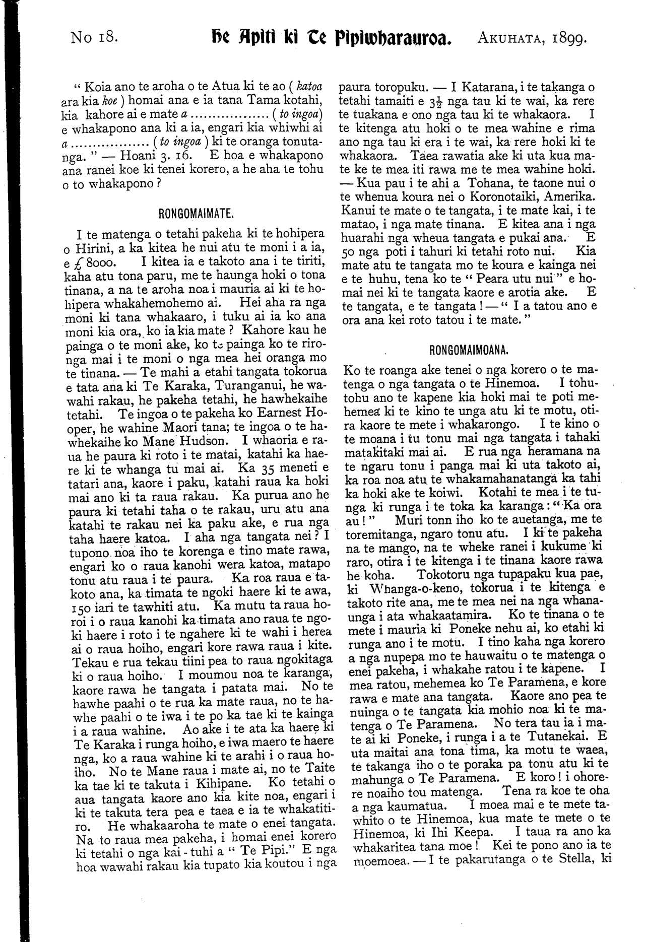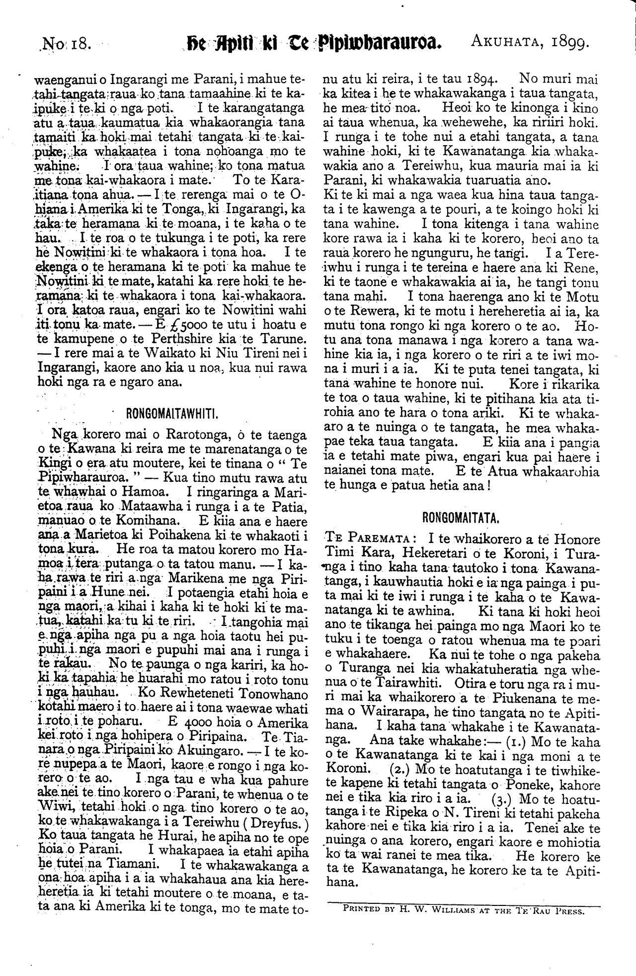 He Kupu Whakamarama 1898: Number 18. 01 August 1899 |