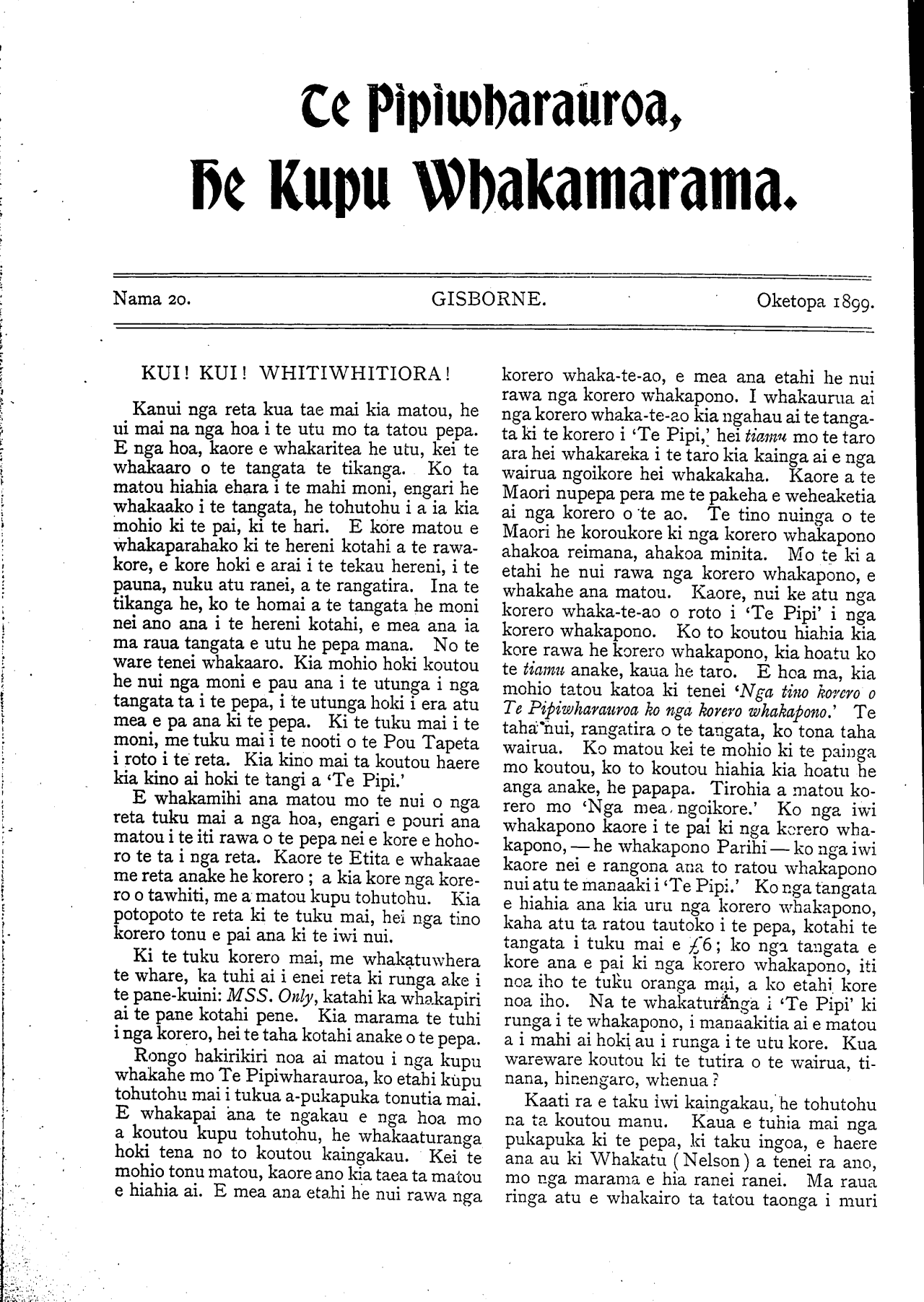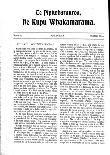 He Kupu Whakamarama 1898: Number 20. 01 October 1899