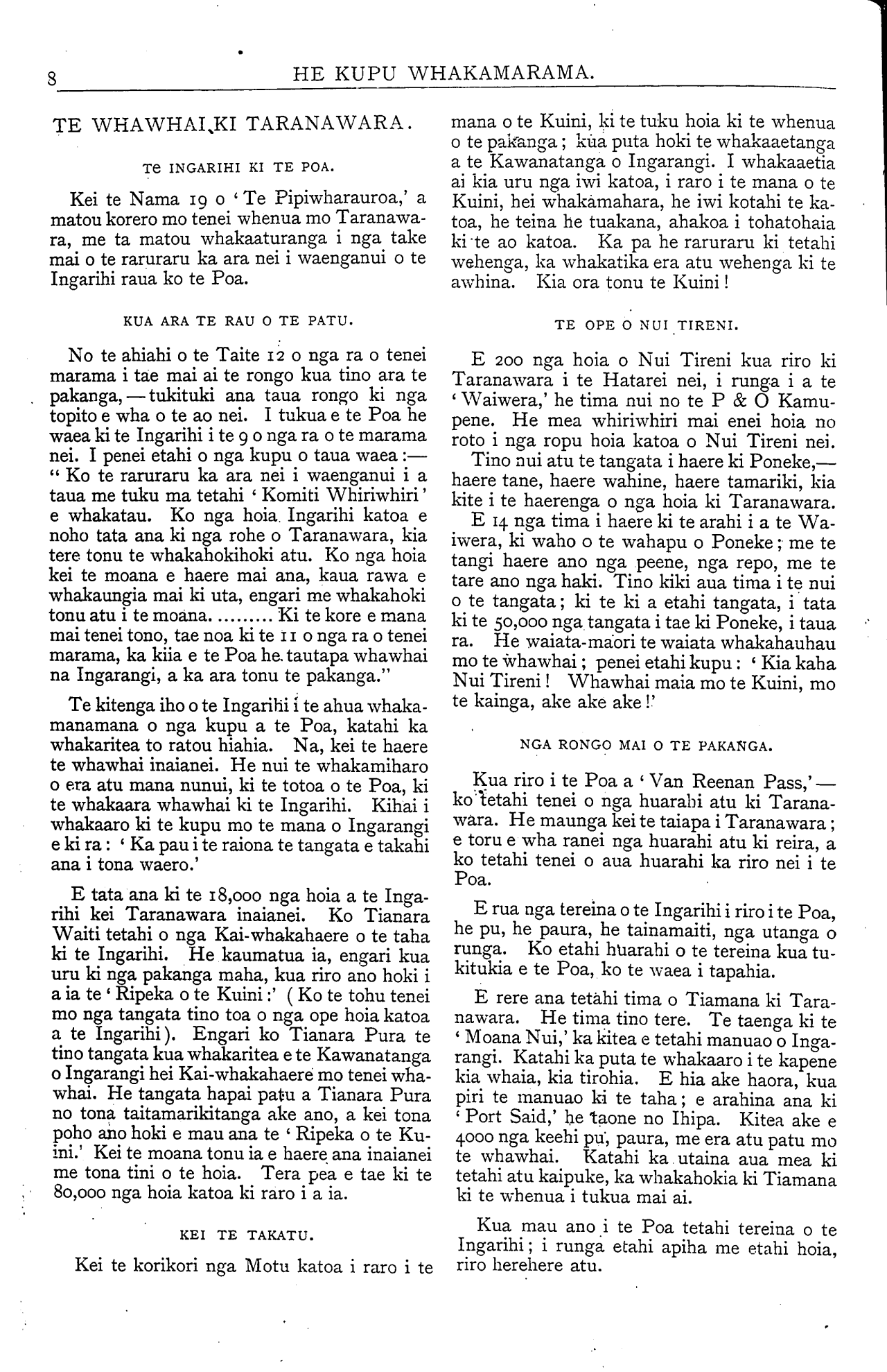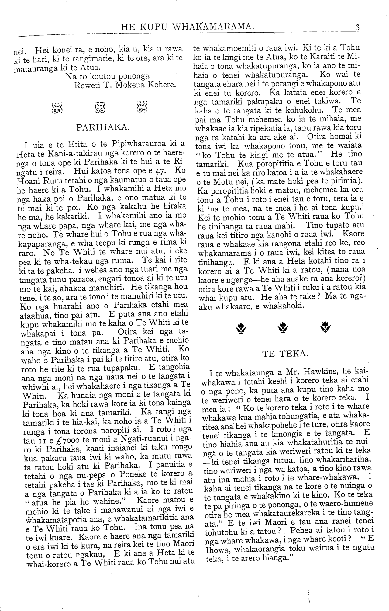 e Te Whiti raua ko Tohu.  Ina tonu pea na