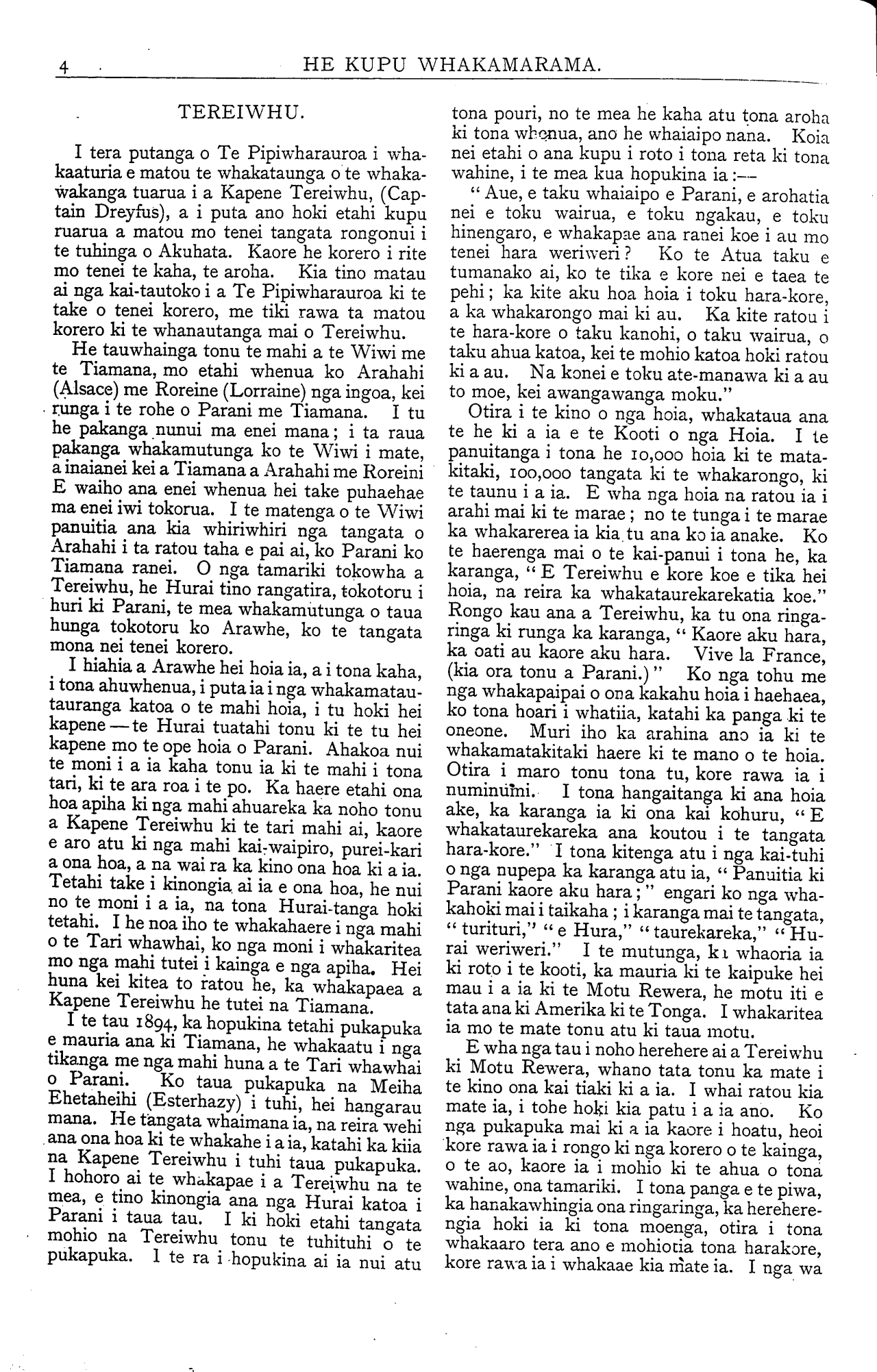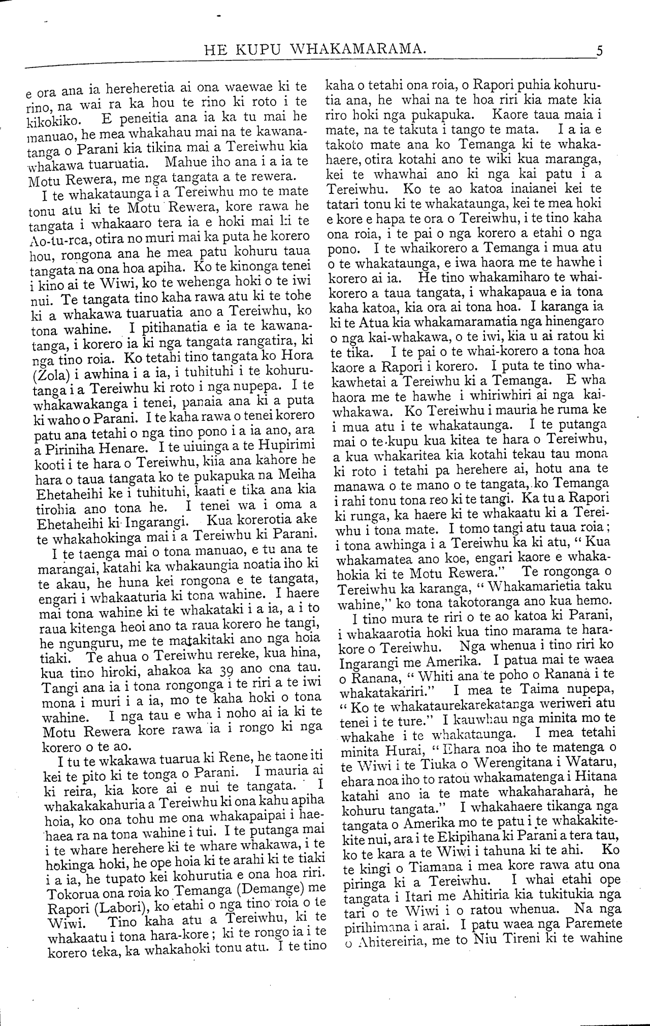 tetahi, no te tai ki-te-tonga tetahi. Ka wha-