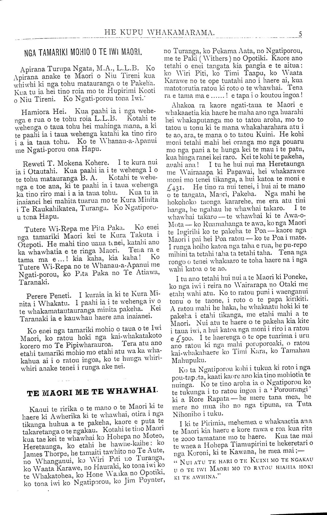 Maori ki te Tai-rawhiti, ki Hokianga ki Wai-
