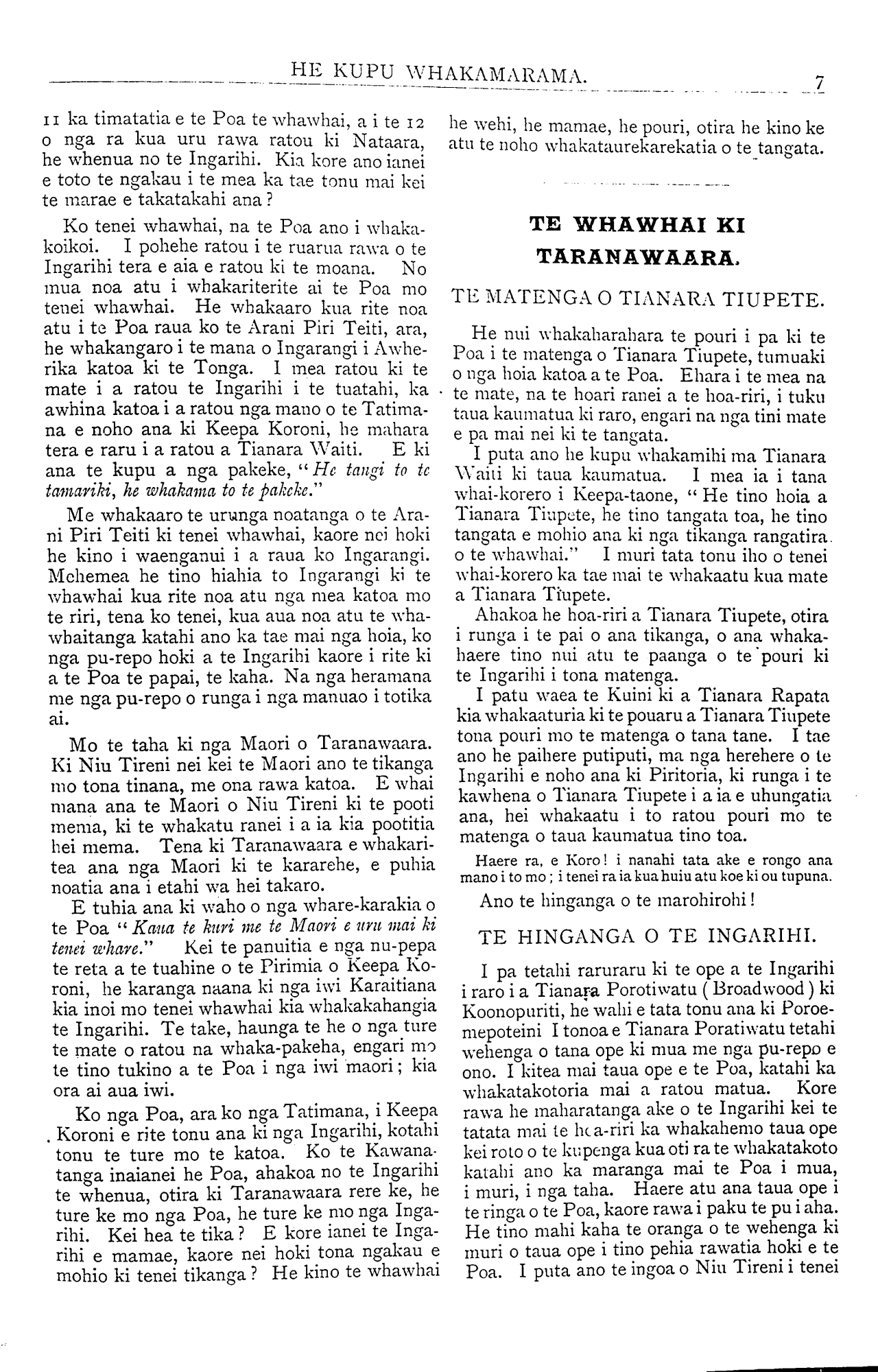 uria nga pahihi ki uta. Kua tae tenei mate ki