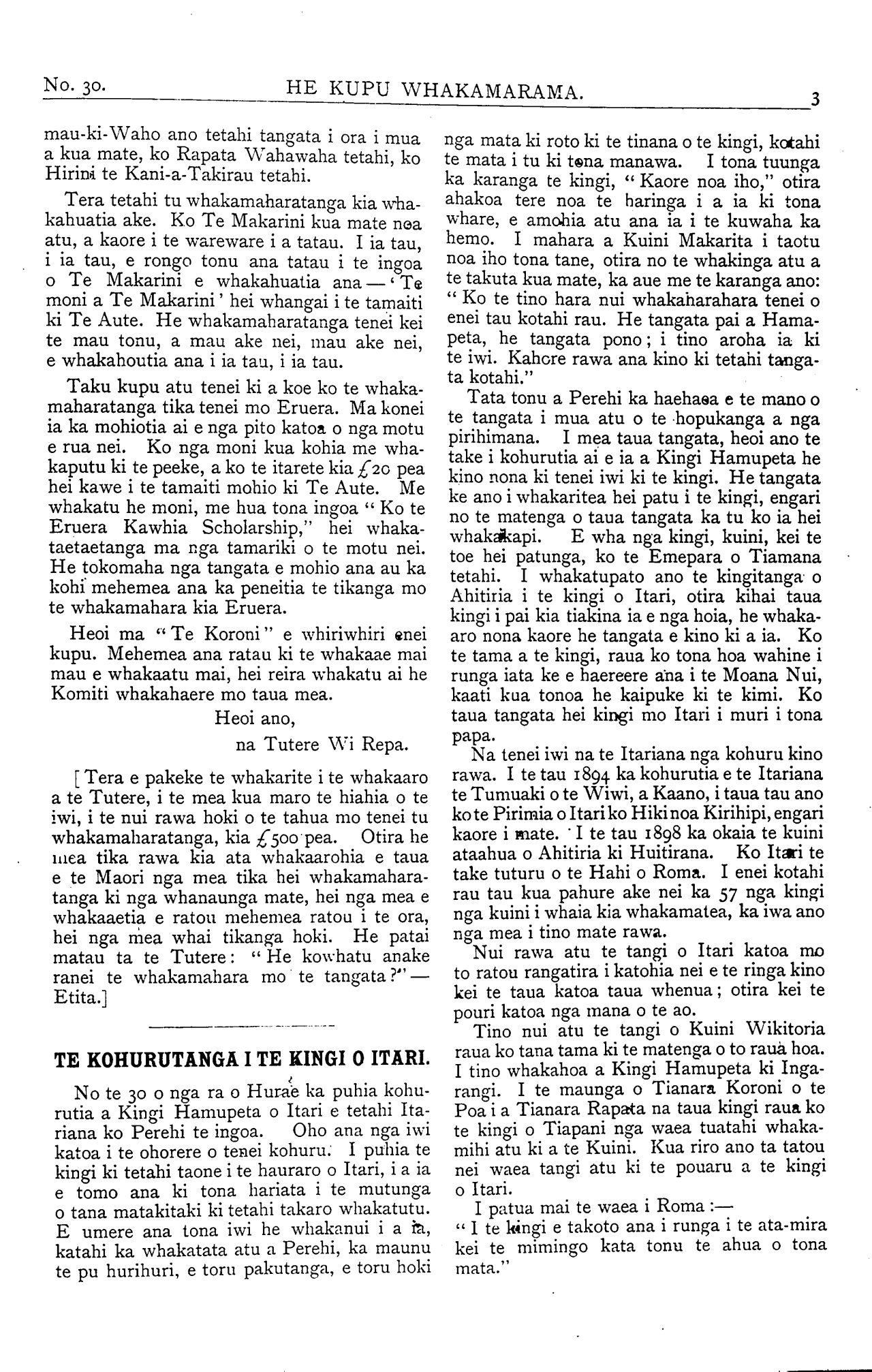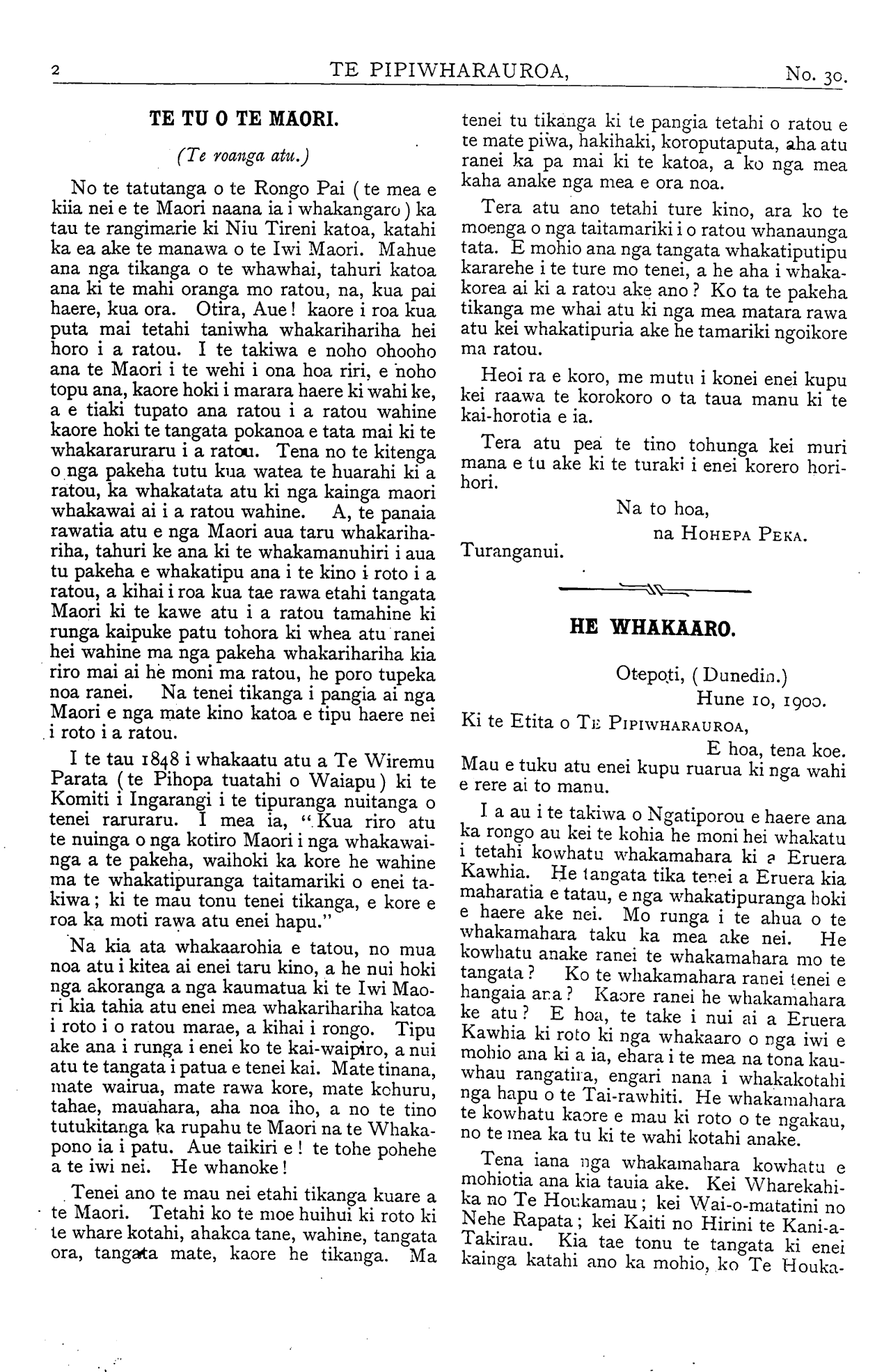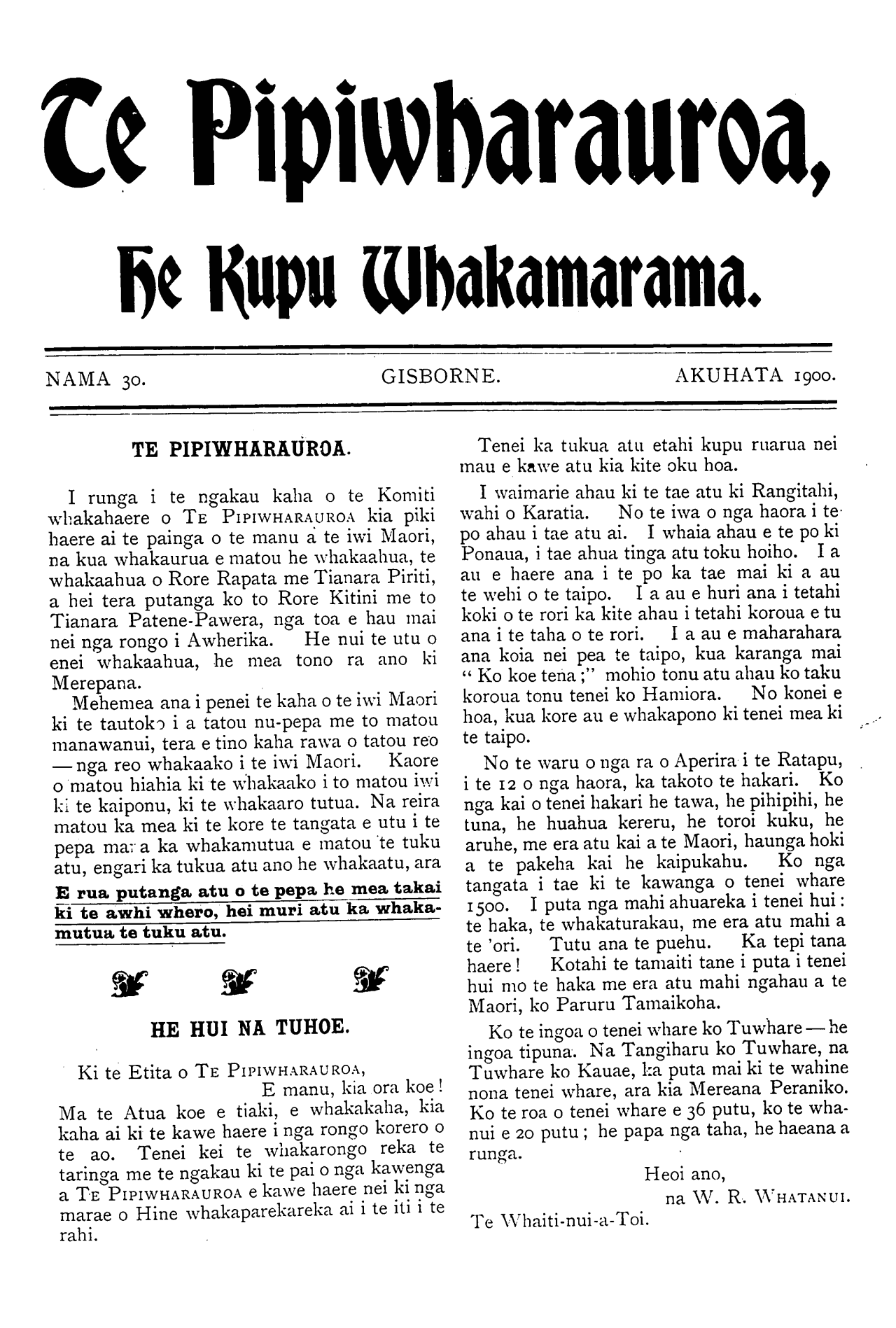 He Kupu Whakamarama 1898: Number 30. 01 August 1900 |