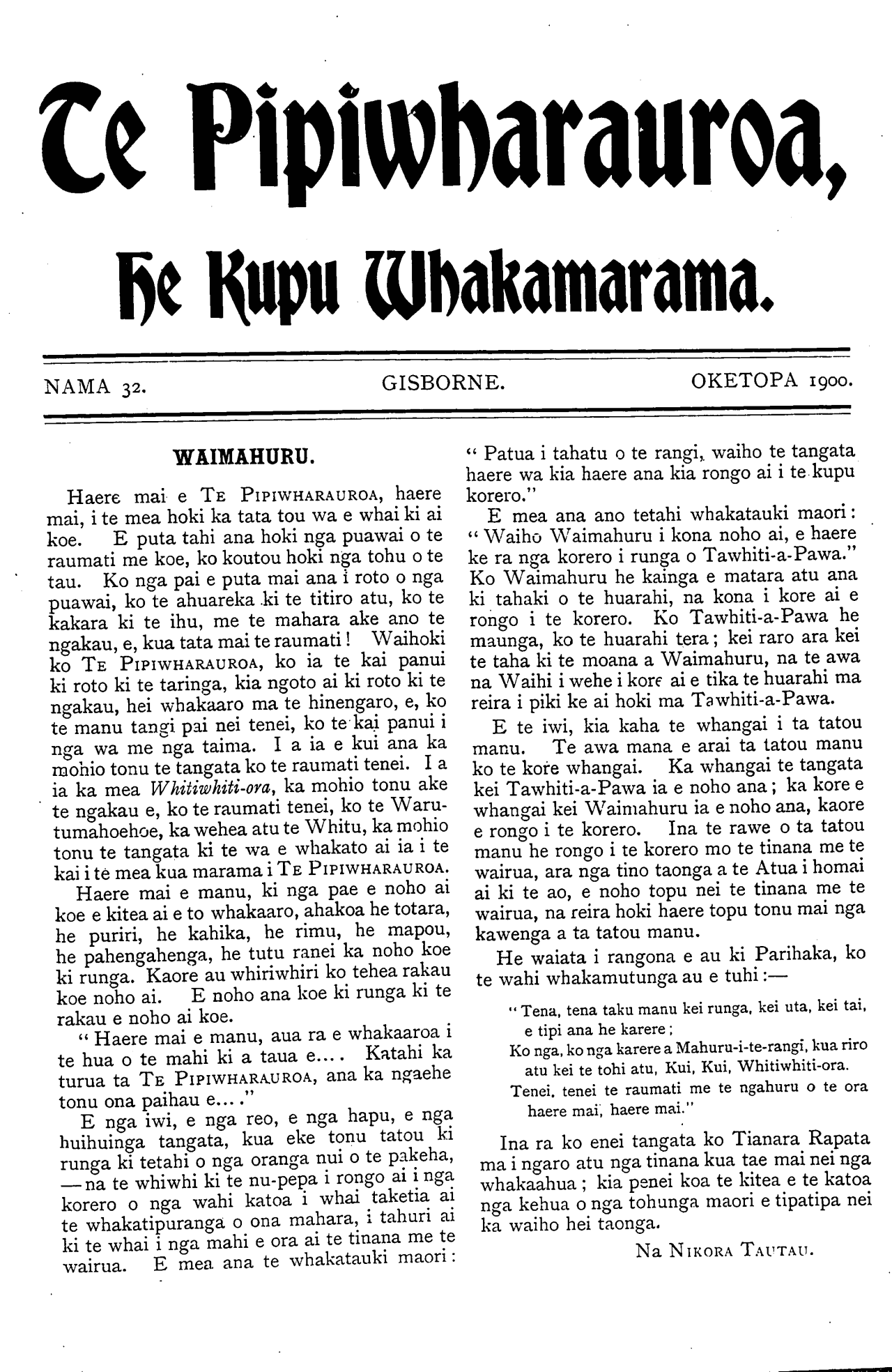He Kupu Whakamarama 1898: Number 32. 01 October 1900 |