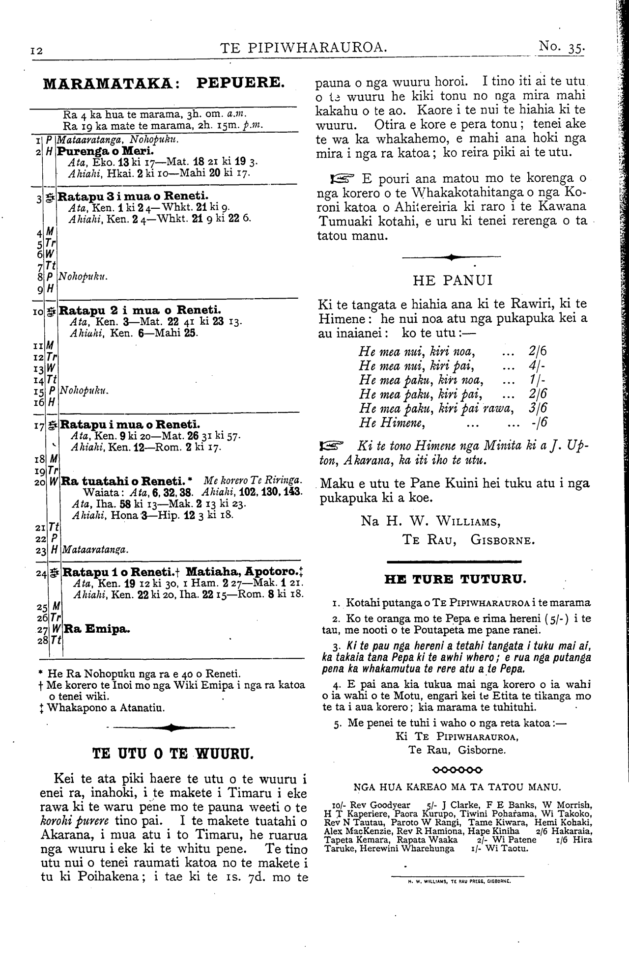 He Kupu Whakamarama 1898: Number 35. 01 January 1901 |